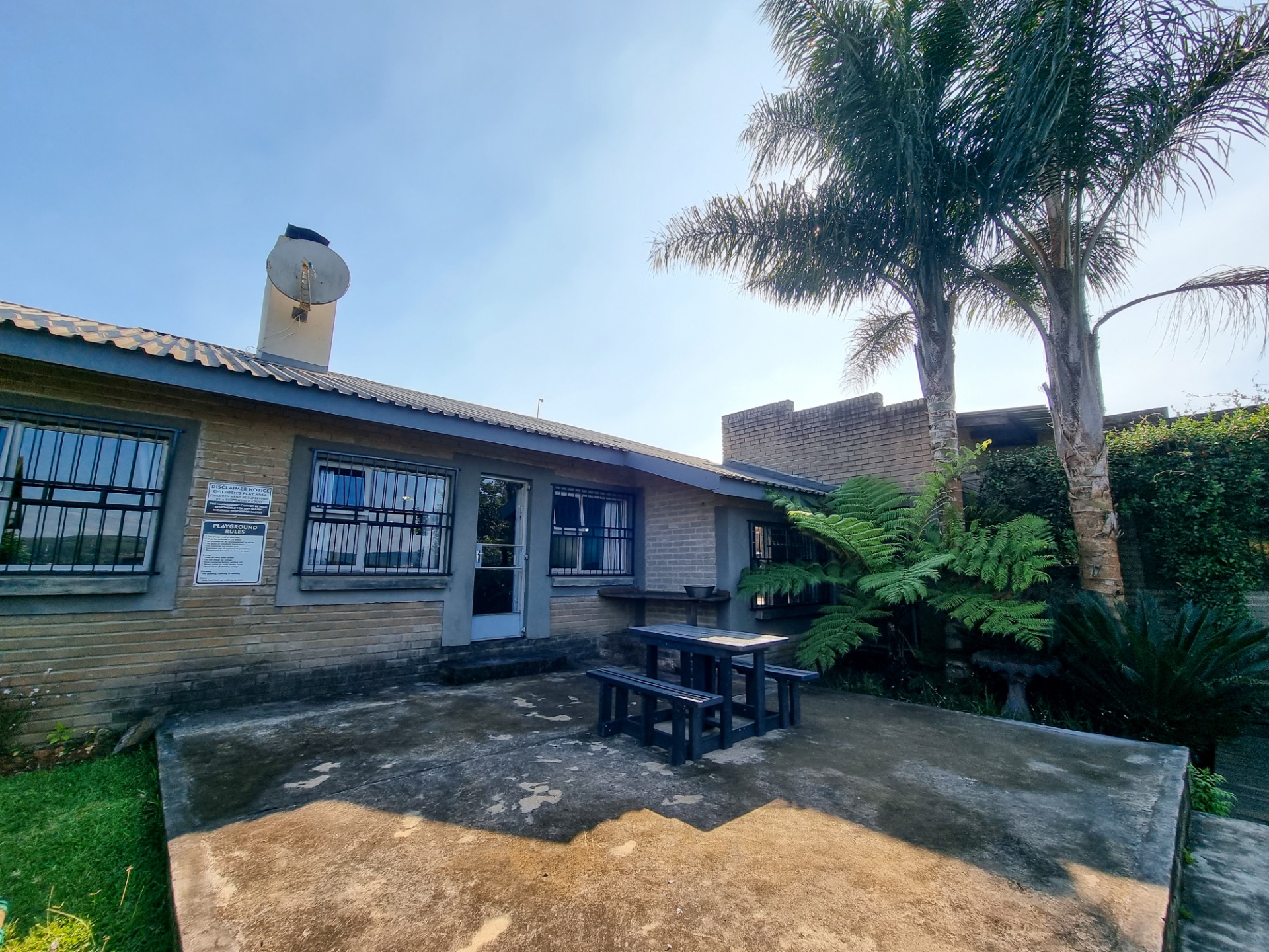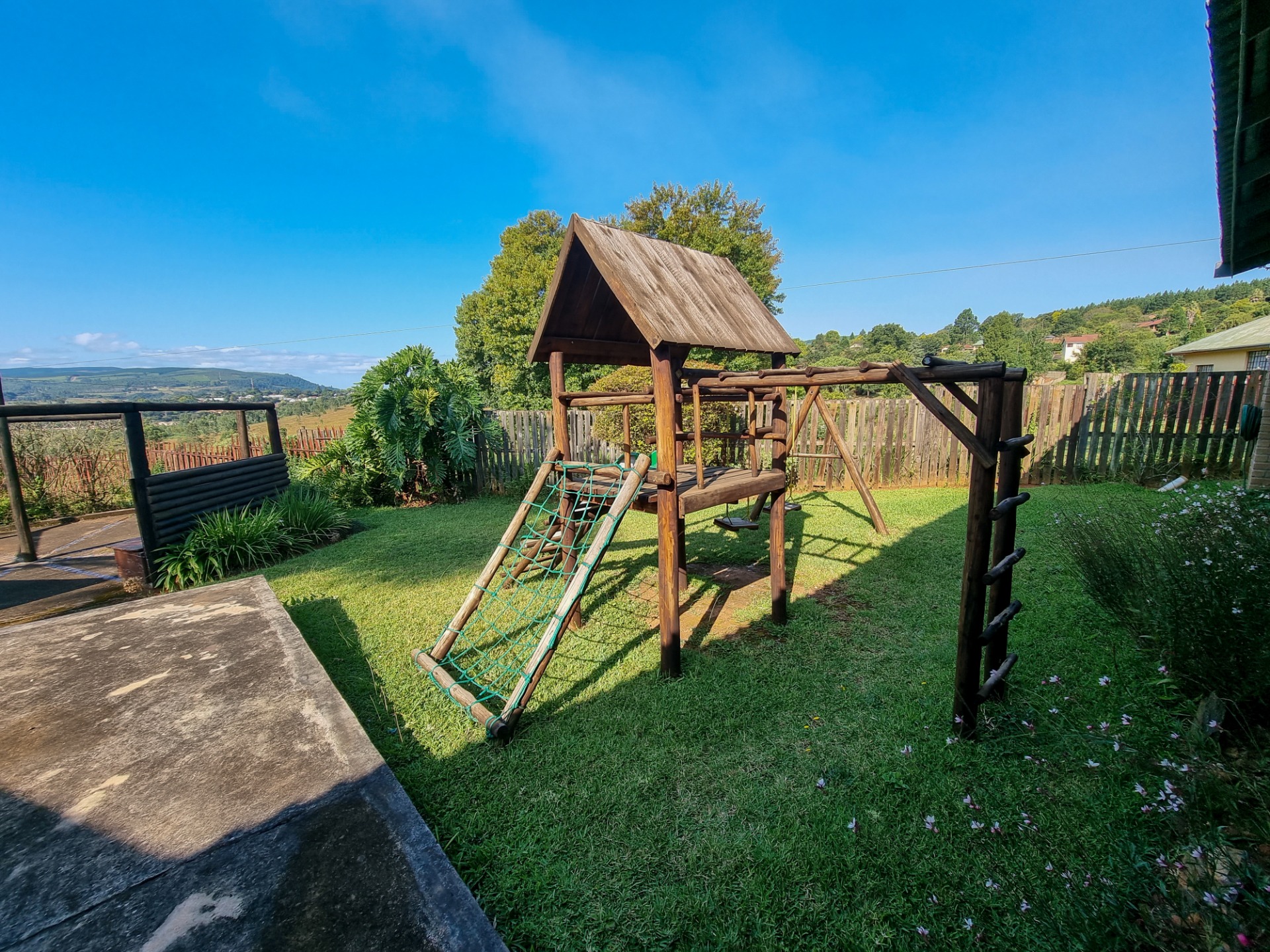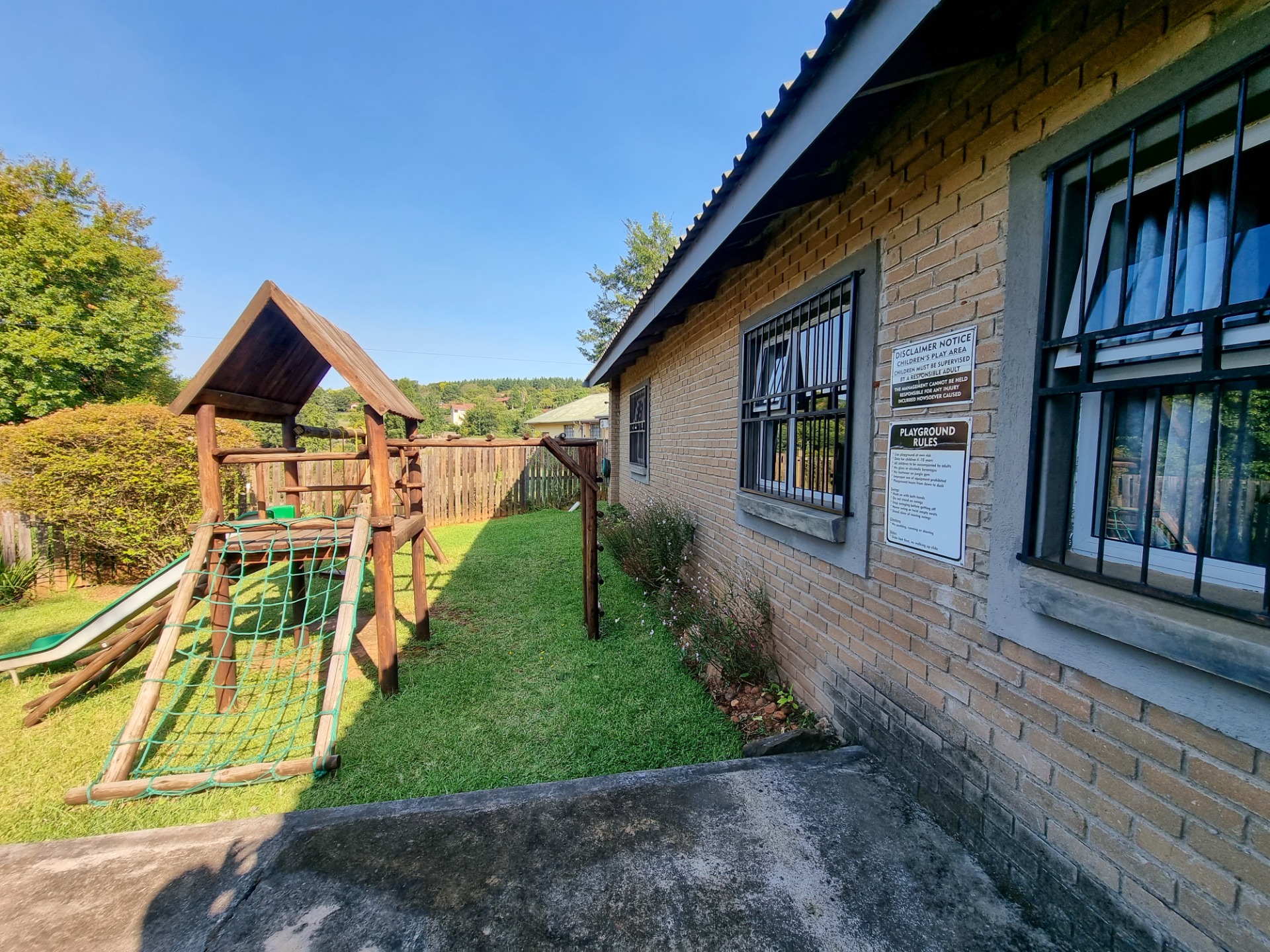 The open air patio, play area and private garden look out to the beautiful mountains and waterfalls of Sabie.