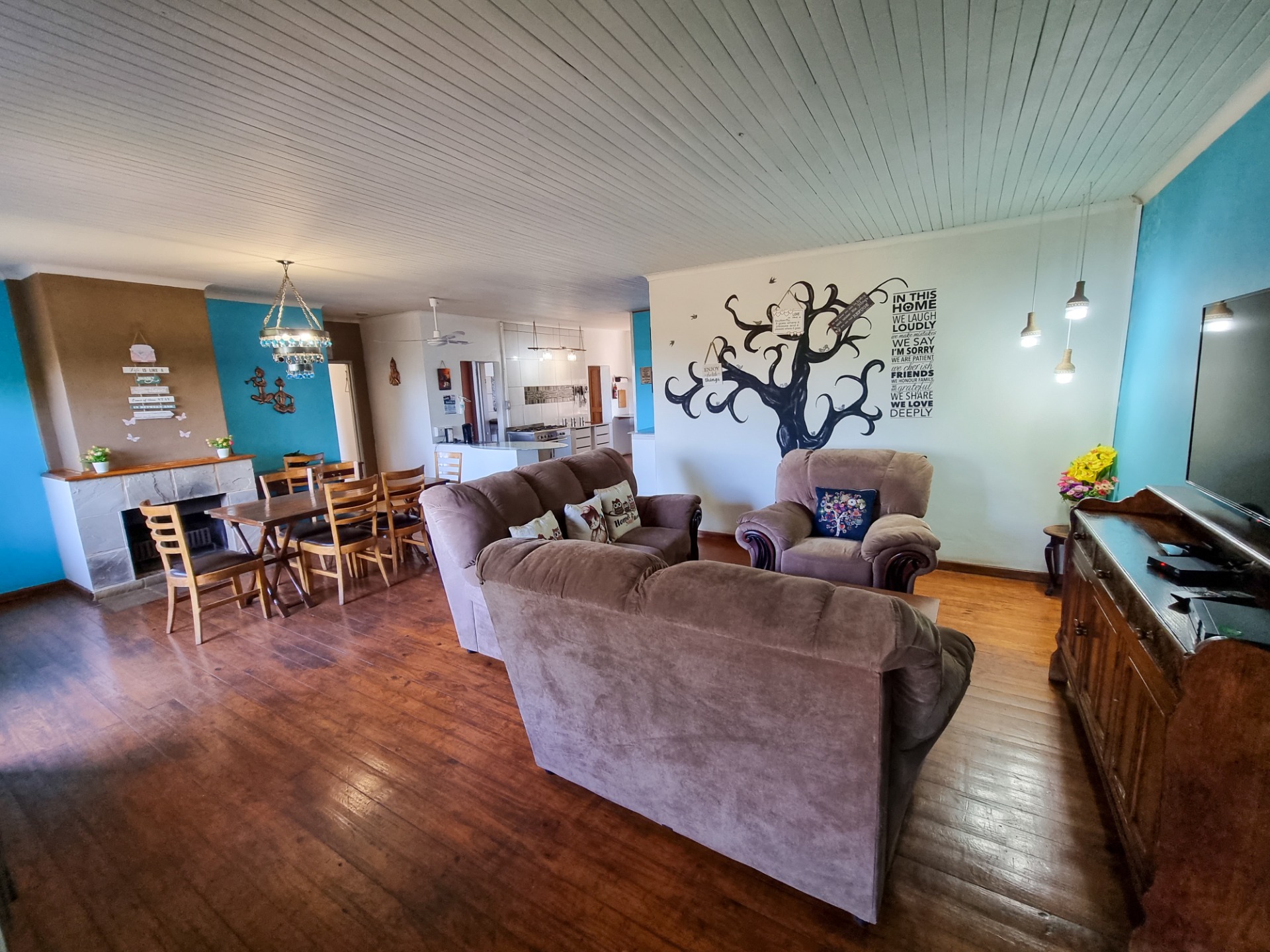 Upon entering the home, you are welcomed by a stunning open plan living area, dining room with fireplace and modern kitchen.