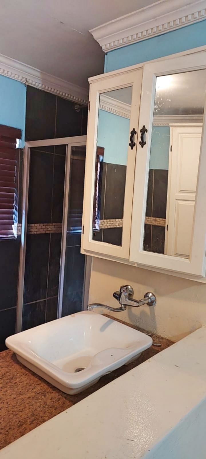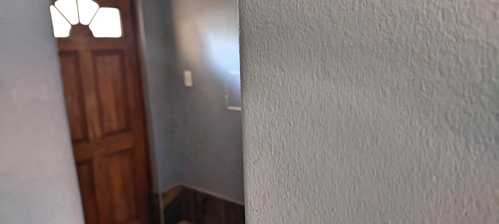 All three bedrooms boast en-suite bathrooms, each fitted with a shower, toilet, and basin. Treated wooden window frames add warmth and charm, while the double garage provides direct access to the home.
