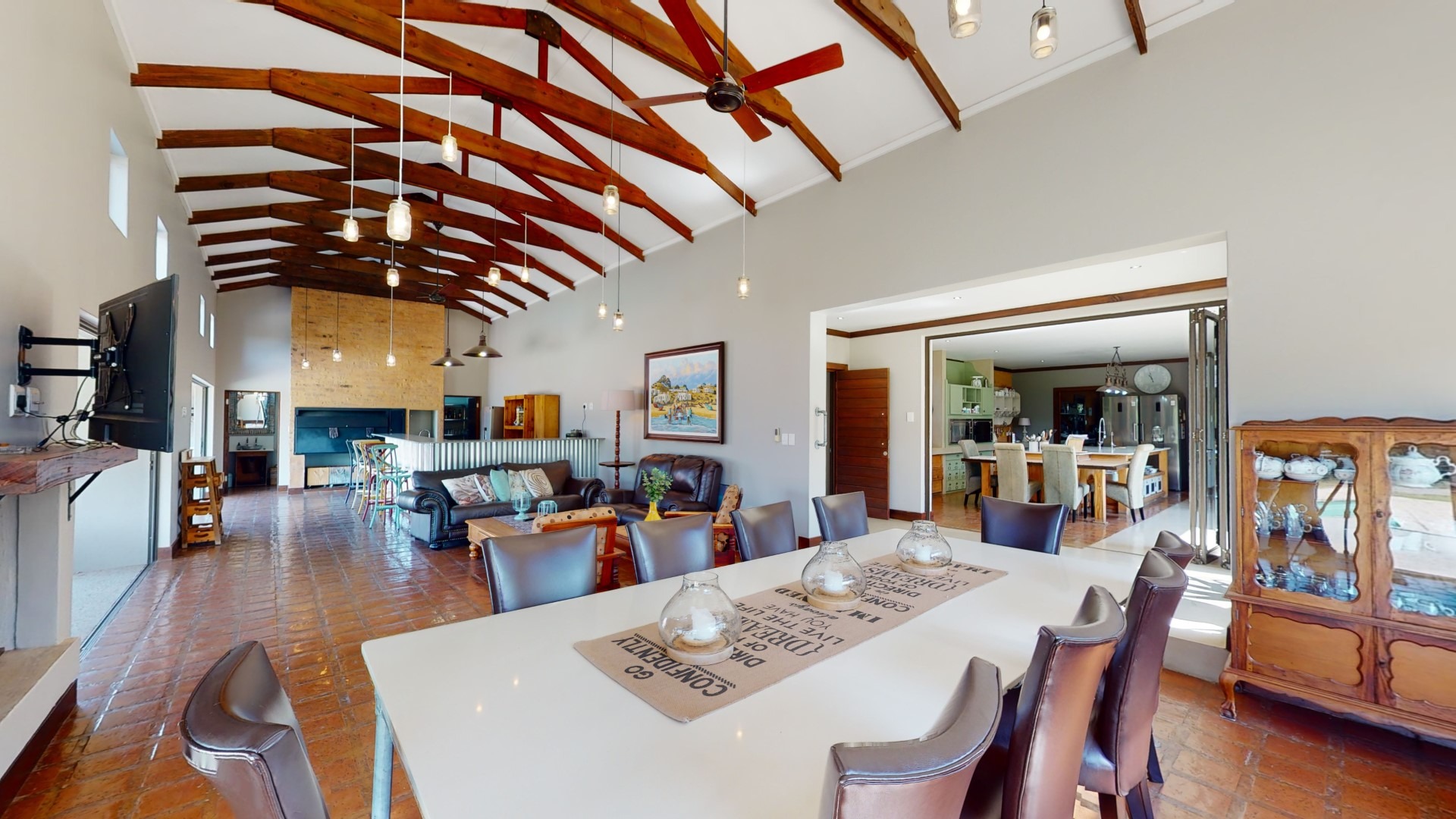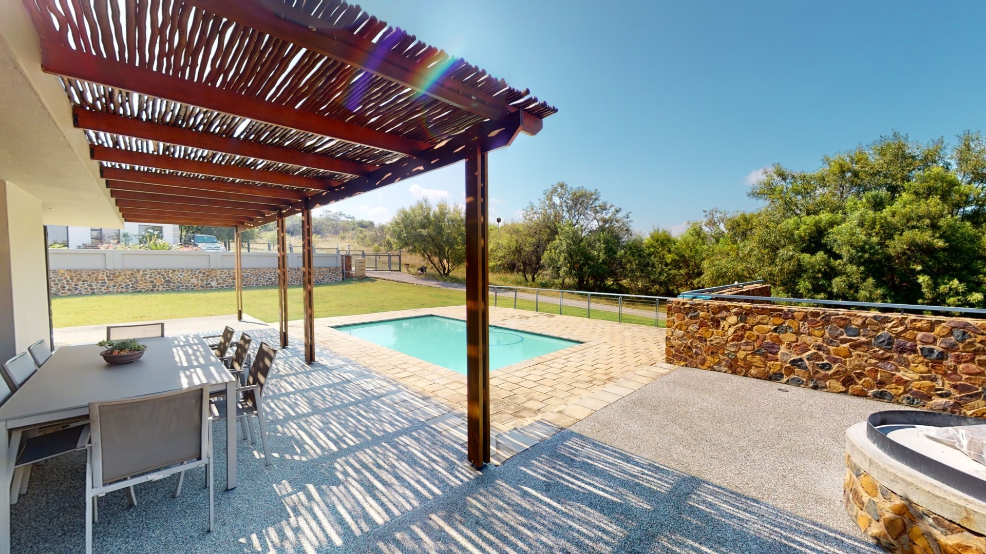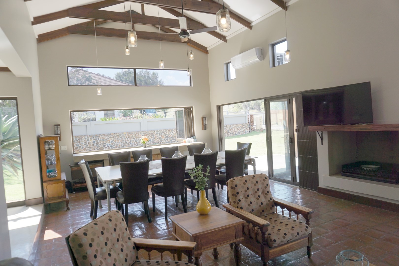 Gorgeous 6 bedrooms of which 3 are en-suite and 3 bedrooms are sharing an open plan bathroom with separate shower/bath as well as toilet. All rooms are spacious and well finished. Air Conditioning in some rooms. This home has a spacious study which you can also convert into an office. Modern open flow kitchen and entertainment areas. Very spacious Scullery and walk in-pantry. All living areas are connected and is also connected to the under covered patios.