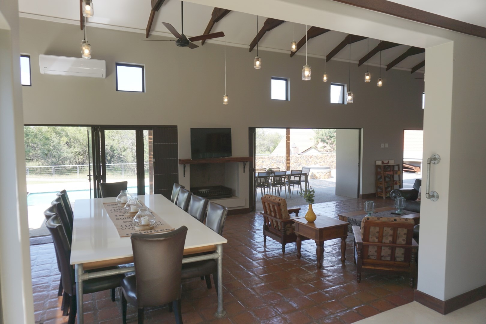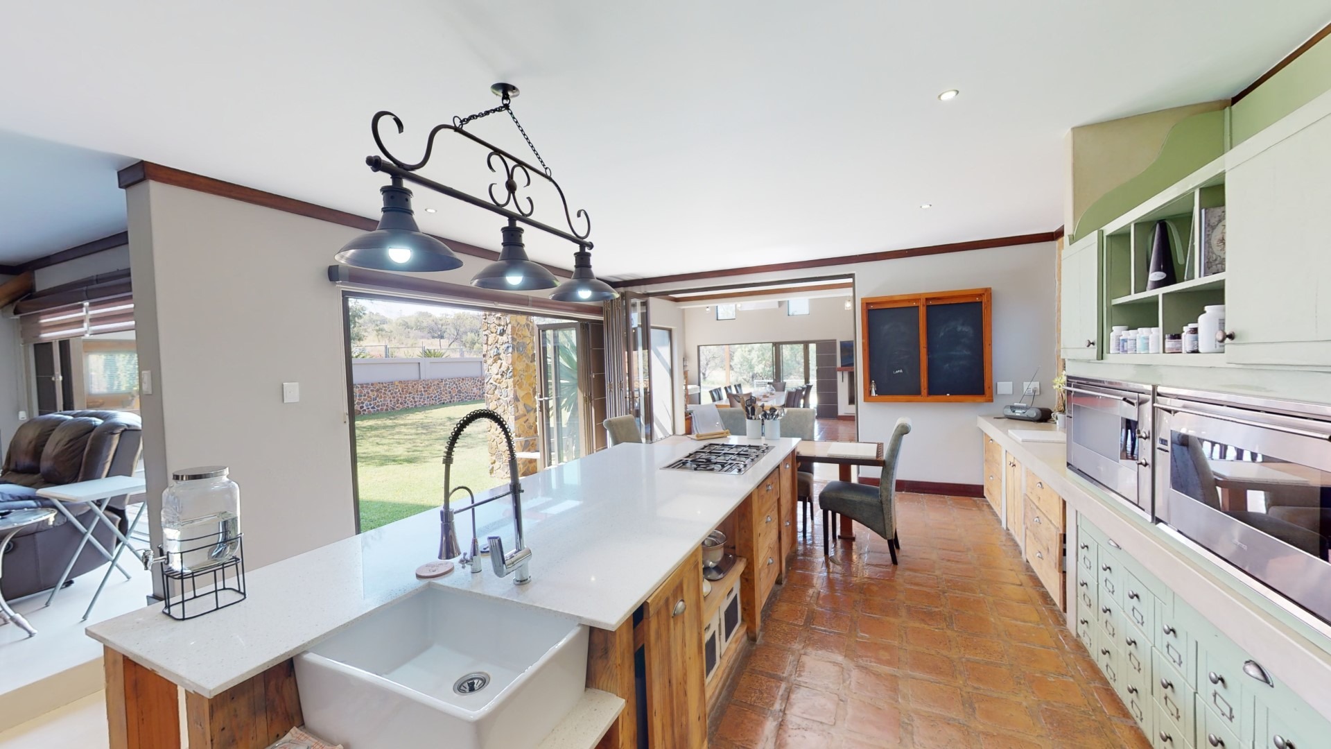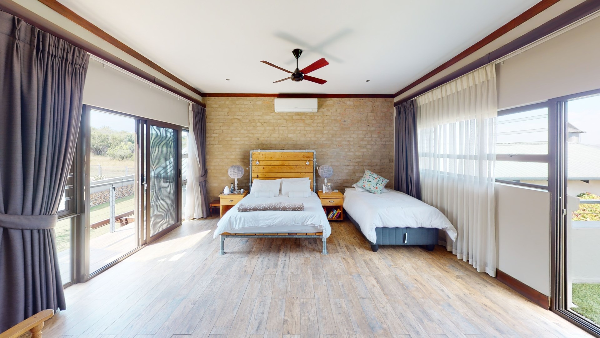 Gorgeous 6 bedrooms of which 3 are en-suite and 3 bedrooms are sharing an open plan bathroom with separate shower/bath as well as toilet. All rooms are spacious and well finished. Air Conditioning in some rooms. This home has a spacious study which you can also convert into an office. Modern open flow kitchen and entertainment areas. Very spacious Scullery and walk in-pantry. All living areas are connected and is also connected to the under covered patios.