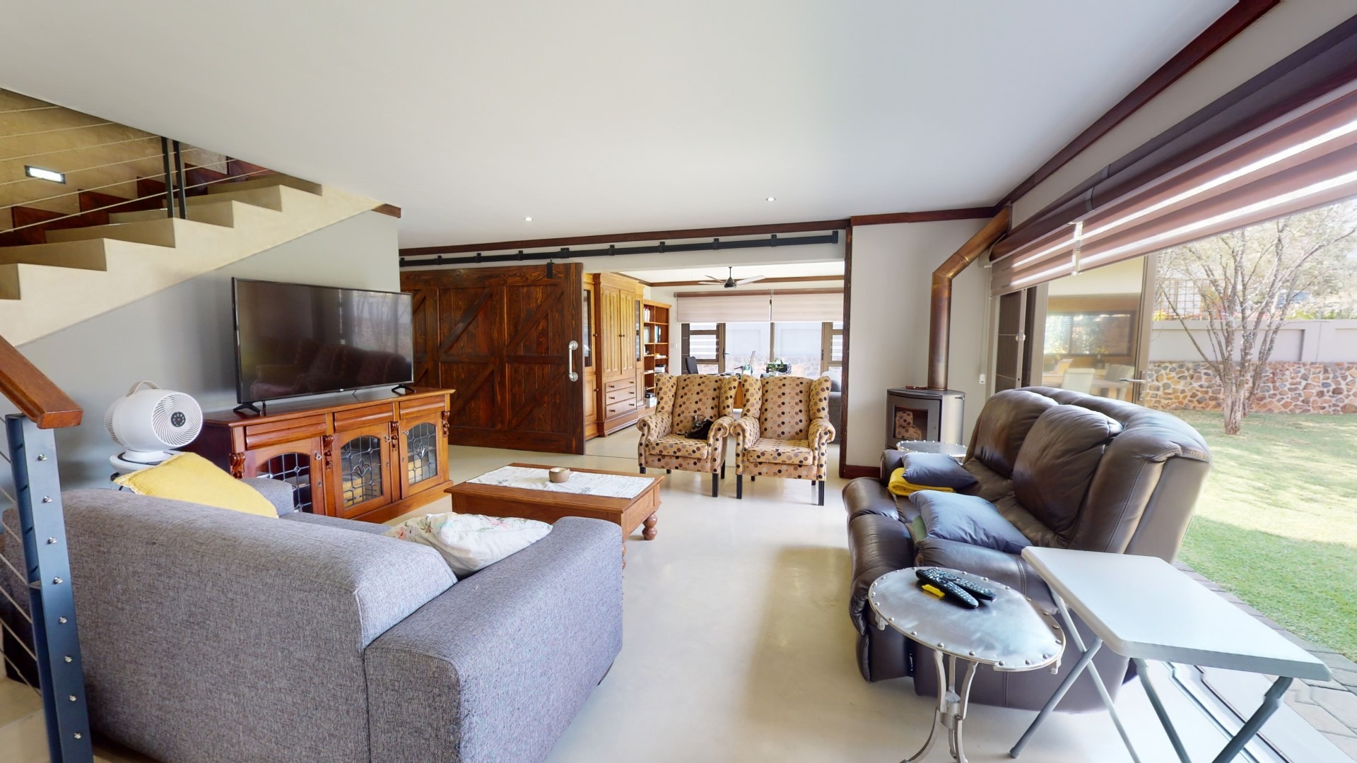 Full maid en-suite quarters. Three garages – Larger than normal as well as a separate workspace and direct entry to the house. Indoor braai. A fireplace for those cold winter nights. A safe for all your valuables. Big 15kva Generator. Battery Backup system