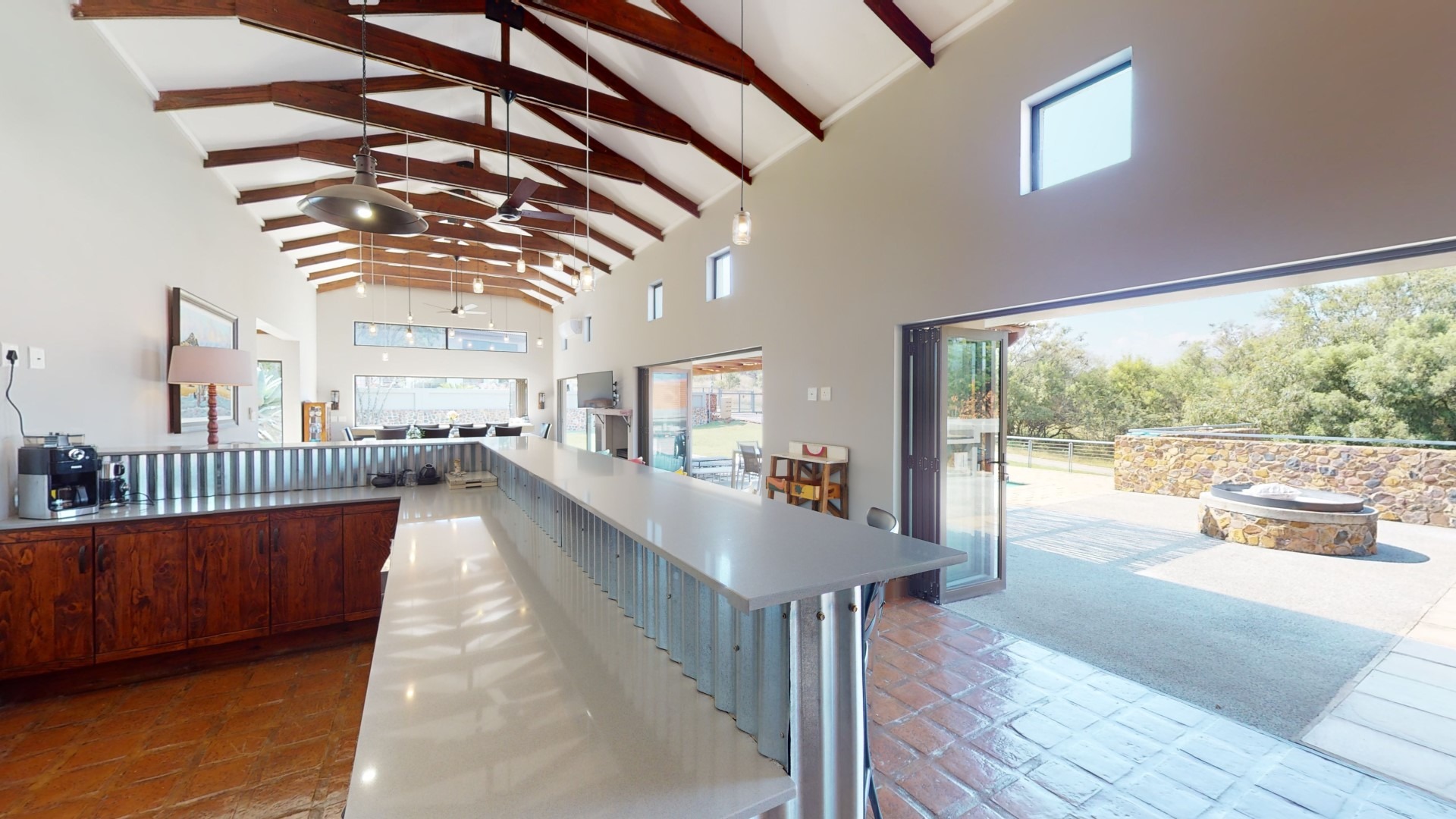 Large, covered patio with boma and swimming pool with a heat pump. Doubled up patio on top of garages with excellent views. General state of the property is very good and well-planned layouts.
