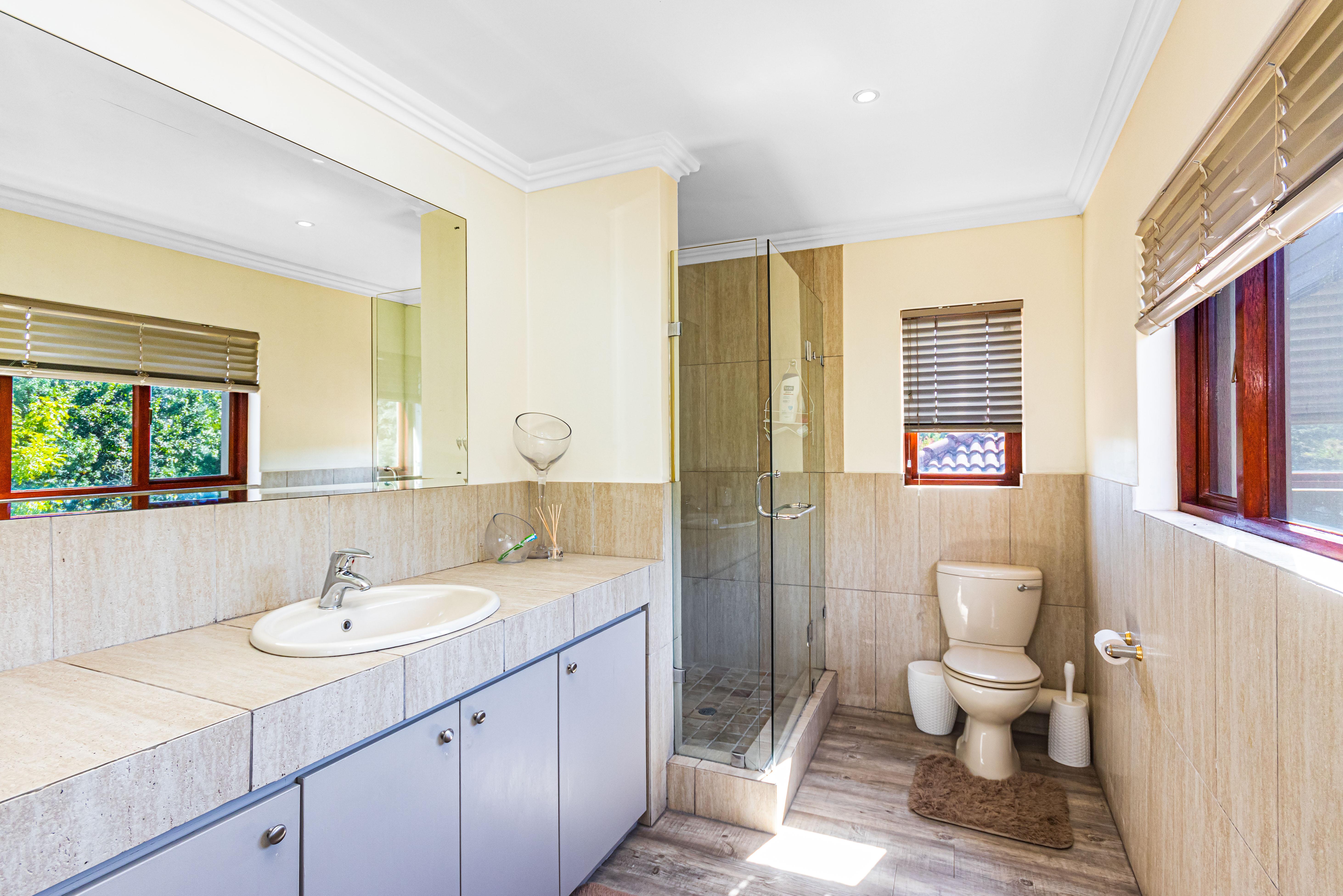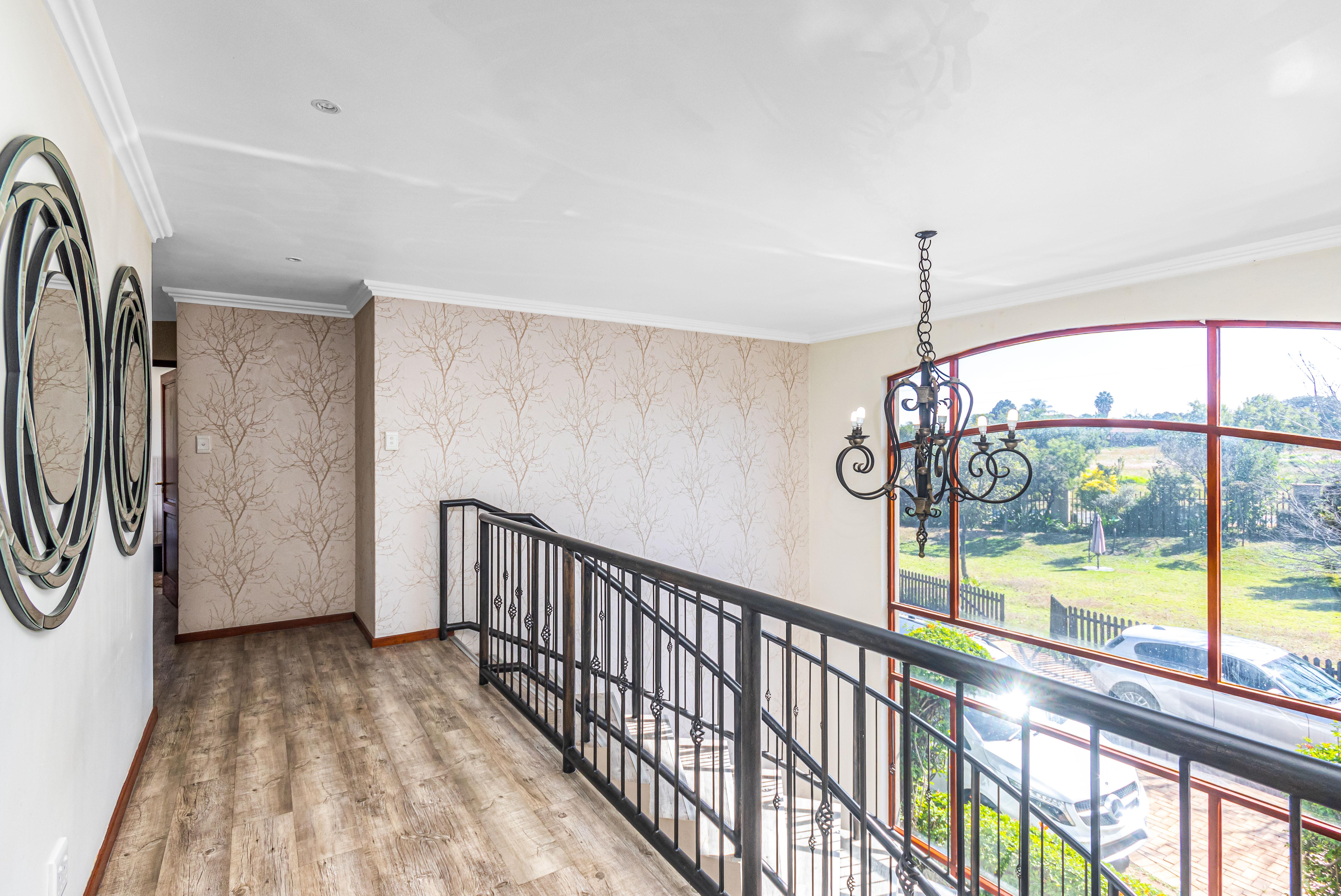 The sweeping staircase waits to take you upstairs to the sleeping area. There you will find a mastersuite perfectly designed to take in the stunning views. There is a pyjama/reading lounge in the mastersuite as well as a walk-in wardrobe, and the en-suite bathroom features a jacuzzi-style bathtub. There are 2 well-sized bedrooms which share a full bathroom and all bedroom have access to the balcony, perfect to watch those sunsets and sunrises.