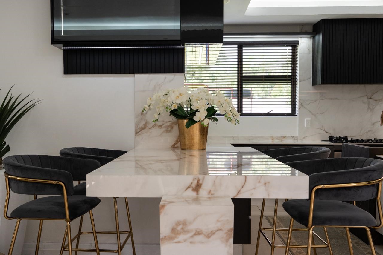 Outdoor Paradise: The outdoor area is a true oasis, featuring an in-flow self-cleaning pool with an auto thermo-heating cover, an outdoor boma area with a built-in pizza oven, and lush landscaping that invites relaxation and entertainment.