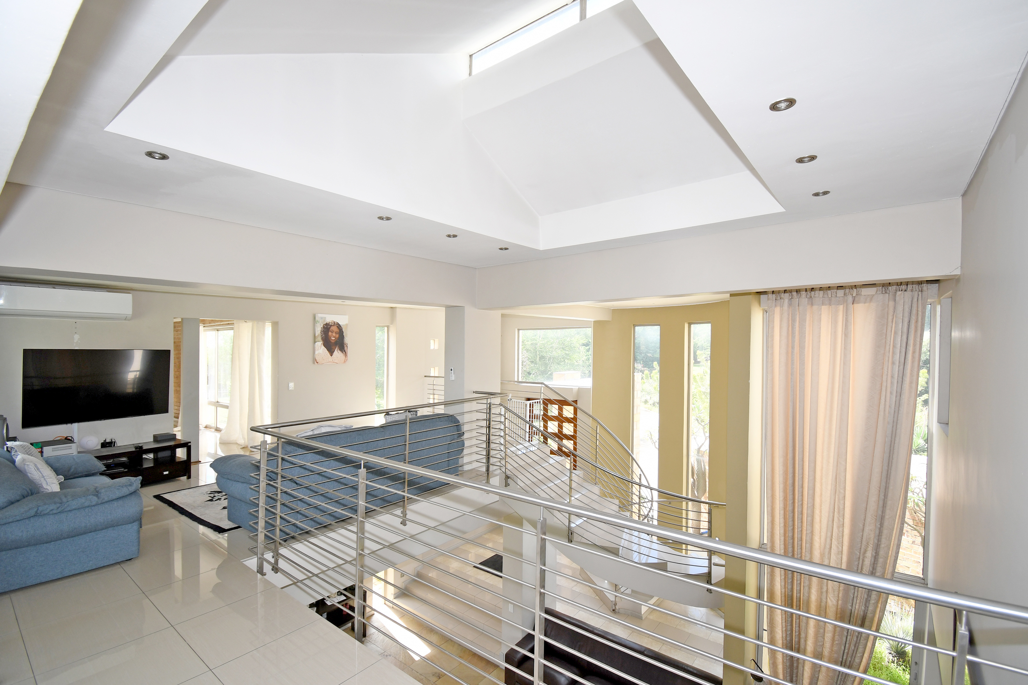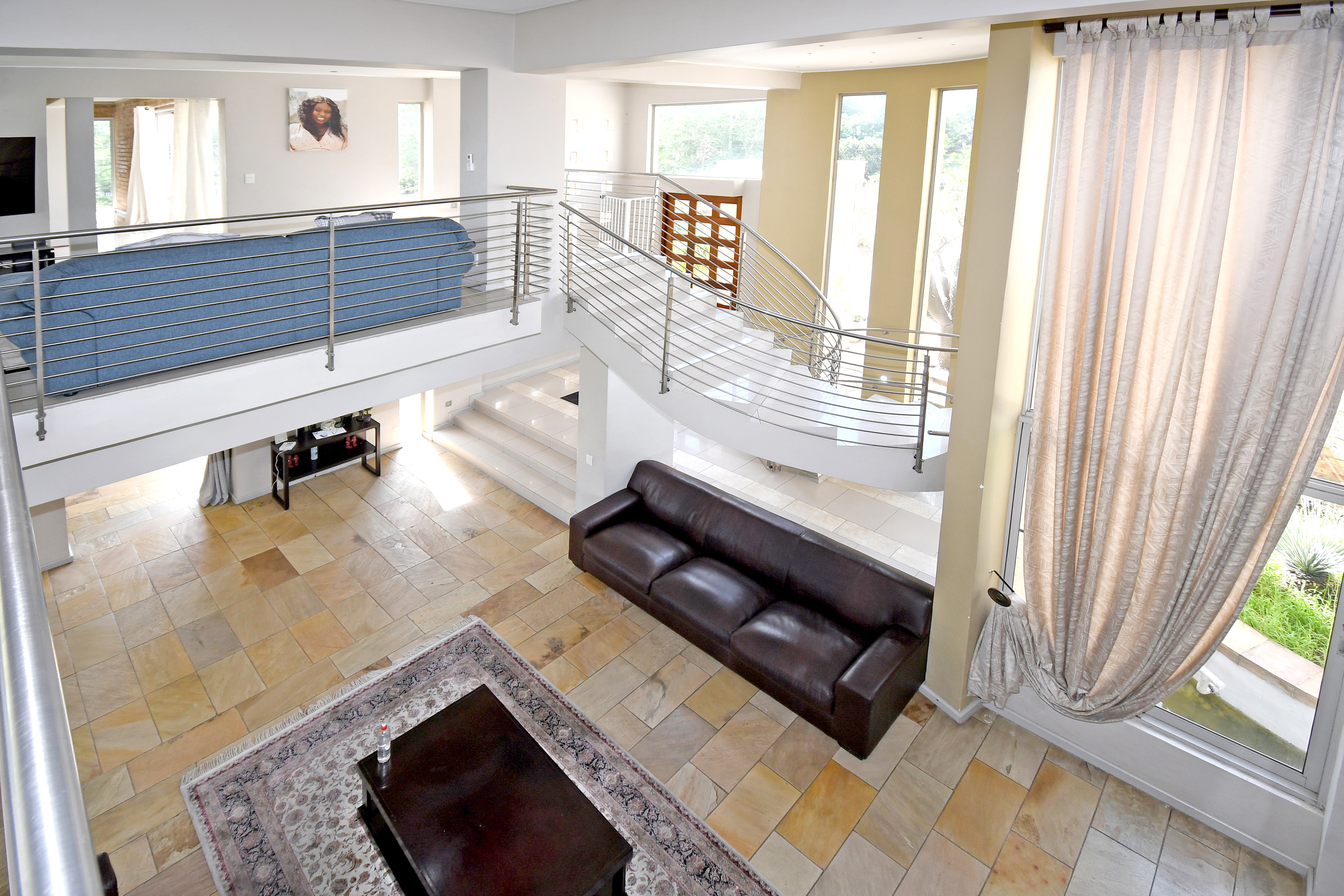 Upstairs pajama lounge with outside terrace space over looking Johannesburg - great spot for a sundowner or your morning coffee.
