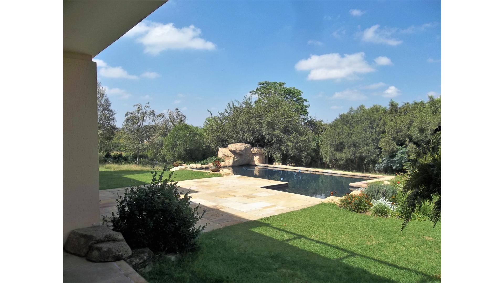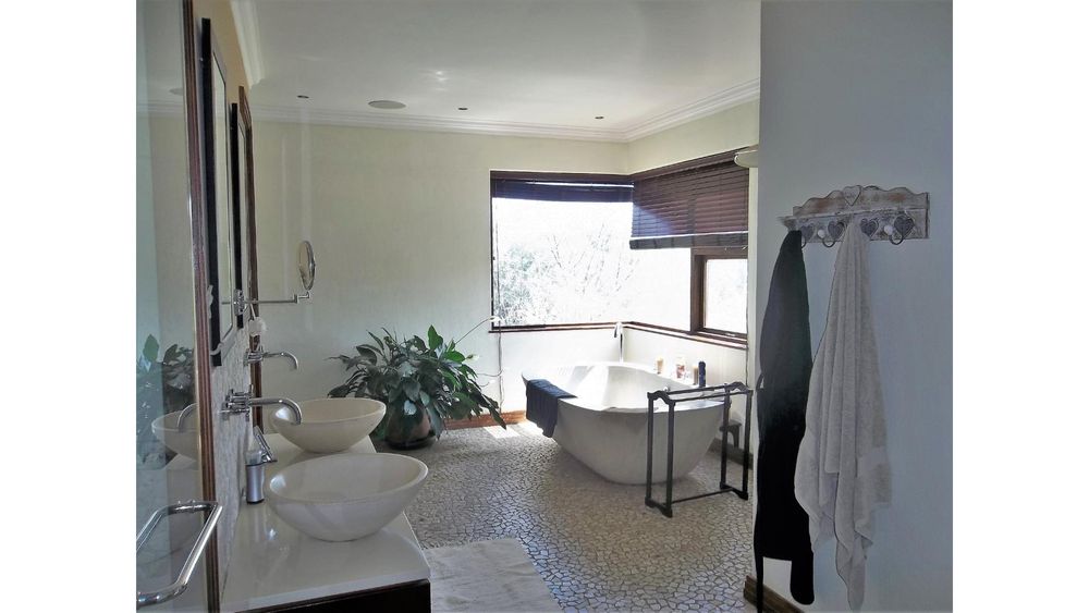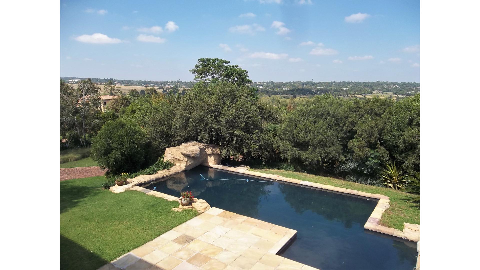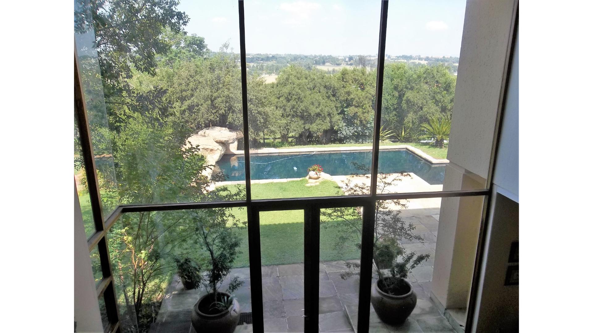 A winding driveway welcomes you to this country-style beauty nestled in a cul-de-sac in Saddlebrook, with panoramic views of the Sandton skyline and the far-off Magaliesburg mountains.