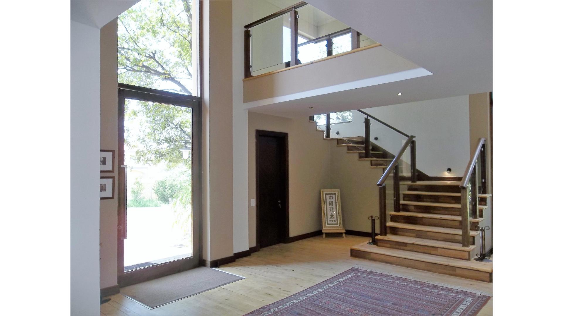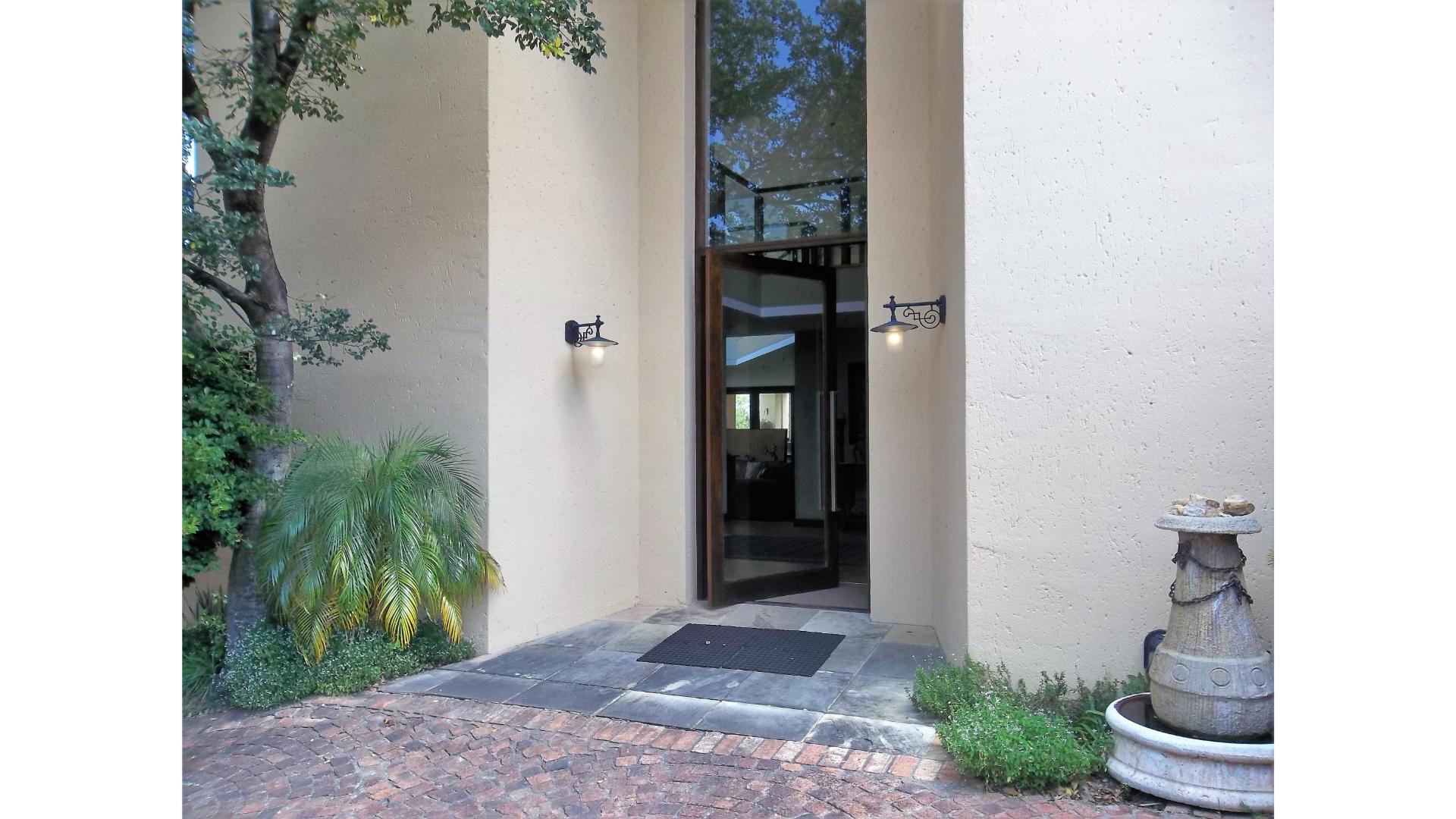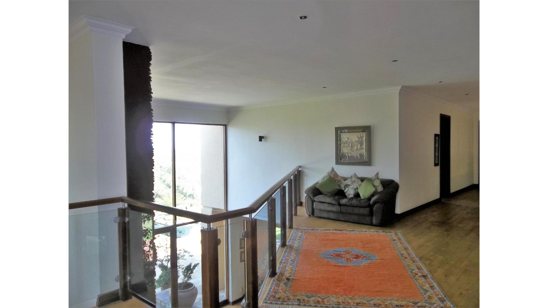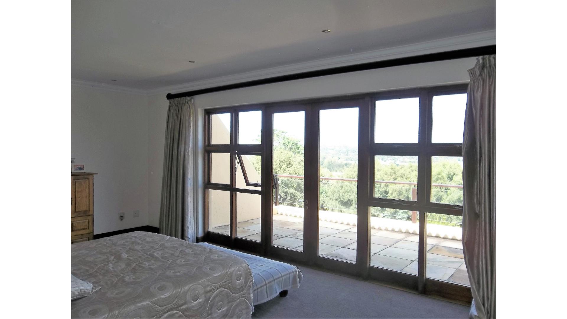 A winding driveway welcomes you to this country-style beauty nestled in a cul-de-sac in Saddlebrook, with panoramic views of the Sandton skyline and the far-off Magaliesburg mountains.