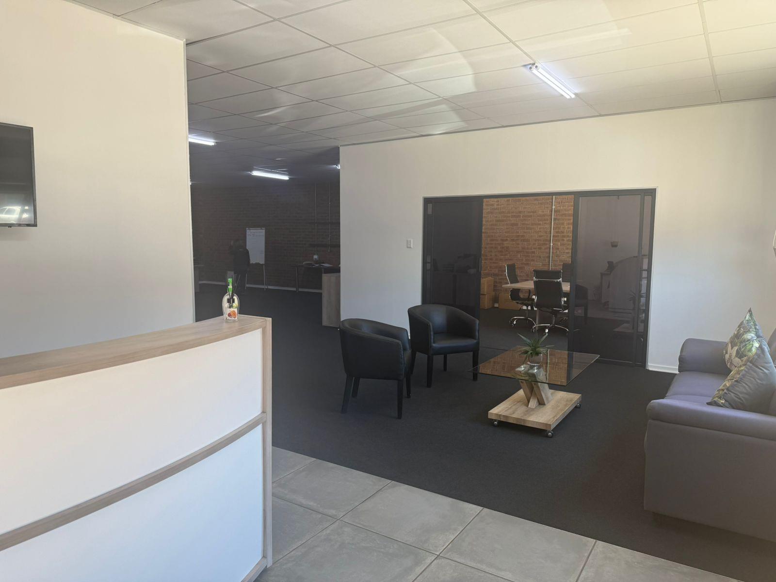 The office component features a welcoming reception area that sets a positive tone for visitors. Adjacent to the reception is a comfortable waiting area, perfect for clients or guests. The boardroom is designed for meetings and collaboration, while the open-plan office space fosters a productive working environment. Additionally, the modern his-and-hers bathrooms add convenience for staff and visitors alike.
