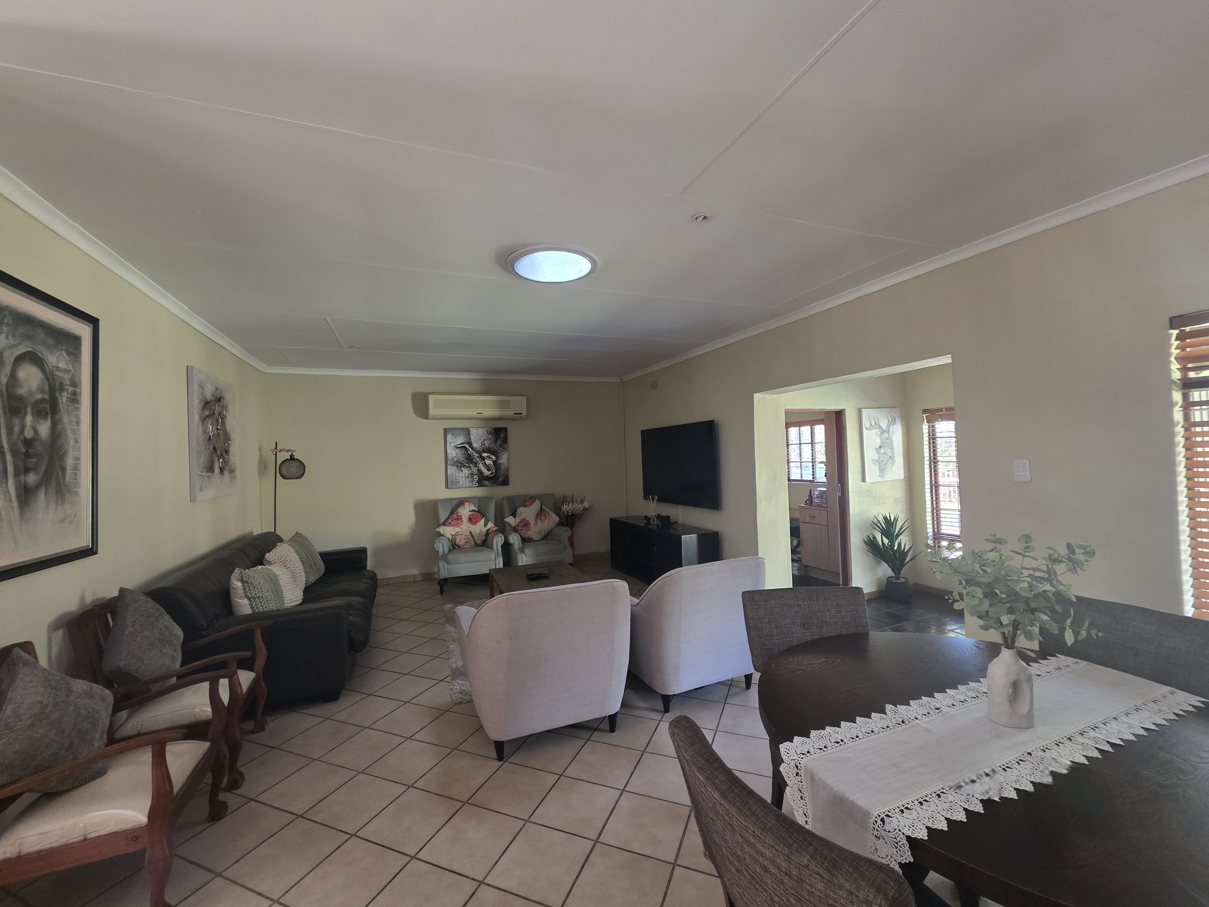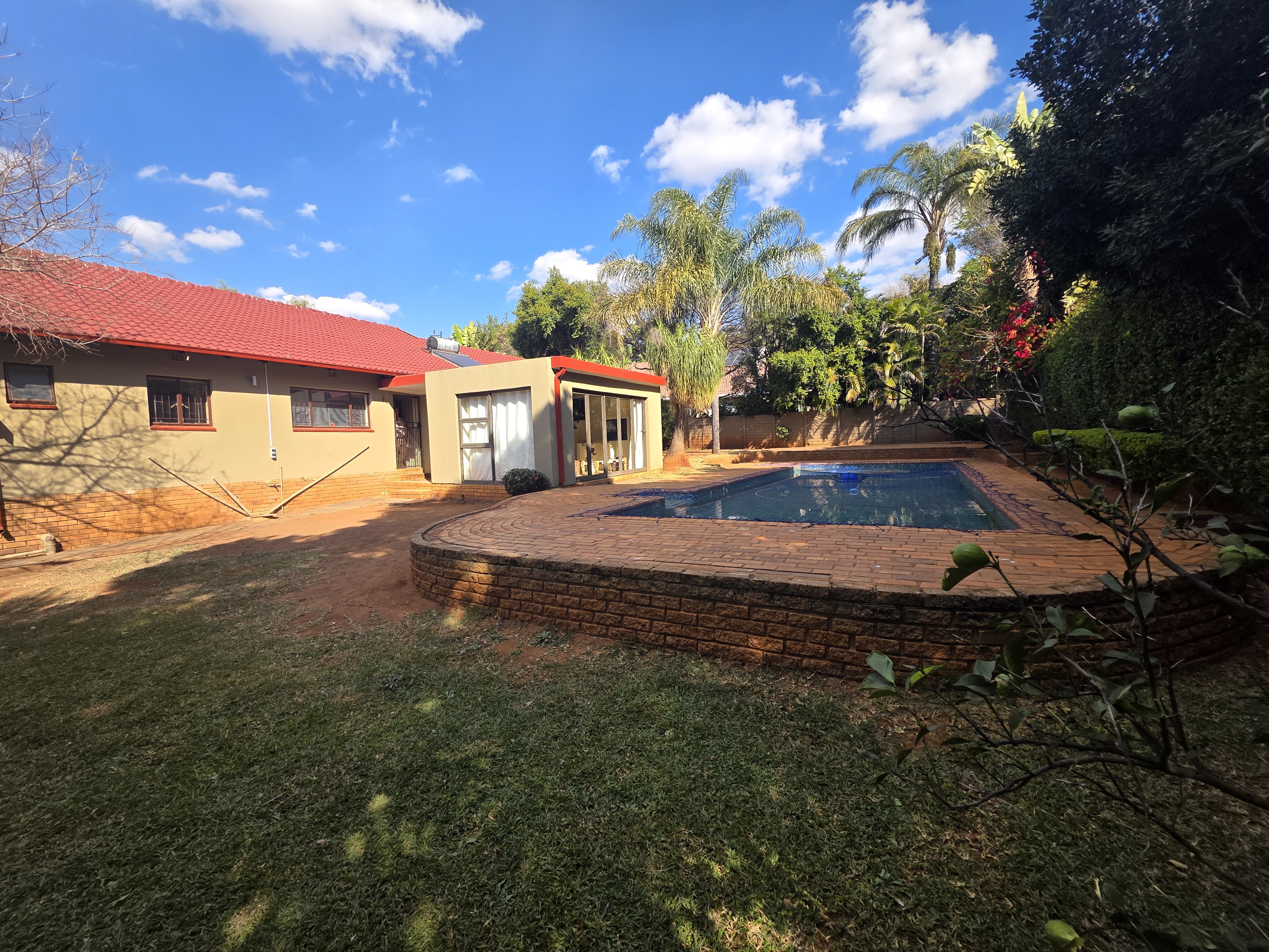 Nestled in the desirable Safari Gardens, this exceptional family home offers a rare blend of space, comfort, and entertainment. Sprawling across a generous 1100m2 stand, the 300m2 residence boasts three spacious bedrooms and two full bathrooms, providing ample room for the whole family. Work from home? A dedicated study offers the perfect quiet space. Relax and unwind in the inviting lounge and separate dining area. The heart of the home is undoubtedly the entertainment room, featuring a built-in braai – ideal for hosting gatherings year-round. Enjoy sunny winter days in the enclosed patio and embrace the summer heat poolside, with a huge pool reminiscent of an Olympic size. A borehole is present, ready to be fitted for your convenience. Additional features include an outside domestic room with a toilet, offering direct access to the garage and home, presenting an opportunity for a work-from-home enterprise. This property is more than just a house; it's a lifestyle. Don't miss the chance to make it your own
