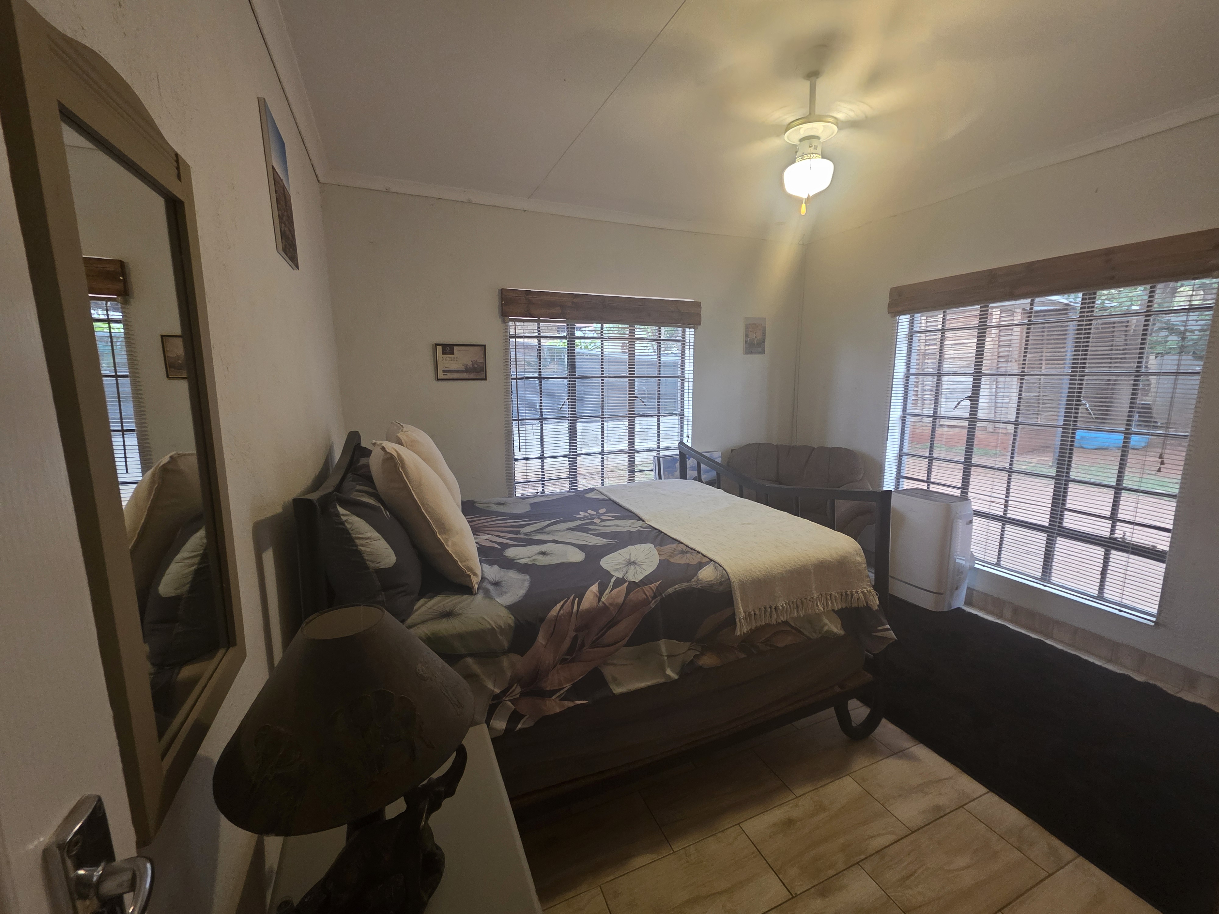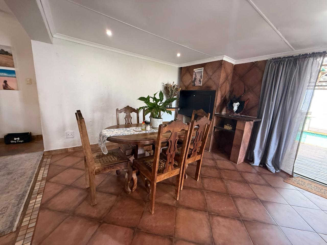 A beautiful home set in Safari Gardens with loads of potential. Boasting a three bedroom two bathroom, where the main bedroom has an ensuite and a walk in closet. This home offers a pool a braai and a bar area under roof. Manageable yard. Watertank for the waterless days. An open plan living and kitchen area with a seamless flow.