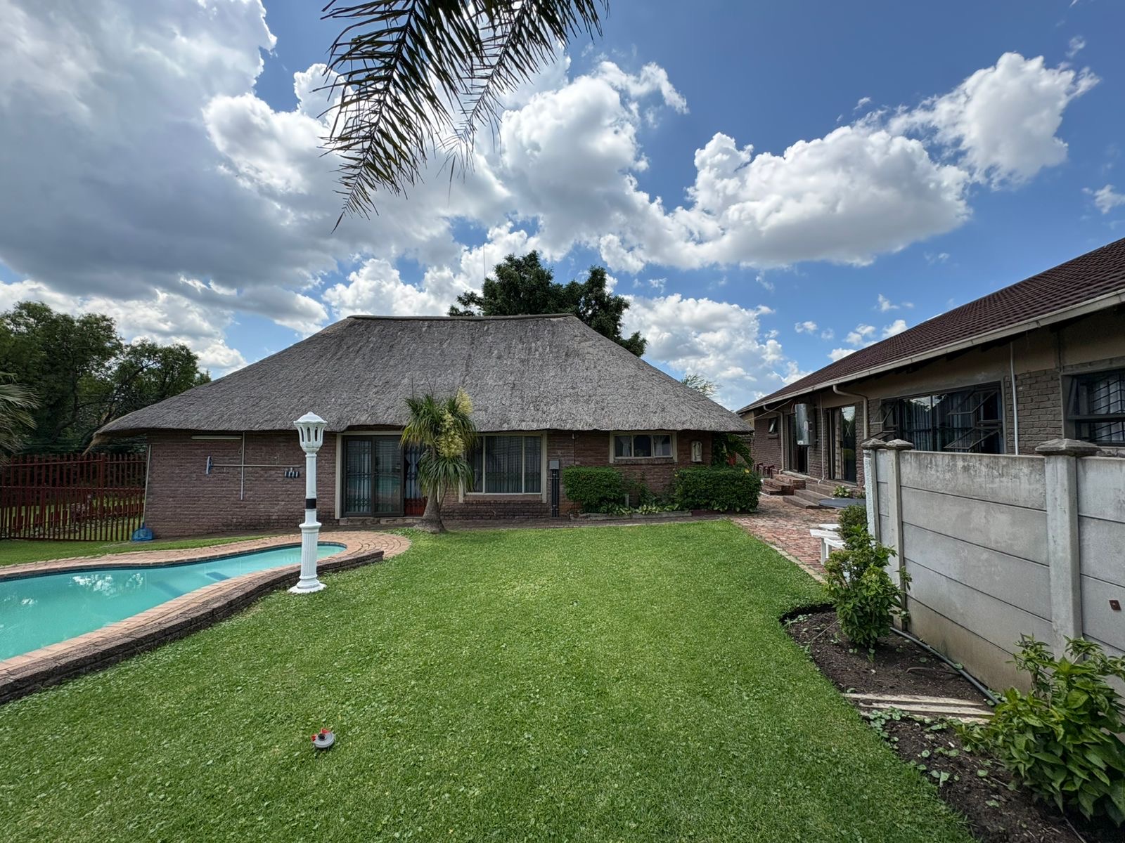 The main house features 5 generously sized bedrooms, 5 bathrooms, and a guest toilet. The lounge, dining area, and kitchen flow seamlessly and open onto a covered patio with large glass doors, creating an inviting indoor-outdoor living experience.