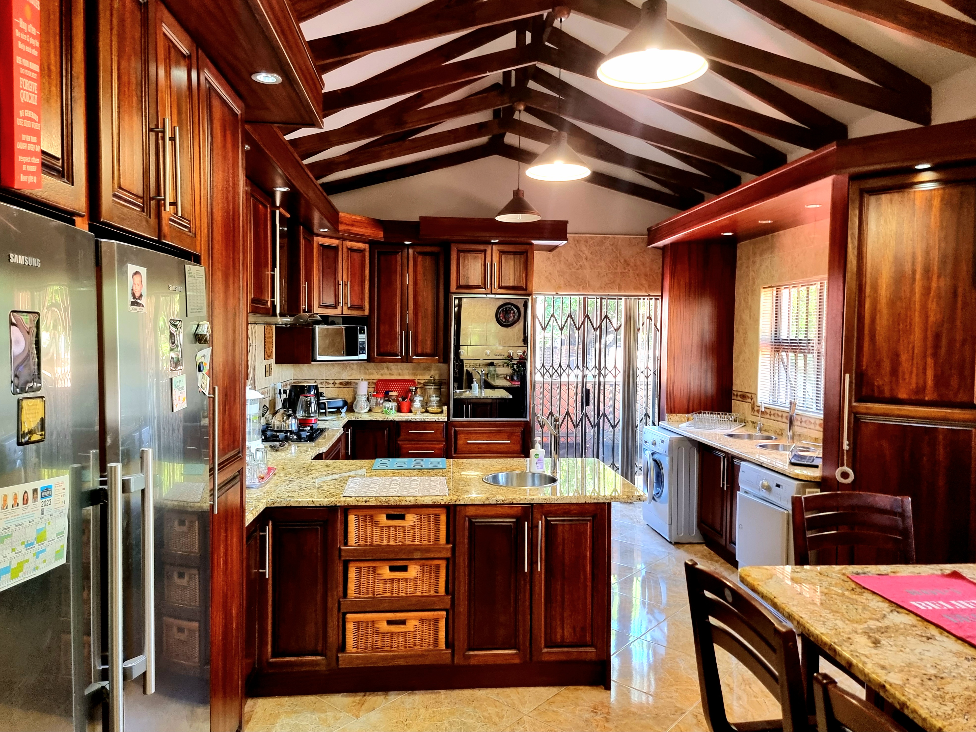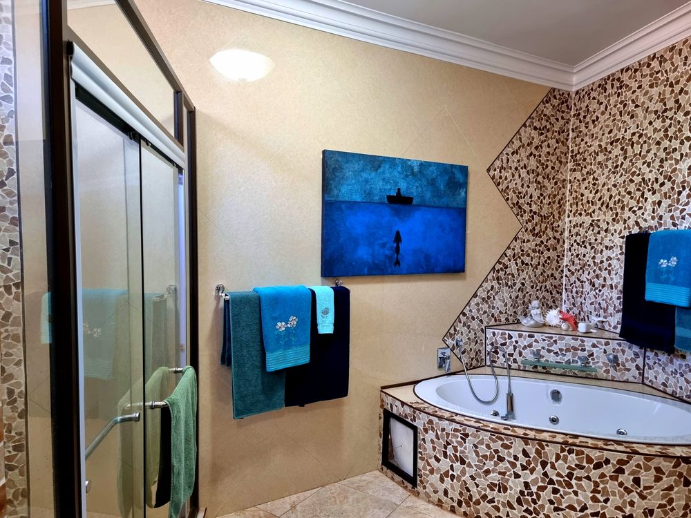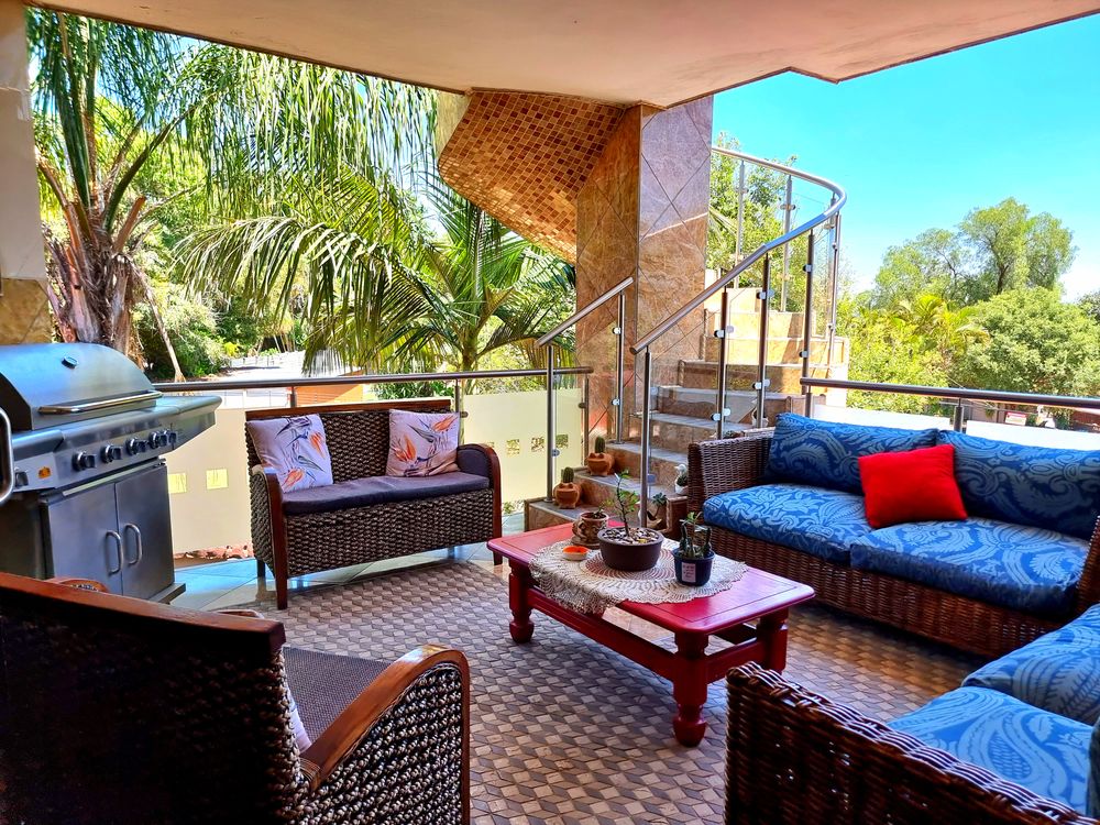 Rooftop Entertainment: The property has a large rooftop entertainment area with a built-in braai, double patio, and spectacular 180-degree views. It also features a marble-laden bar and a projector with a big screen TV.