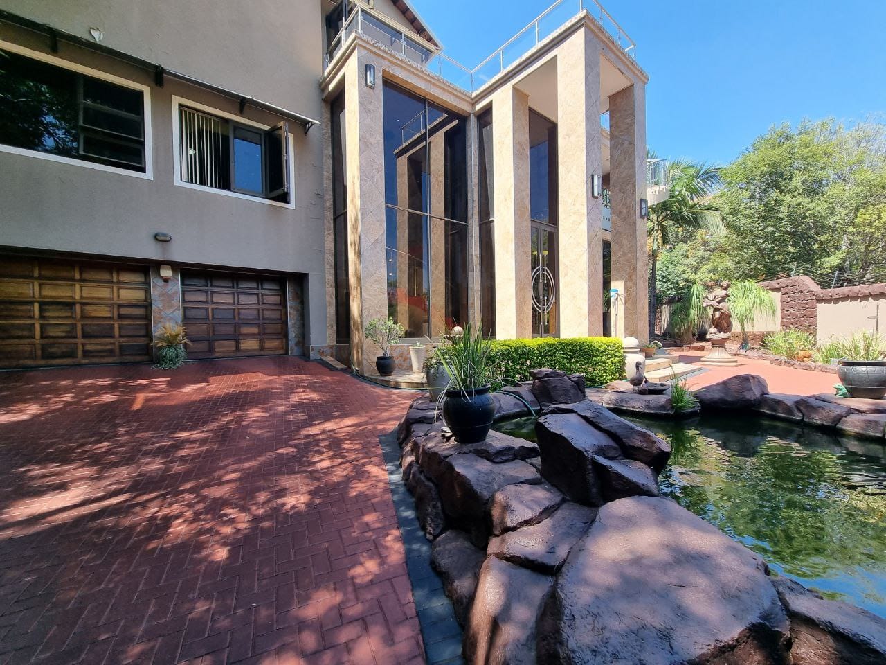 Exquisite Exterior: The property features a beautiful garden with hidden treasures, including large waterfalls leading into a koi-filled dam, surrounded by stunning garden ornaments.