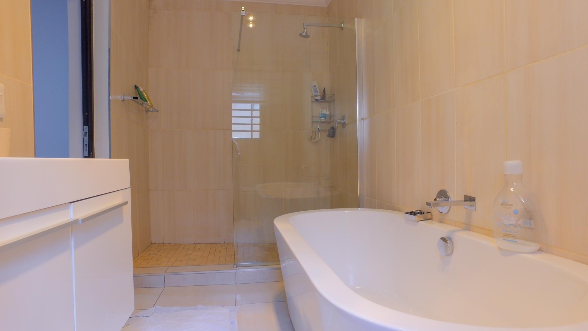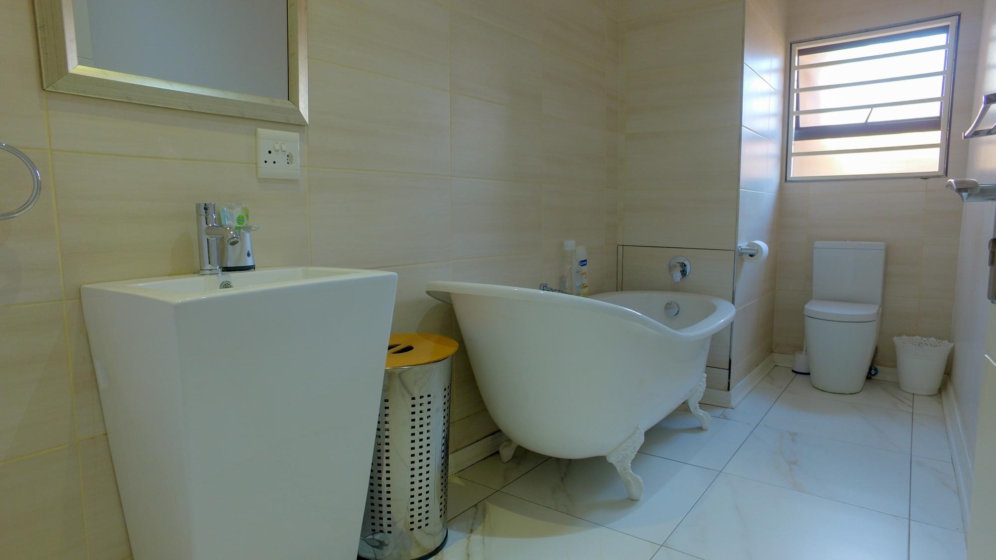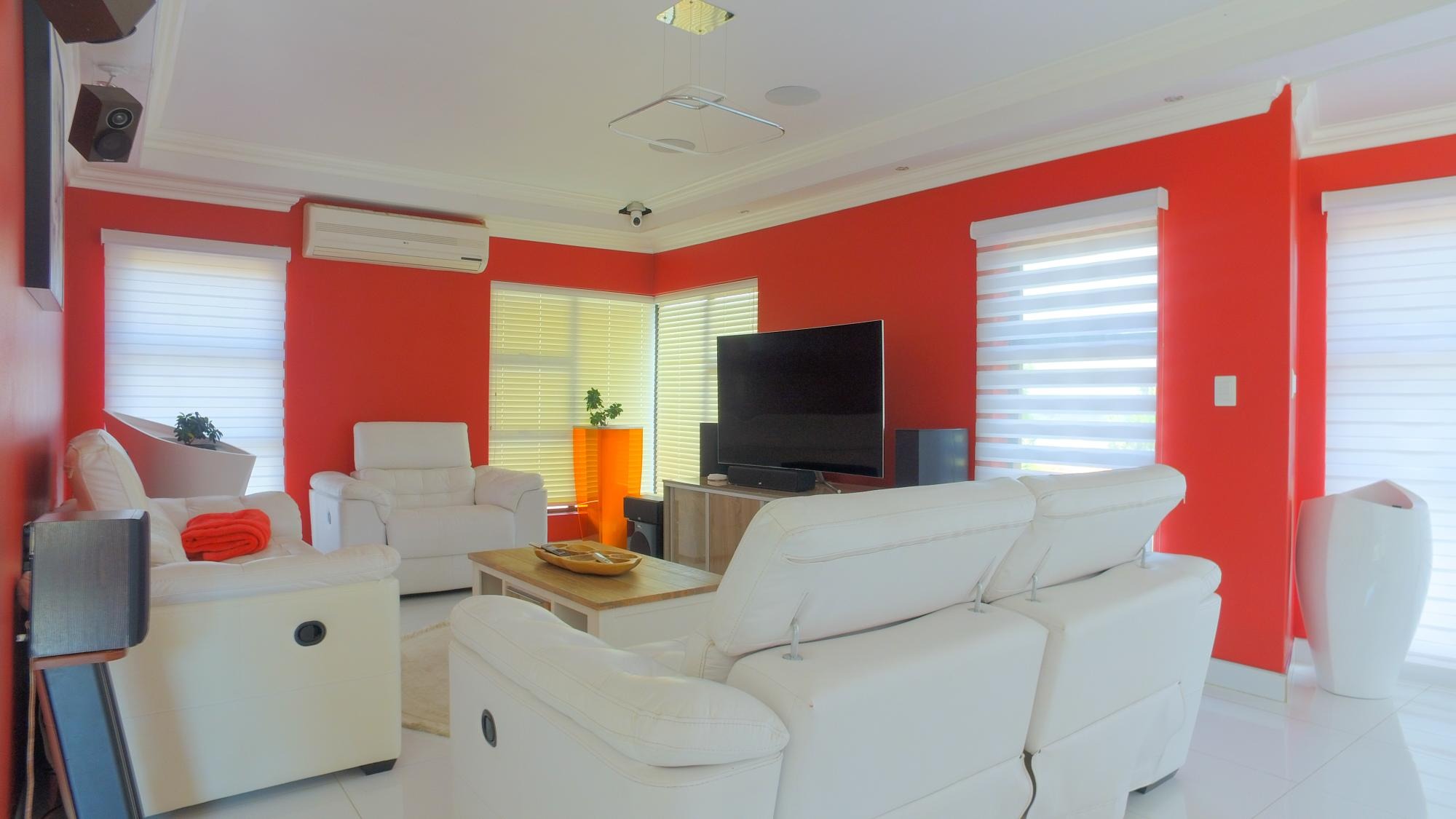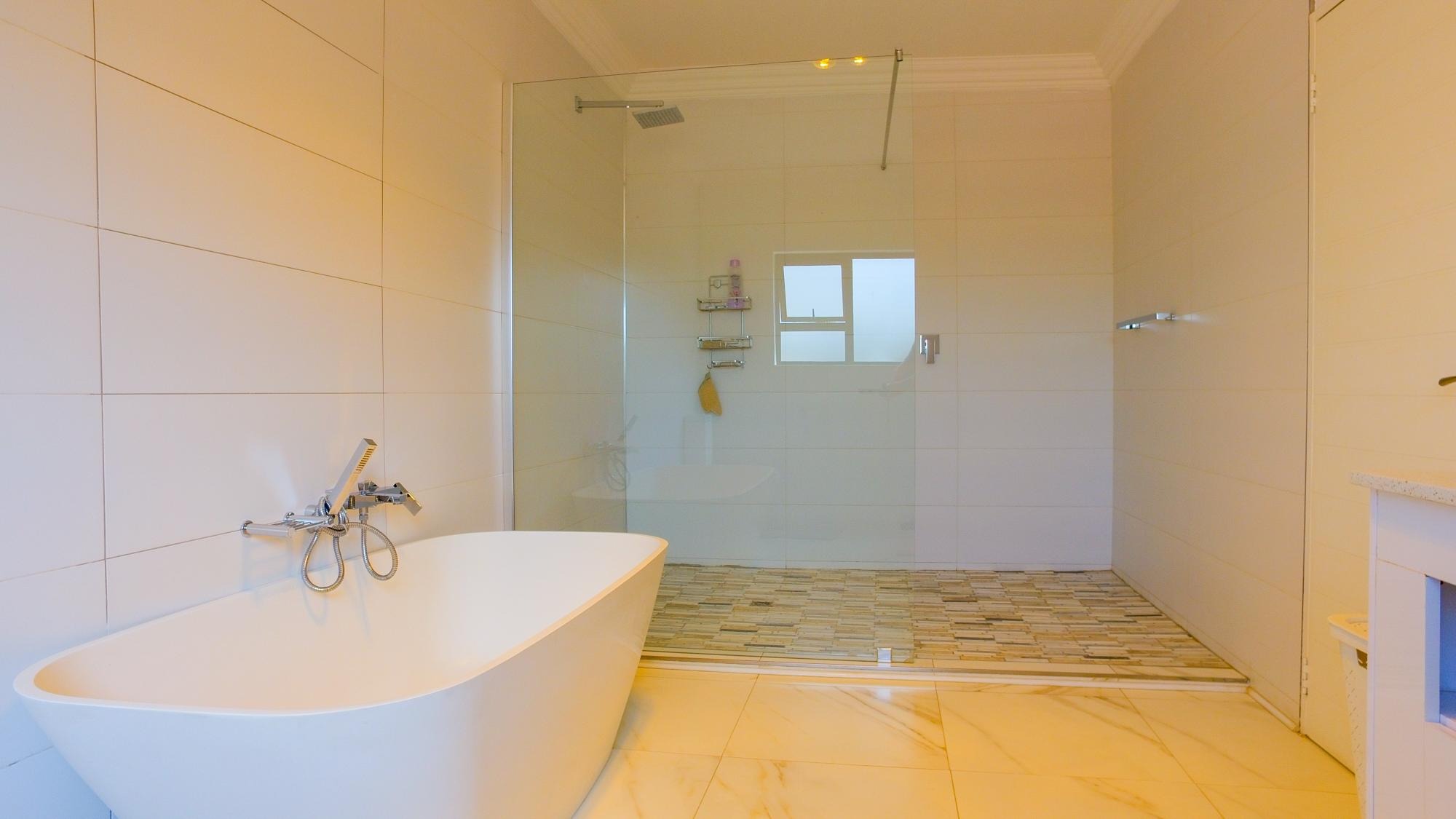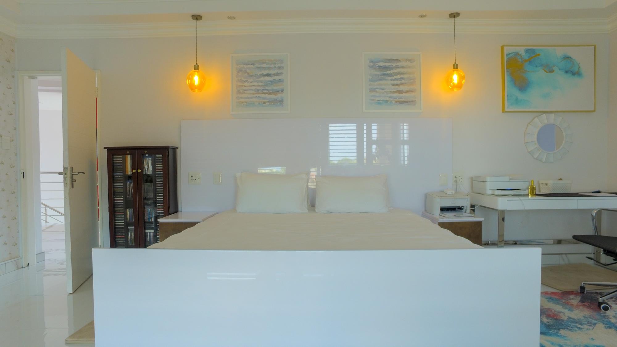 Ascend the stairs to a welcoming pajama lounge, leading to the epitome of luxury – the main bedroom. Revel in the opulence of white tiles, Trellidoor shutter view doors opening to a private balcony with panoramic views. The main bedroom boasts a walk-in closet and a lavish bathroom equipped with a massive shower, standalone bath, his and hers basins, and vanity cupboards. An additional room beckons to be transformed into a bedroom, cinema room, or home office.