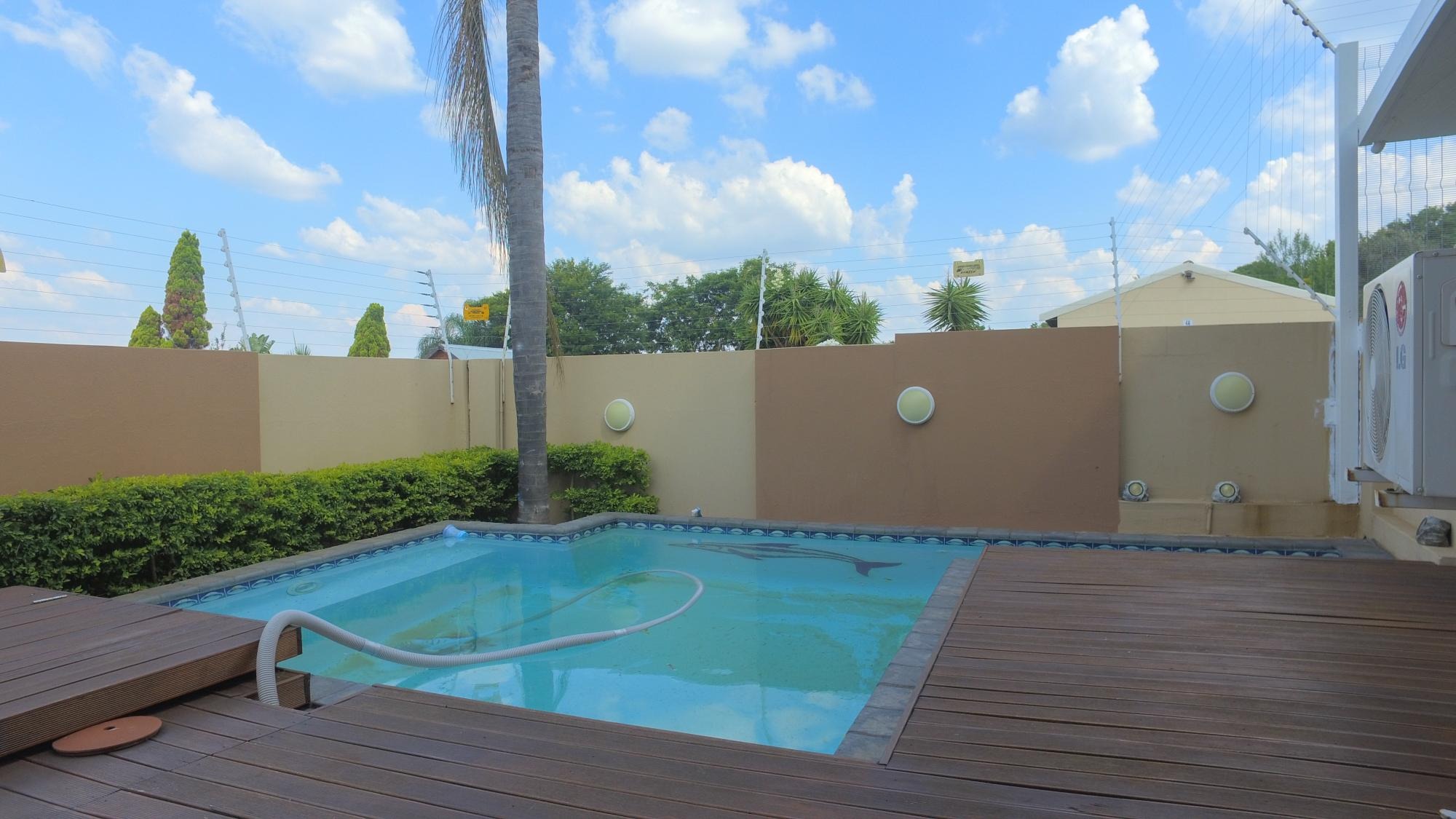 Step into the lap of luxury with this exquisite family home nestled in the heart of Safari Gardens, offering breathtaking views of Rustenburg's scenic outskirts. As you enter, a small patio invites you to soak in the ambiance overlooking the pristine pool area.
