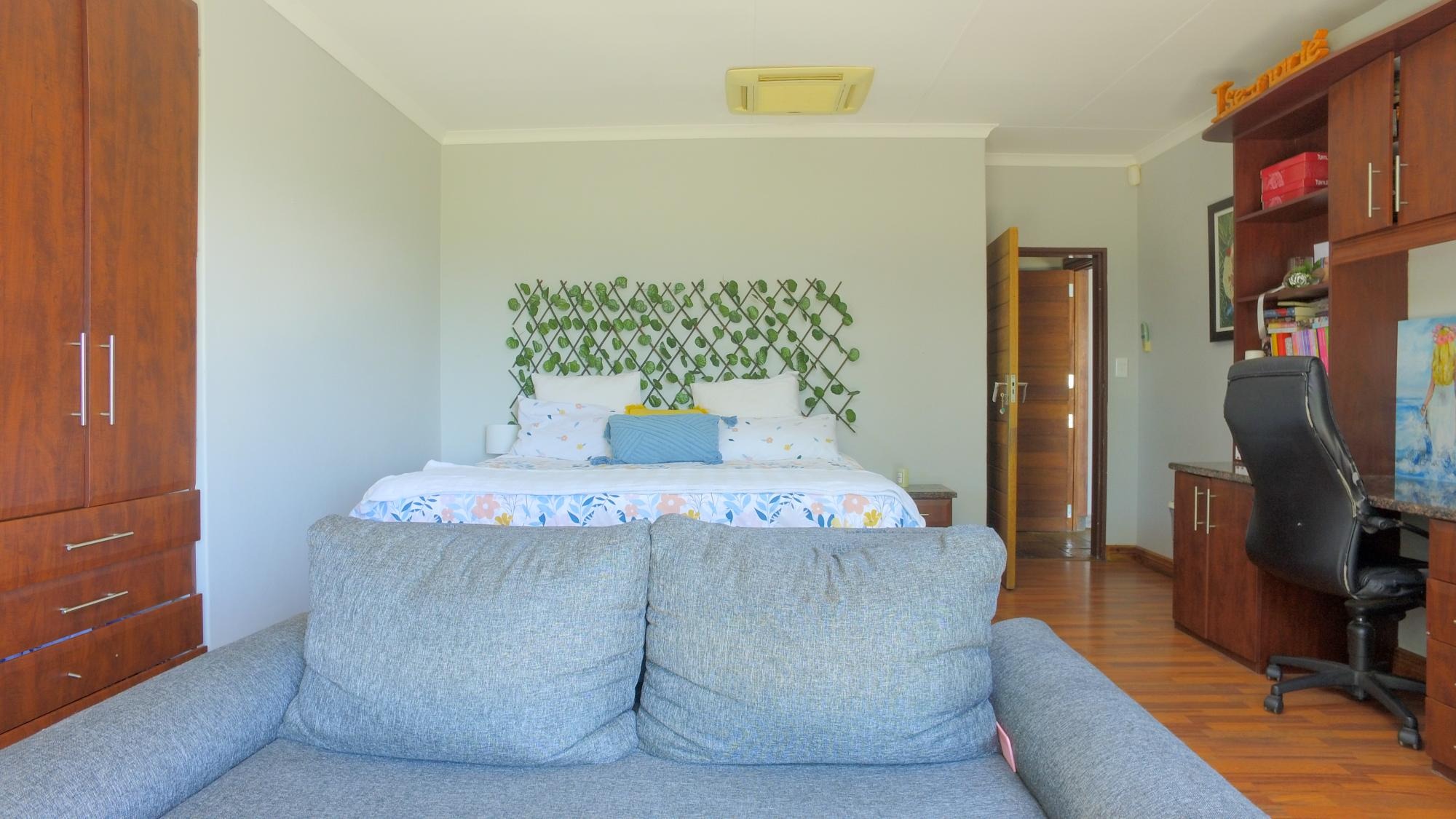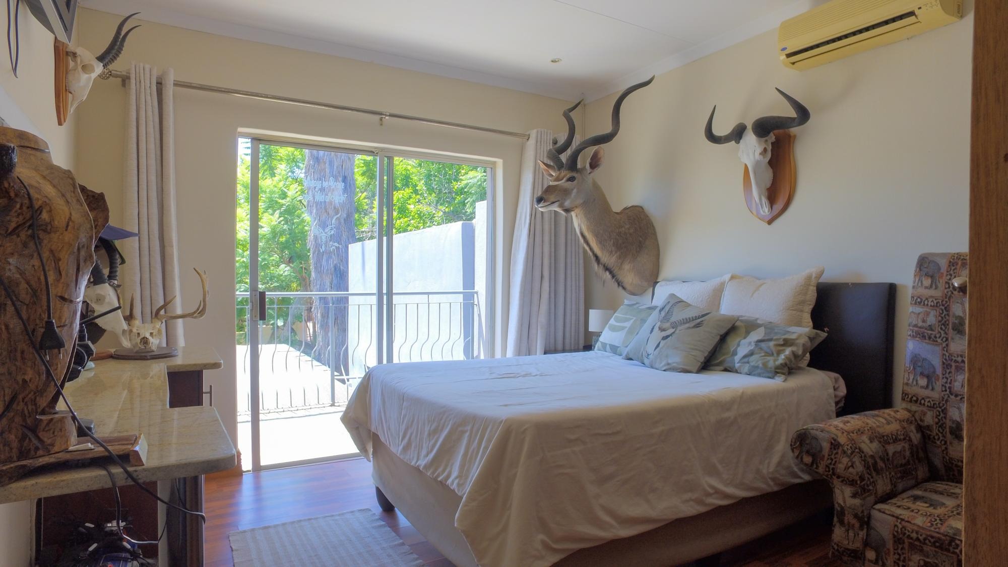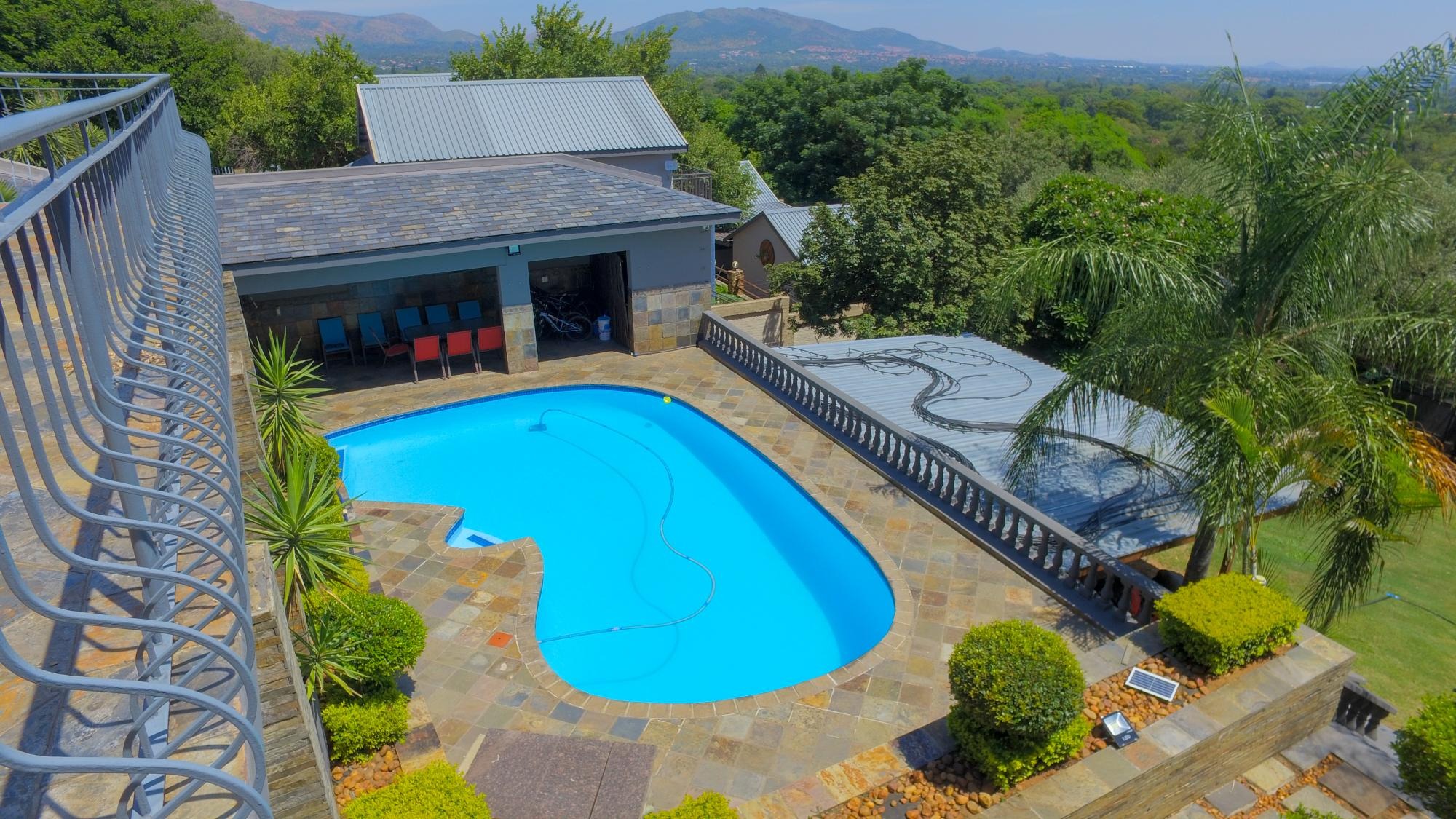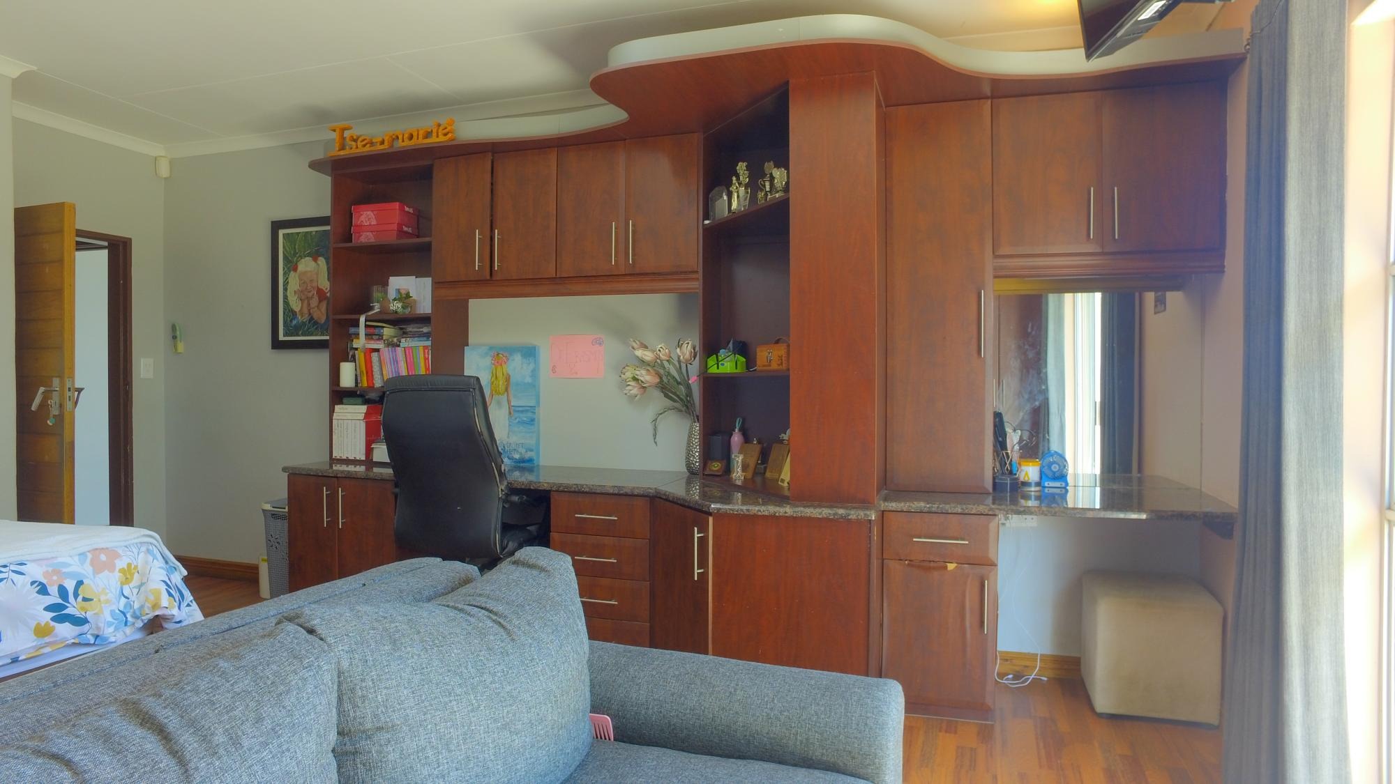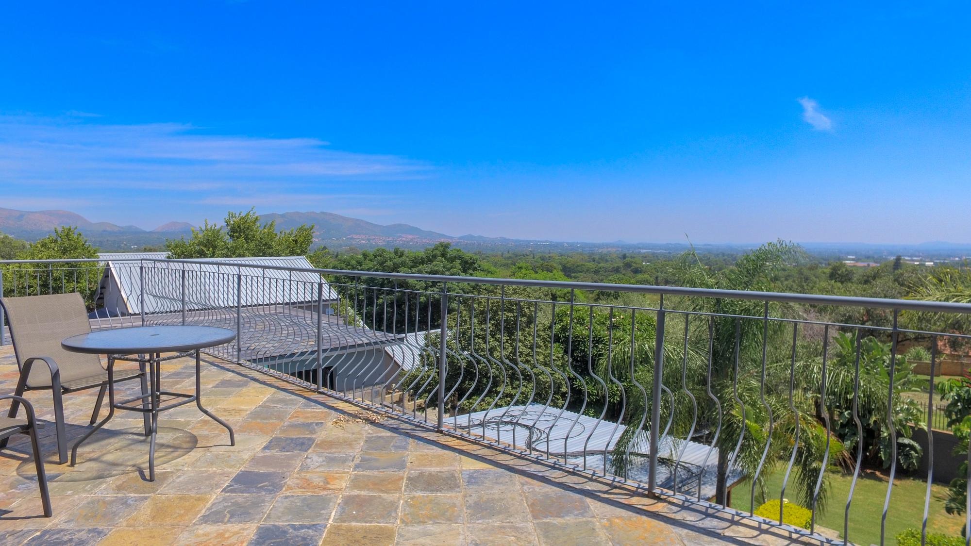 Upstairs, discover five spacious bedrooms, with one currently used as a storage room but easily converted into a bedroom. Three bedrooms feature built-in study desks, cupboards, and wardrobes, while the main bedroom offers a private escape complete with mirrored wardrobes, an en-suite bathroom with a spa bath, a generous shower, and his and hers basins. All bedrooms open up to a balcony area showcasing breathtaking views over Rustenburg. An additional guest bathroom ensures ample accommodation for the whole family.