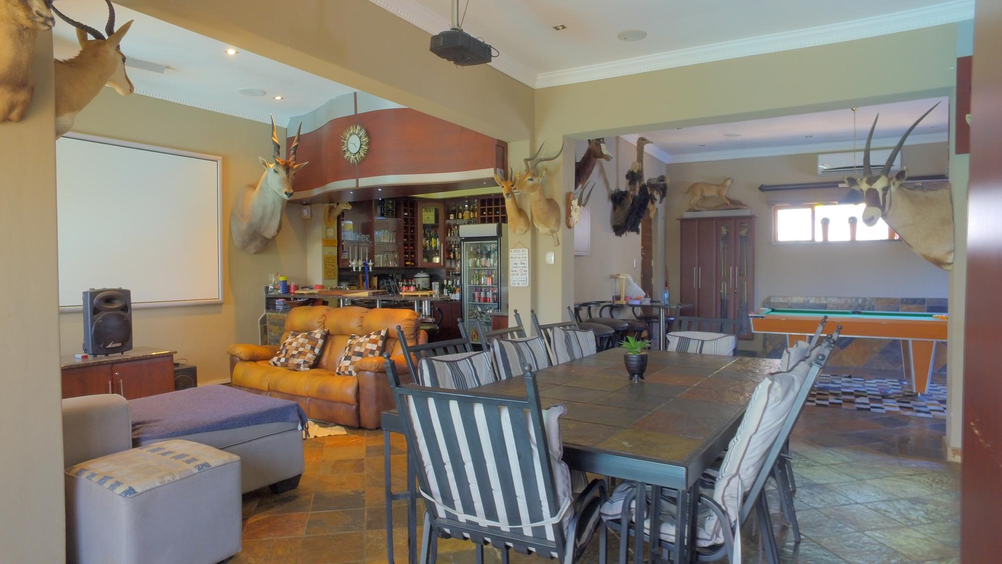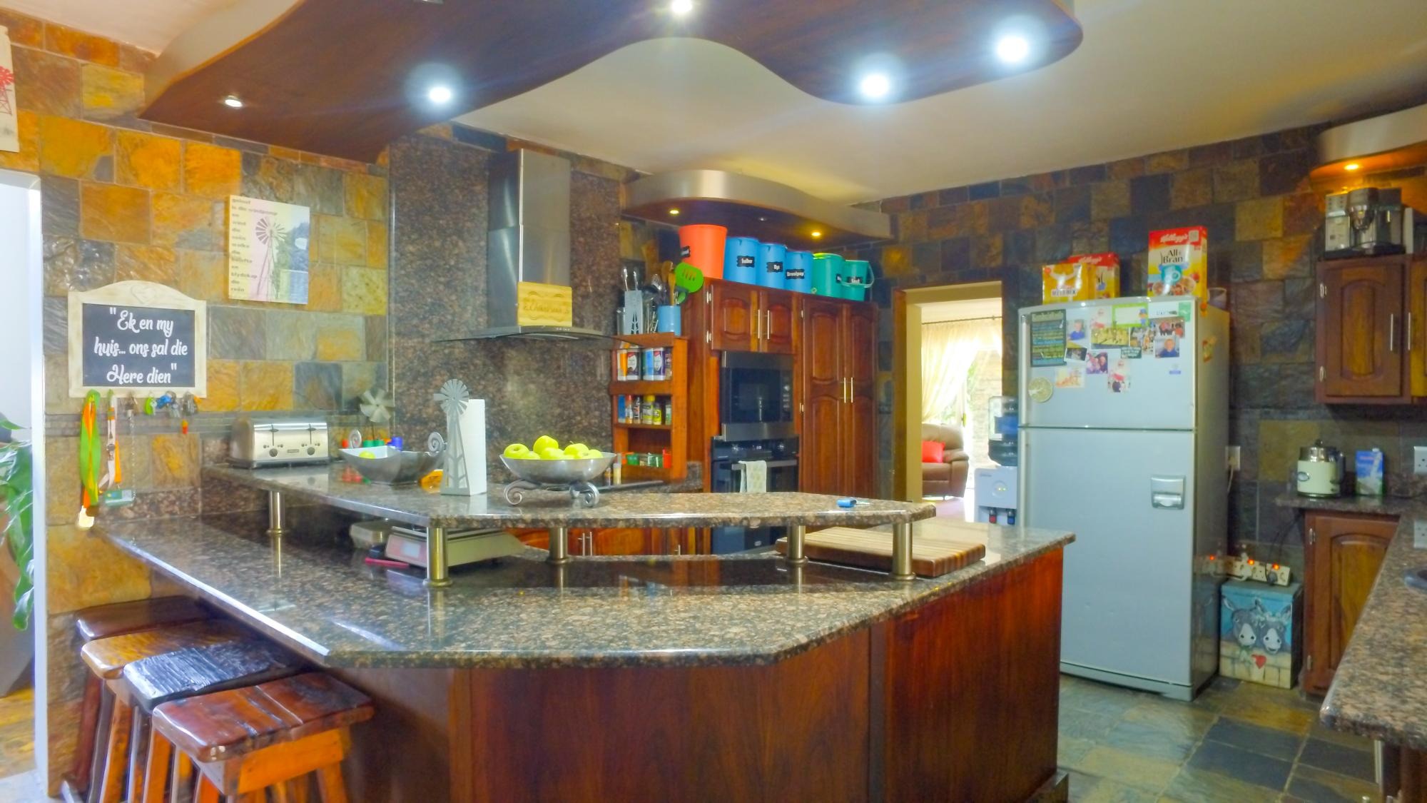 Completing this remarkable property is a staff room with its own bathroom, a borehole with a Jojo tank for sustainable water supply, a 60kva generator that guarantees uninterrupted power during load shedding, and two solar geysers for energy efficiency. As a bonus, there is also an apartment on the premises. With a double garage and ample undercover parking, this property is perfect for a larger family in search of space and comfort. Security is sorted with a cctv camera system, alarm system, and electrical fence around the property and outside beams.