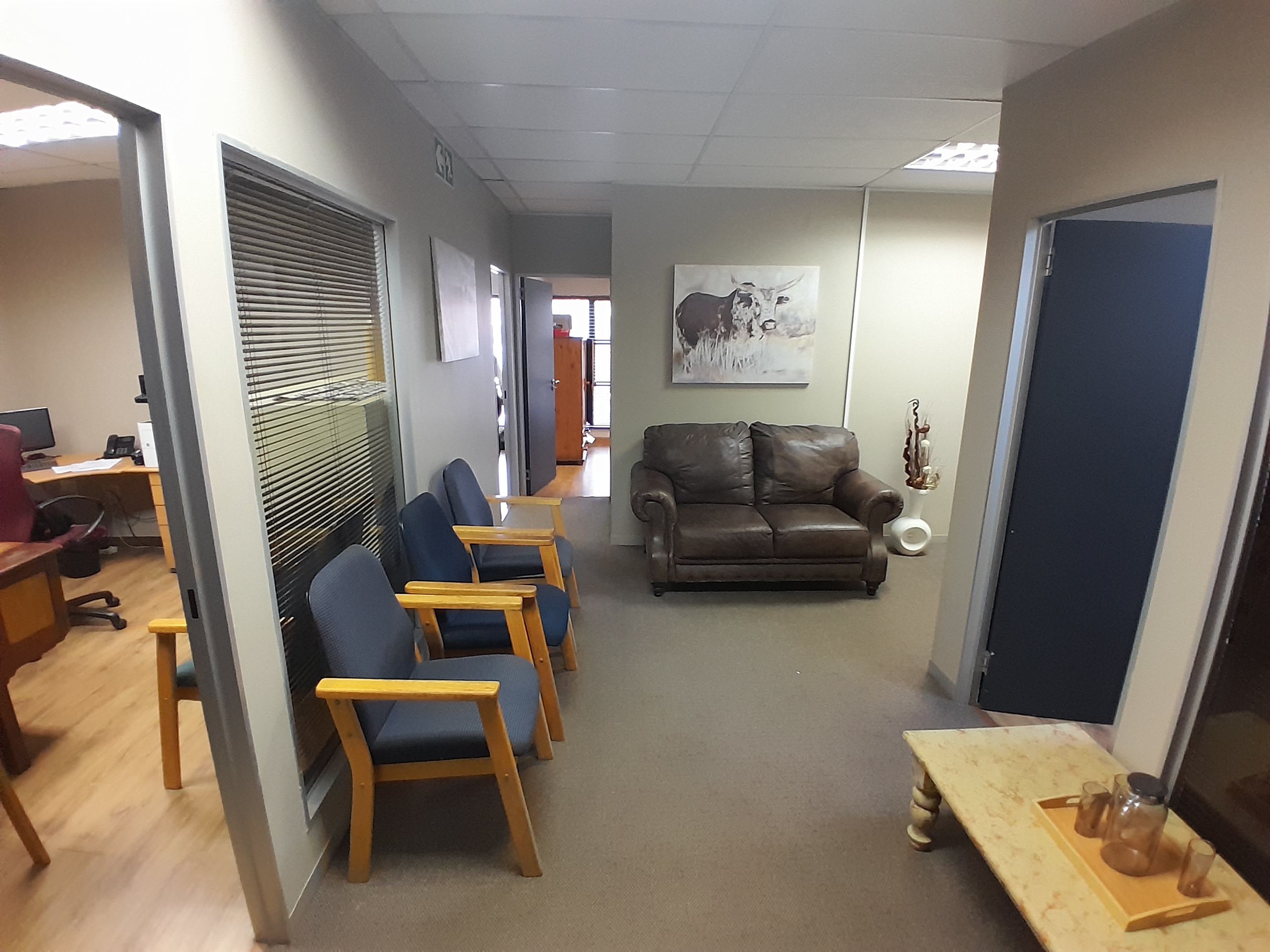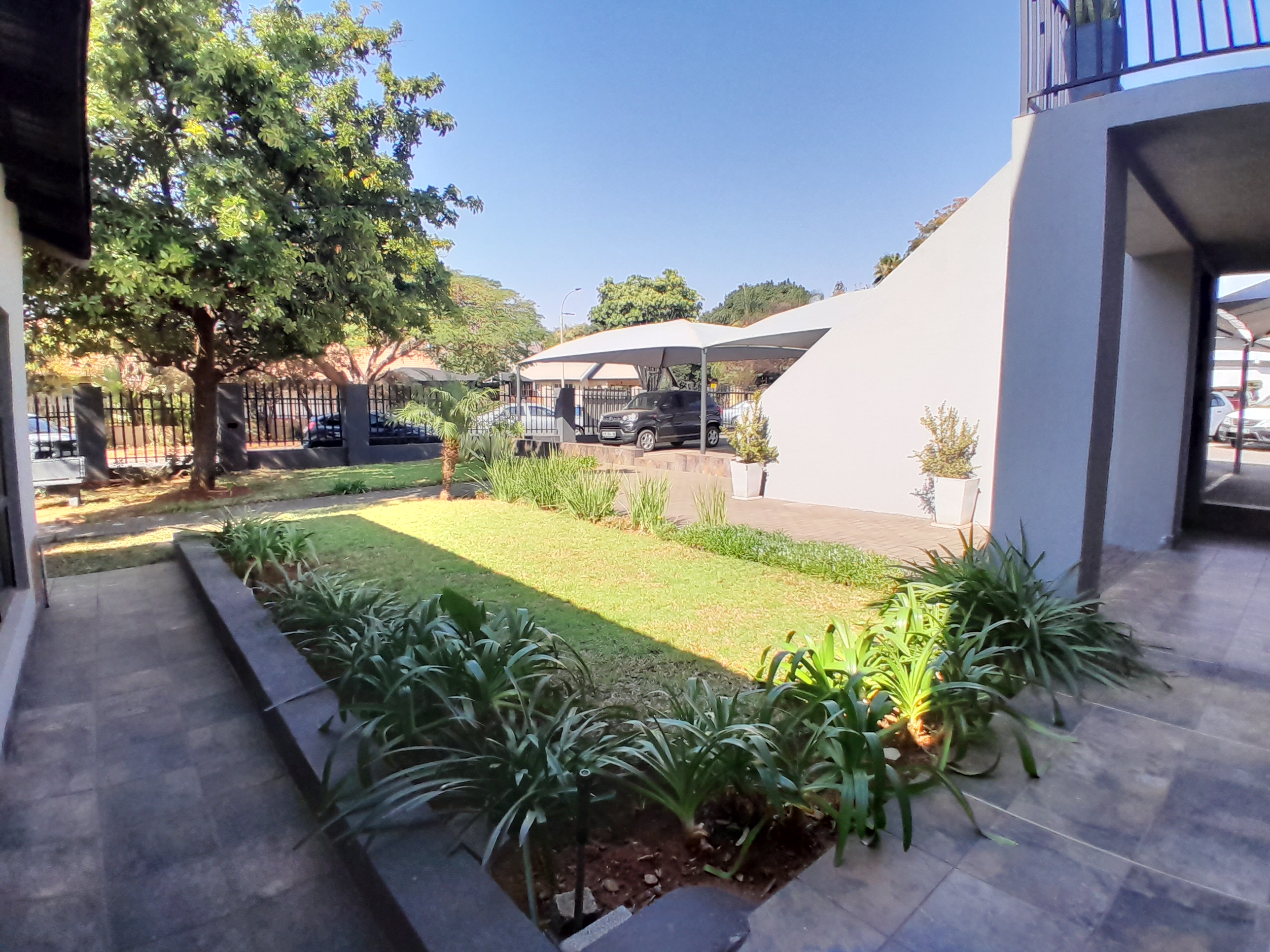 Offering tranquil and professional environment, making it an inviting space to work. The interior is thoughtfully designed, featuring neat carpeted floors and quality finishes that create a warm and welcoming atmosphere. The layout includes three standard offices, a reception area, a private kitchen, bathroom facility, providing everything you need for a functional workspace. Tenants enjoy secure vehicle access through a controlled gate, with shaded parking provided for all vehicles. The property is enclosed by a combination of partial walling and palisade fencing, ensuring both security and visibility for passing traffic, making it ideal for office or therapy-based businesses. The well-maintained garden, with its carefully groomed landscaping and occasional decorative features, adds a touch of natural beauty to the surroundings.