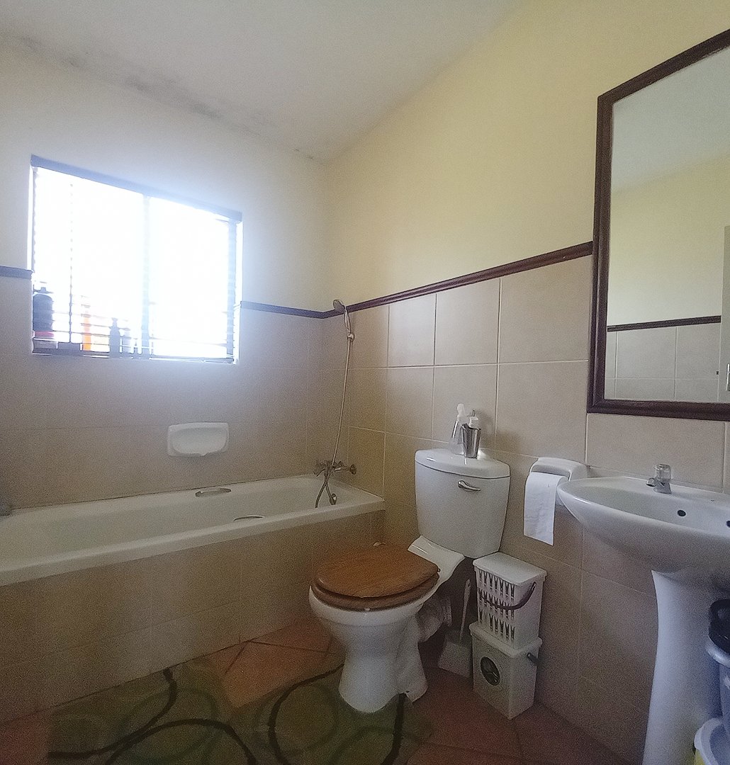 The apartment has 3 bedrooms and 2 bathrooms - the sunny bedrooms are all tiled and have ample built in cupboards; the en suite bathroom has a shower, toilet and basin and the second bathroom has a bath, toilet and basin.