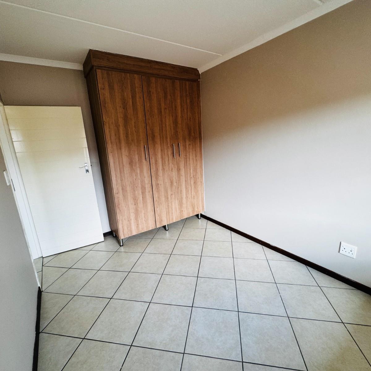 The development offers 24-hour security, access control, secure parking, a swimming pool, clubhouse, and an on-site laundromat. Conveniently located close to major shopping centres, schools, and transport routes, with easy access to Johannesburg and Pretoria.