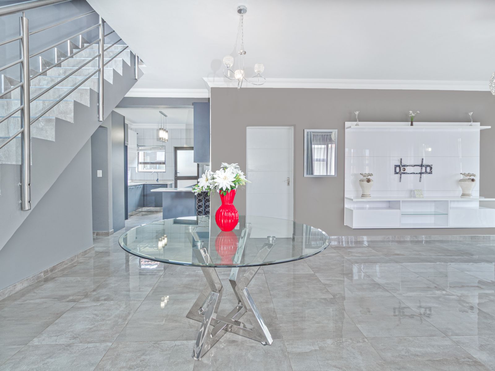 Open-Plan Living: Downstairs features a sleek, modern kitchen flowing effortlessly into the dining and living areas, perfect for entertaining and family gatherings.