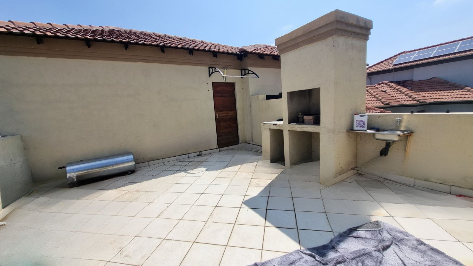 Spacious roof top patio with a built in braai.