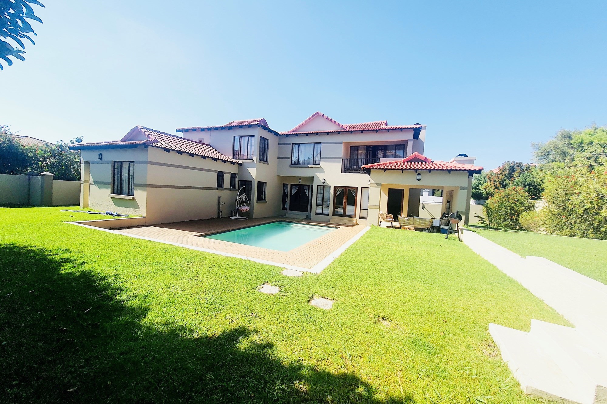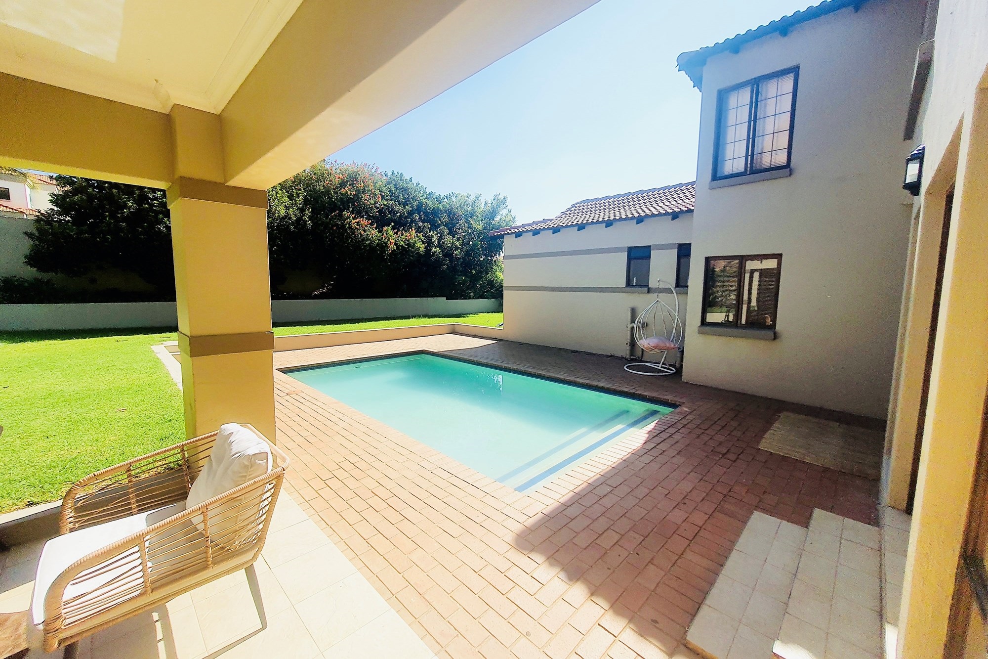 The formal lounge flows seamlessly onto a covered entertainment patio—perfect for hosting—while the expansive garden boasts a sparkling pool, creating an ideal setting for both relaxation and celebration.