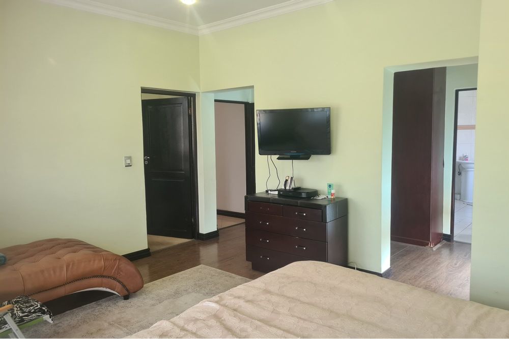 Upstairs, you will find a cozy pyjama lounge, offering ample cupboard space and creating a peaceful retreat. The upper floor also houses four additional bedrooms, each thoughtfully designed for comfort. One bedroom boasts a private balcony and carpeted flooring, while the remaining rooms feature beautiful wooden floors and built-in wall units. Each bedroom is serviced by its own bathroom, ensuring privacy for all family members. The master bedroom is a true haven, complete with an en-suite bathroom and a spacious walk-in closet, offering a luxurious and private escape.