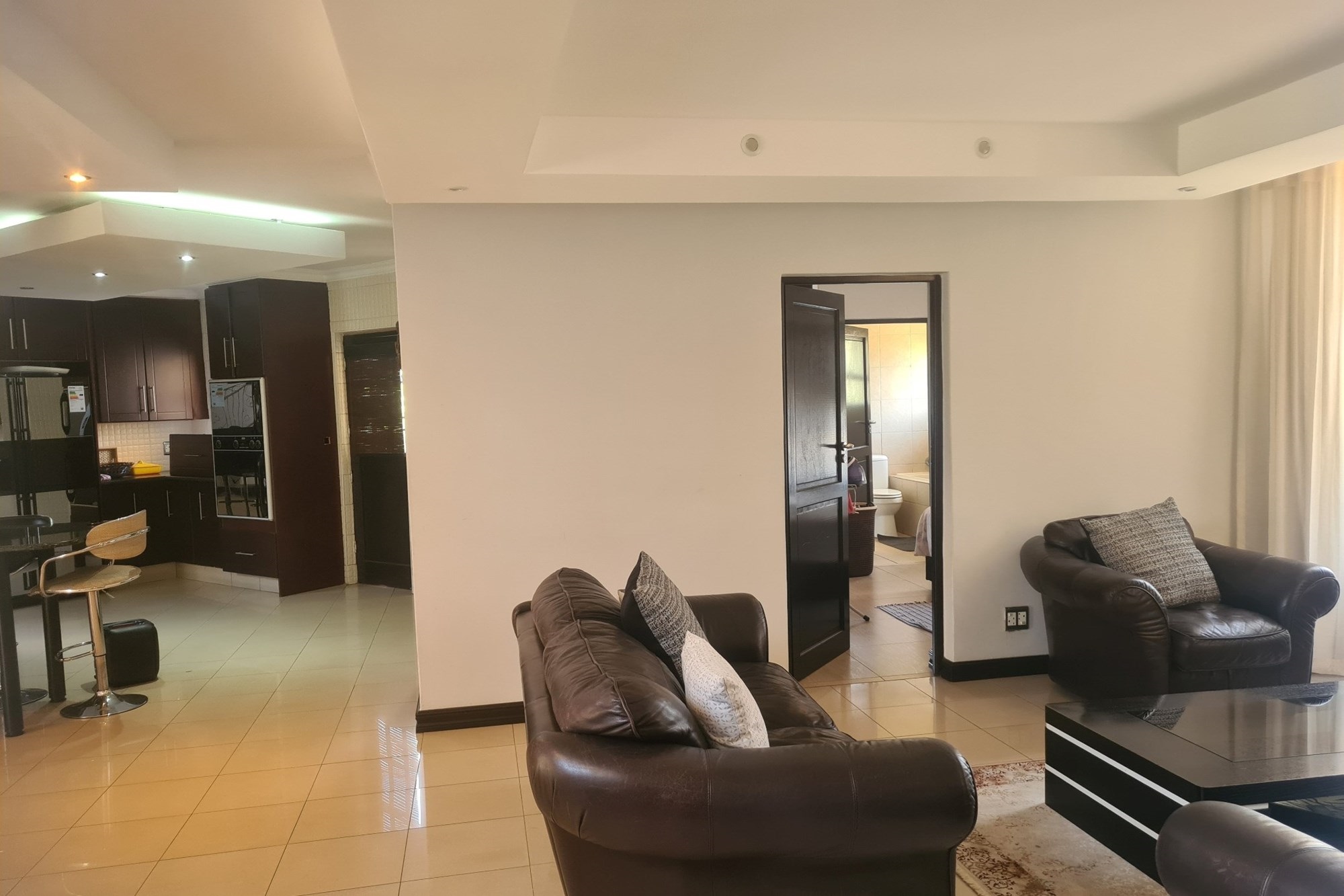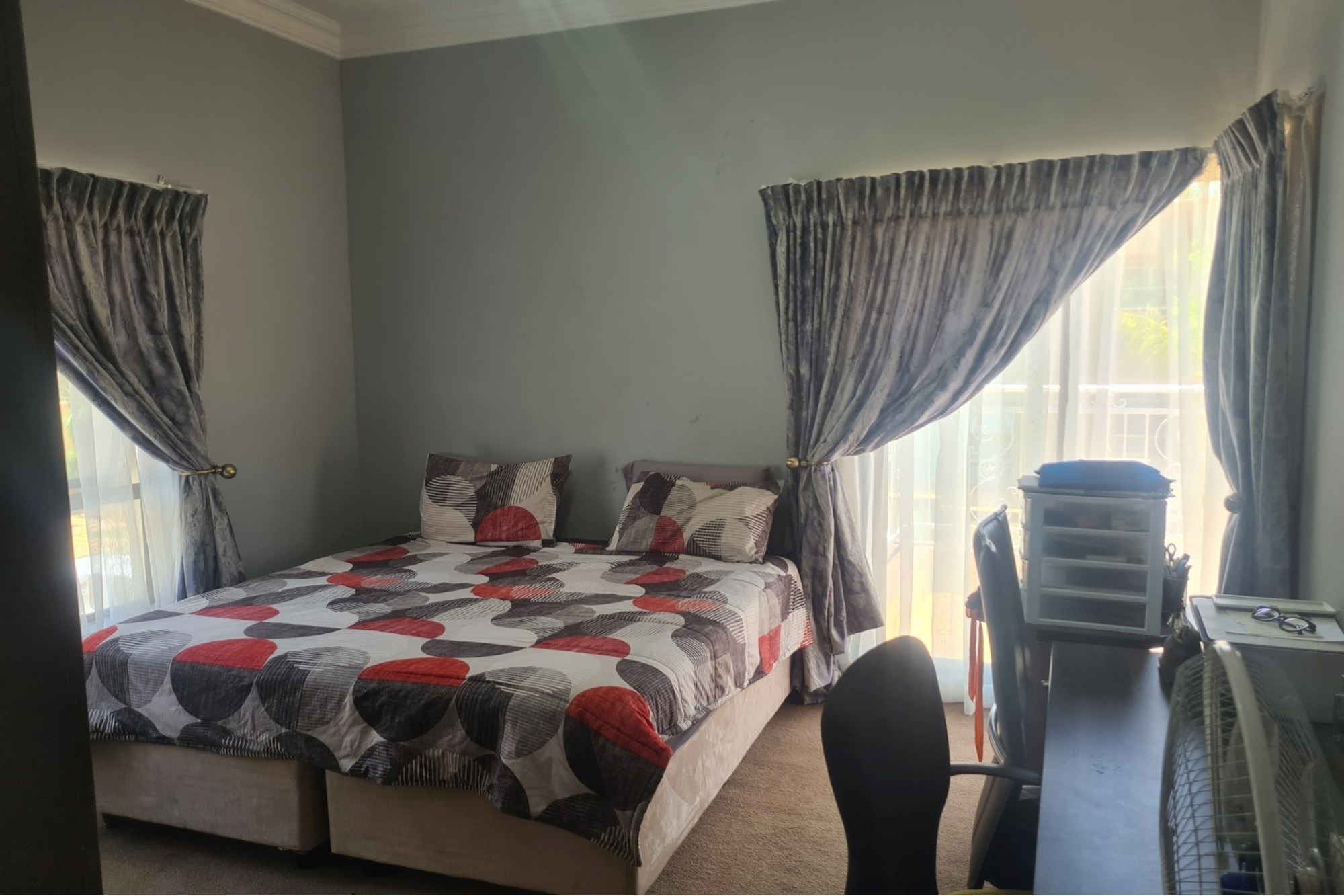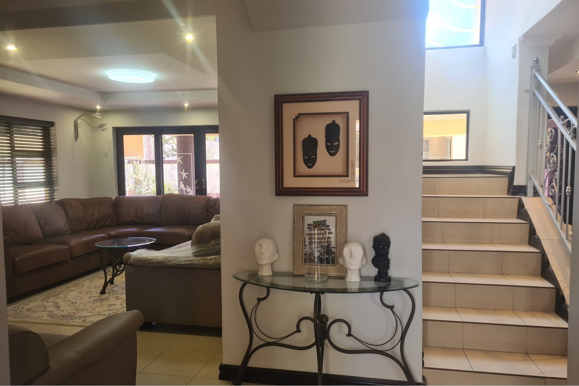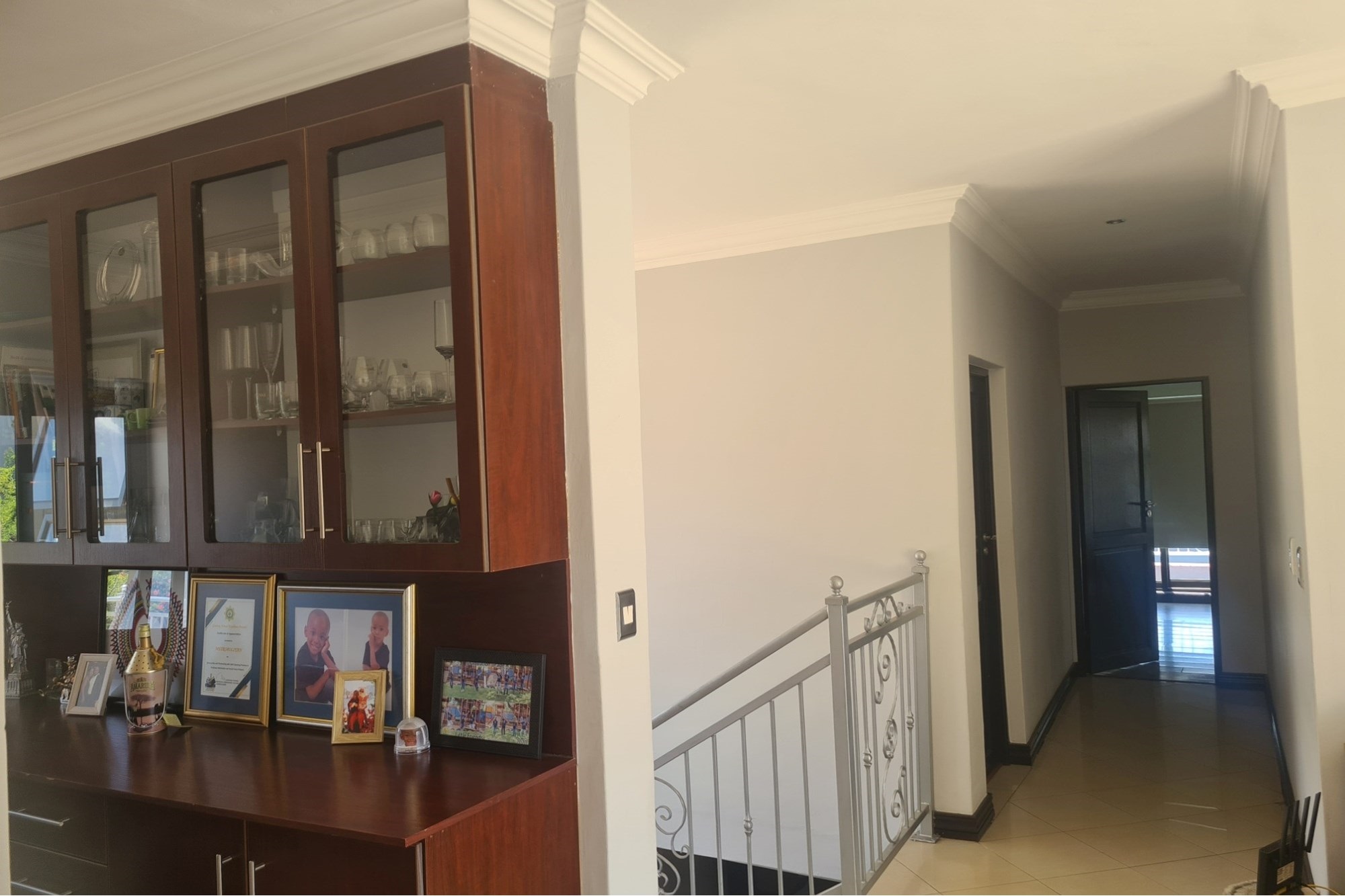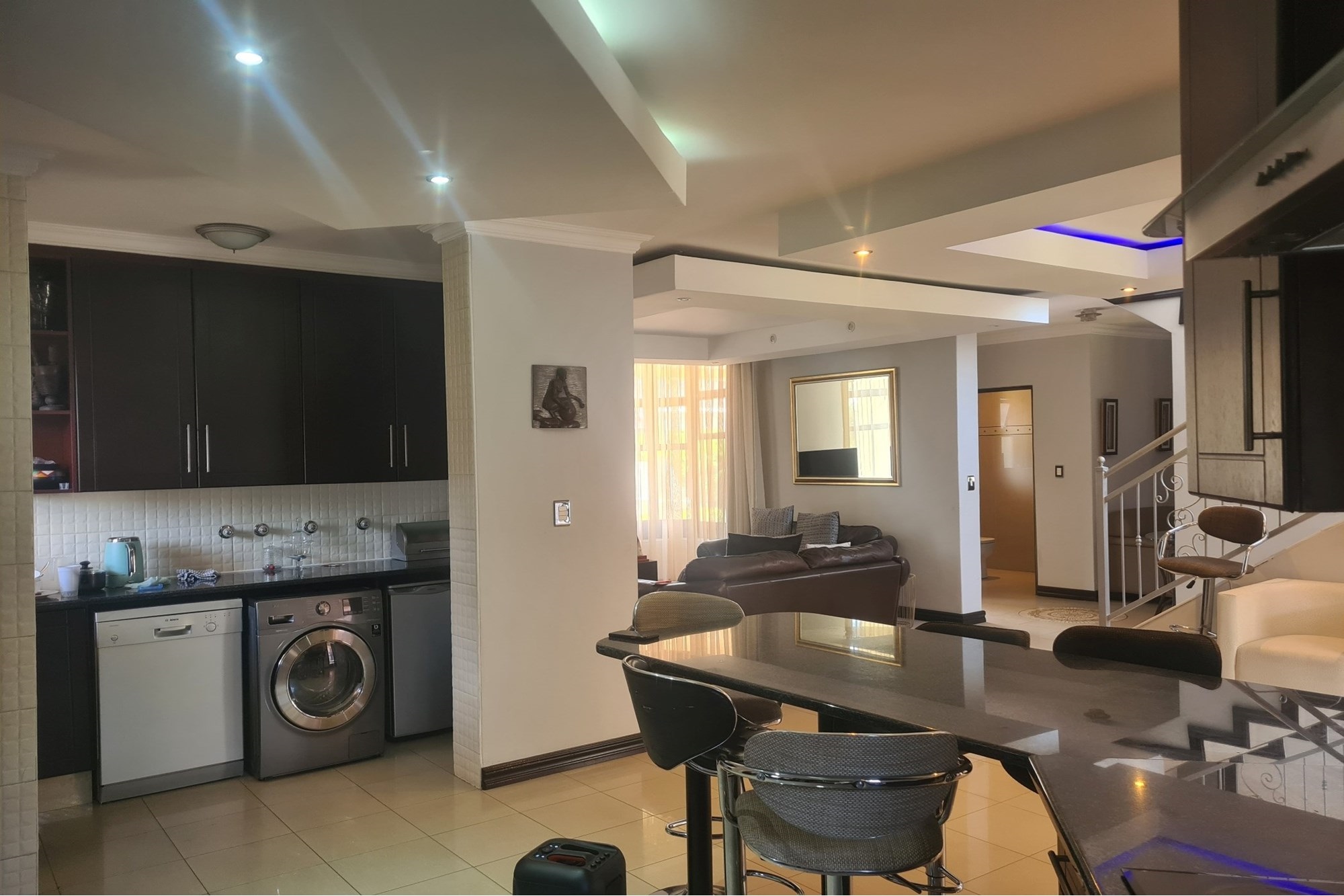 This exceptional double-storey family home, located in a highly sought-after secure estate, is designed for comfort, luxury, and convenience. Upon entering the home, you`ll be greeted by a private lounge and dining area, creating an inviting space for family gatherings and relaxation. A guest bathroom adds a touch of practicality, and an en-suite bedroom on the ground floor offers privacy and comfort.