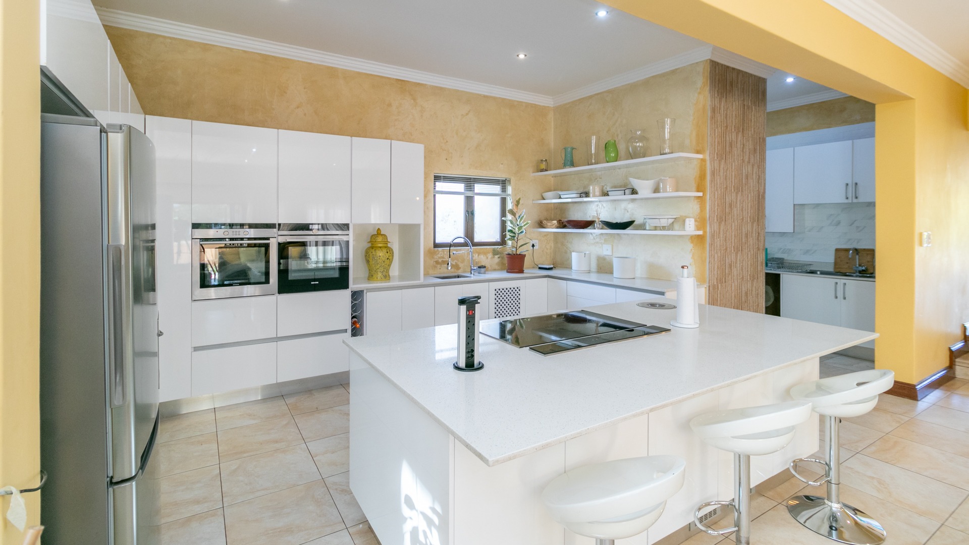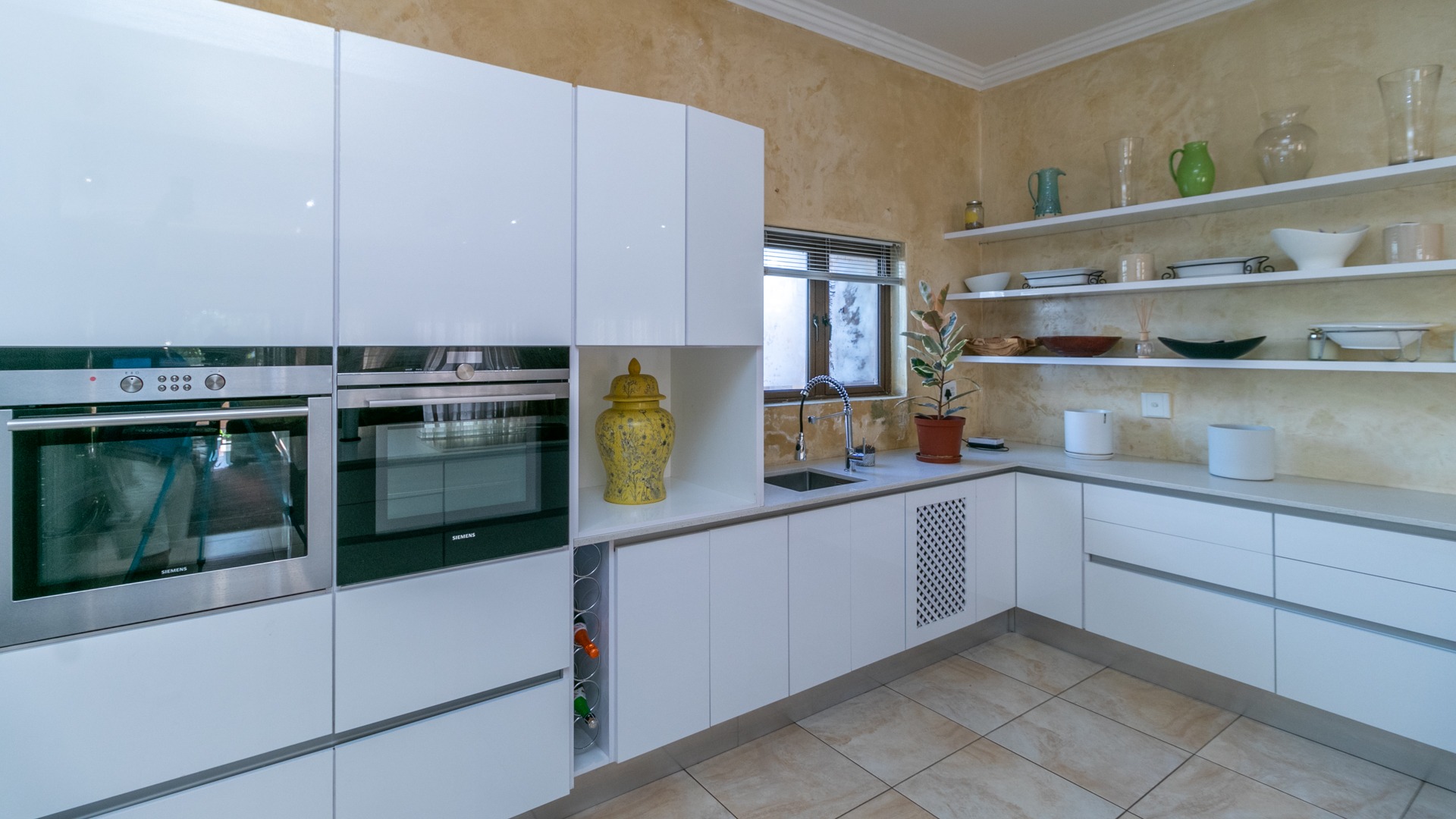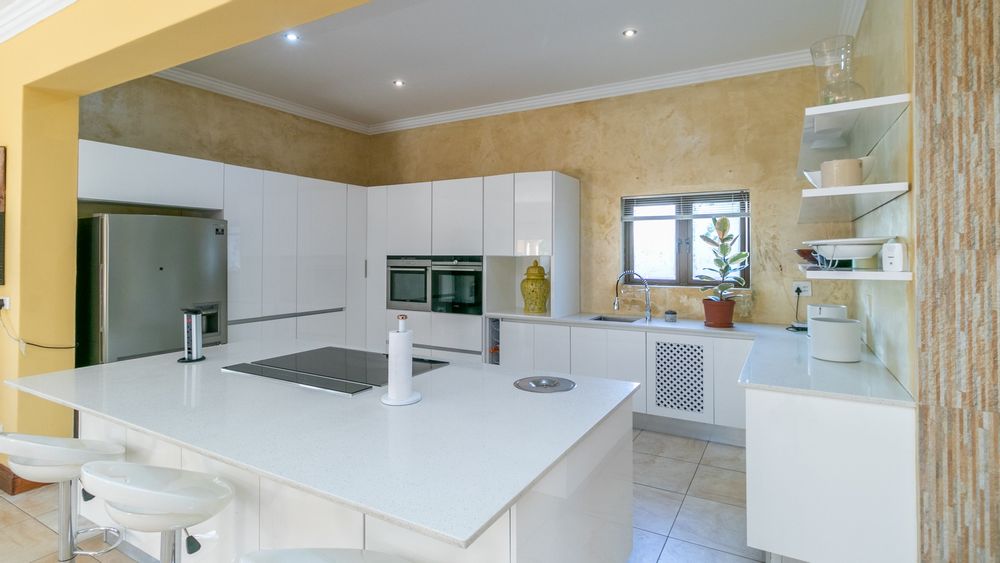Gourmet Kitchen: Step into a chef's dream with a spacious kitchen featuring pristine white countertops, modern appliances, and a convenient scullery.