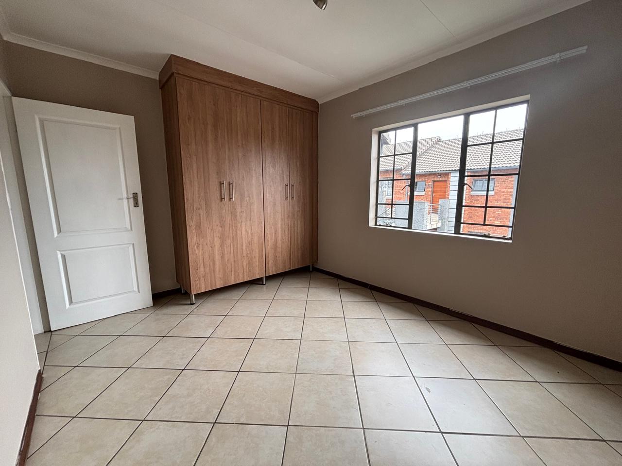 Welcome to this charming two-bedroom unit nestled in a tranquil complex designed to offer you both comfort and security. With 24-hour security, you can enjoy peace of mind knowing that your home and loved ones are well-protected. This delightful unit features two well-sized bedrooms, each equipped with built-in cupboards and neatly tiled floors for a modern and clean aesthetic. Both bedrooms conveniently share a full bathroom, making it perfect for small families or professionals.