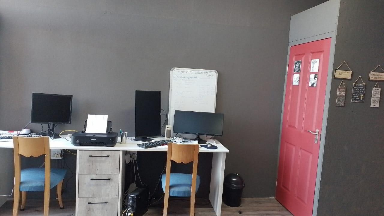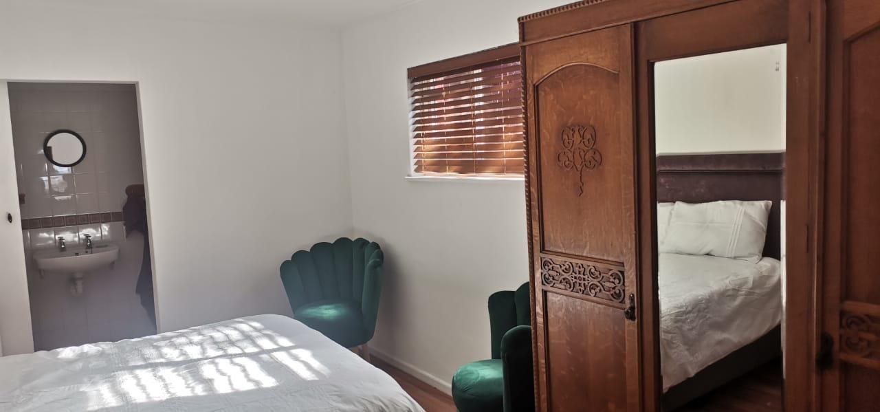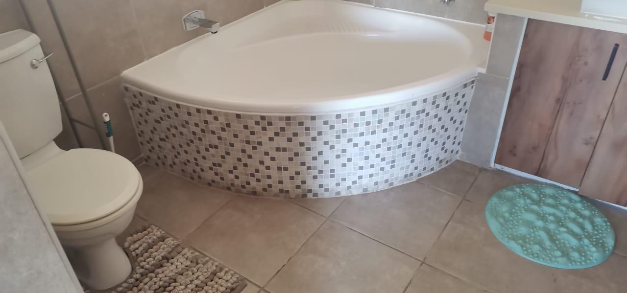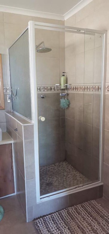 Separate bachelor flat with a shower, toilet, basin, own hot water geyser, open-plan kitchen, and living area.