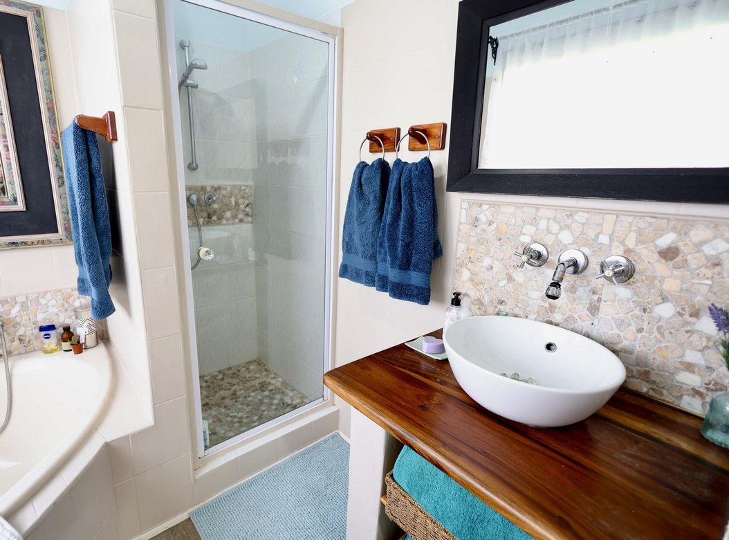 The kitchen, with a gas stove, and ample counter space as well as a separate scullery. The property boasts 3 generously sized bedrooms, each thoughtfully designed to offer privacy and relaxation. The master bedroom is a serene retreat, complete with an en-suite bathroom, walk-in closet and sea views that greet you every morning.