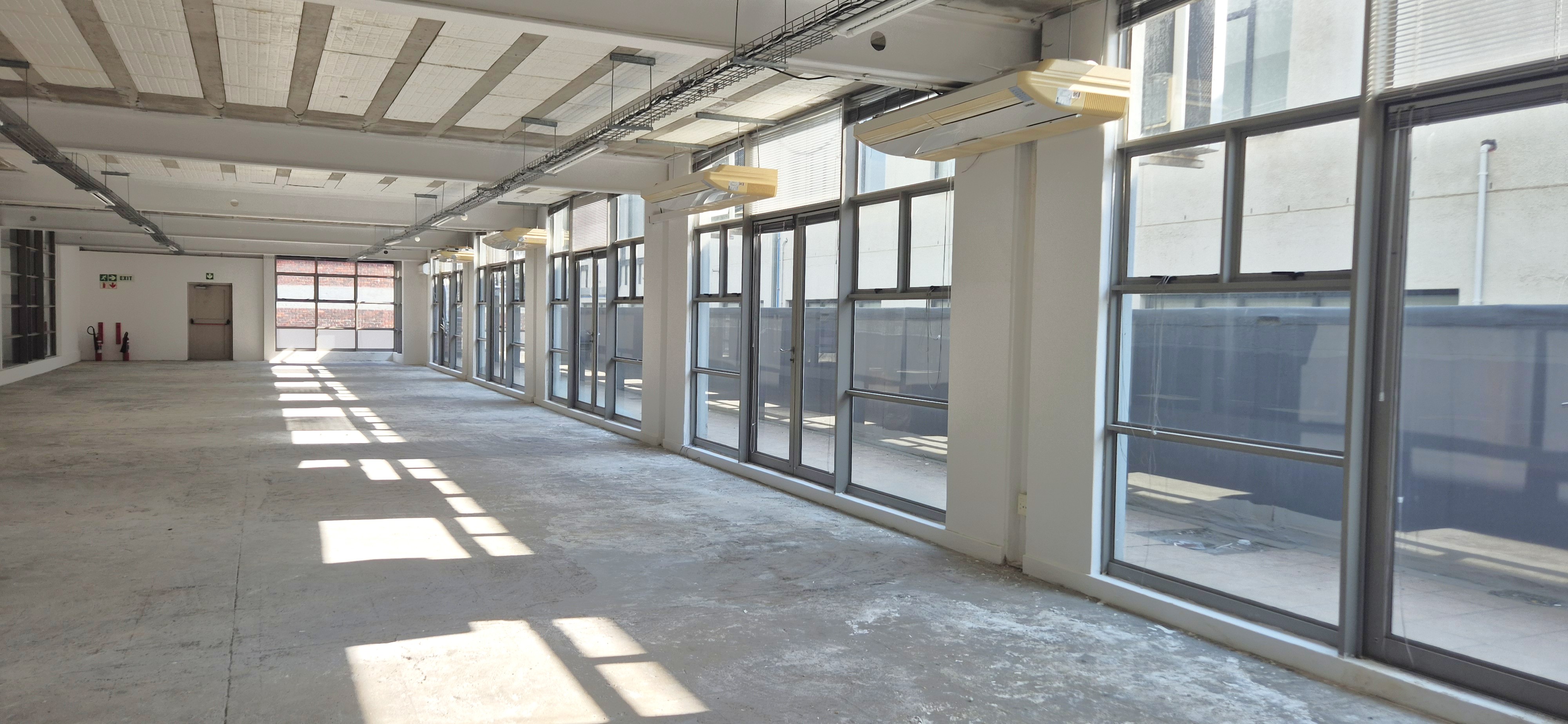 This 1,459sqm office in the Upper East Side precinct of Salt River is offered in grey-box condition, ready to be fitted to specific business needs. Large windows fill the space with natural light, creating a bright and flexible environment suited to a range of occupiers.
