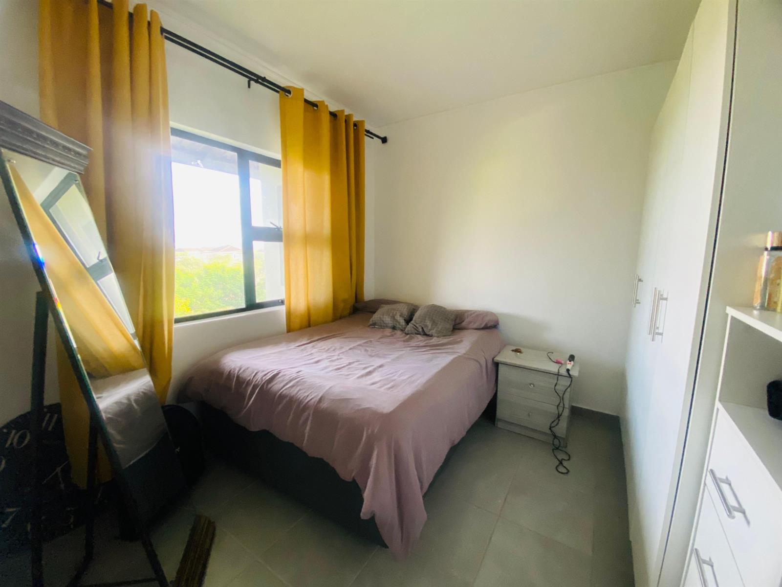 The unit comes furnished with a kettle, microwave, washing machine, tv cabinet, one bed and two side tables and few dishes.