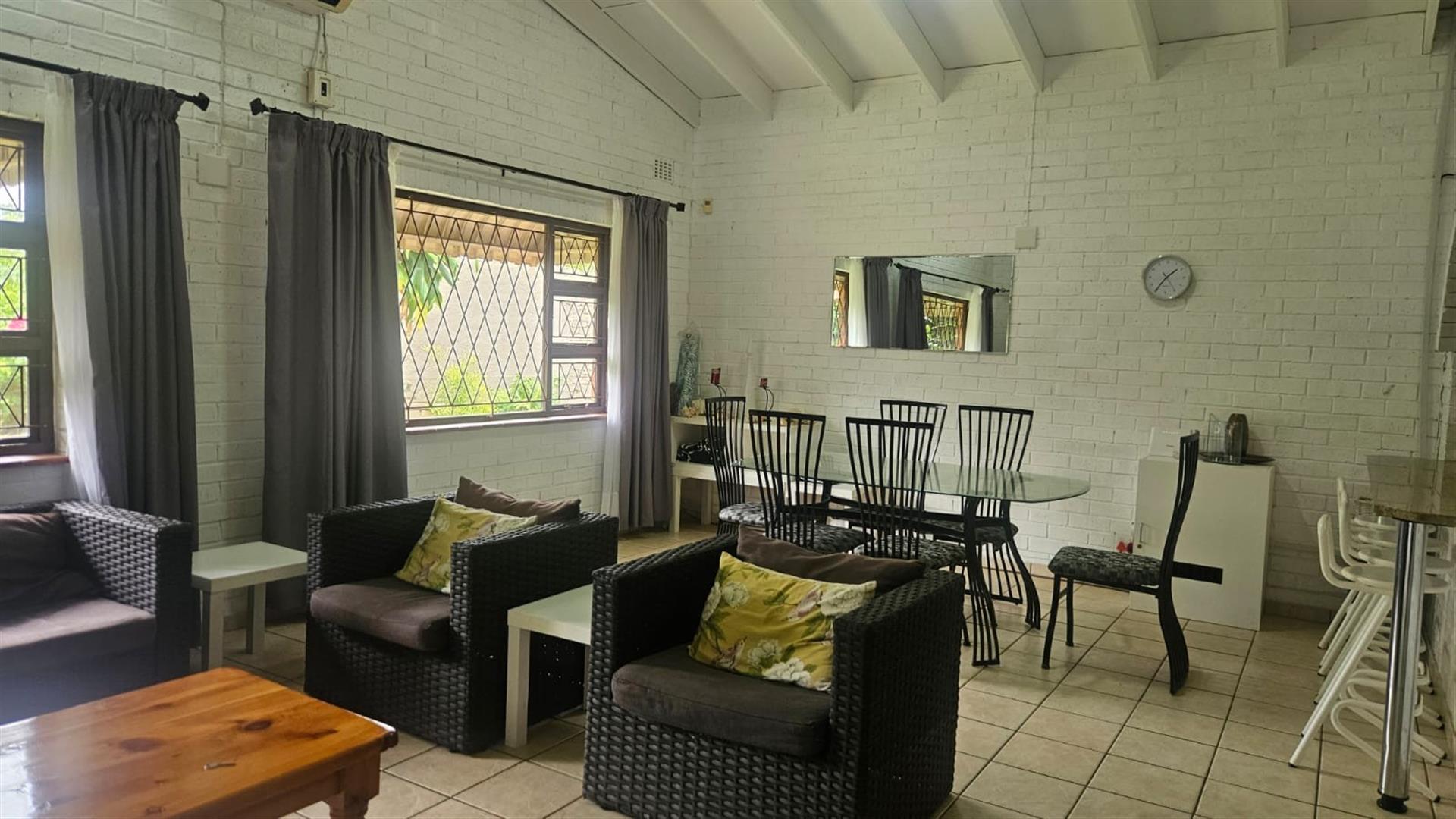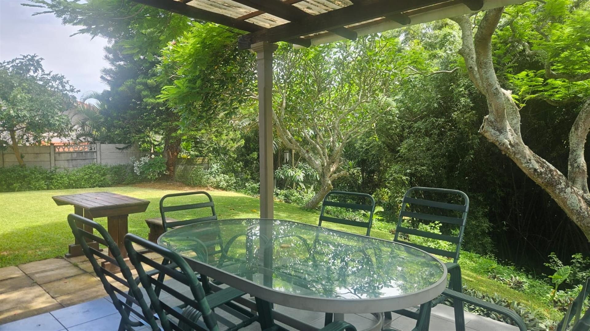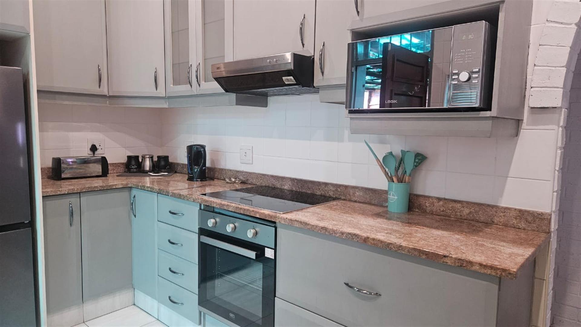 Set on a generous 1146m2 freestanding stand, in a sought after area of Salt Rock, not far from the beach, shops and schools like Curro. This well-maintained home offers space, comfort and excellent lifestyle appeal to a family. The property features three bedrooms and two full bathrooms, including a main en-suite, making it ideal for family living. The well-appointed kitchen offers ample cupboard space, an undercounter electric oven with glass hob and extractor fan, and a practical feed-through to the open-plan dining and lounge area, finished with granite countertops.
