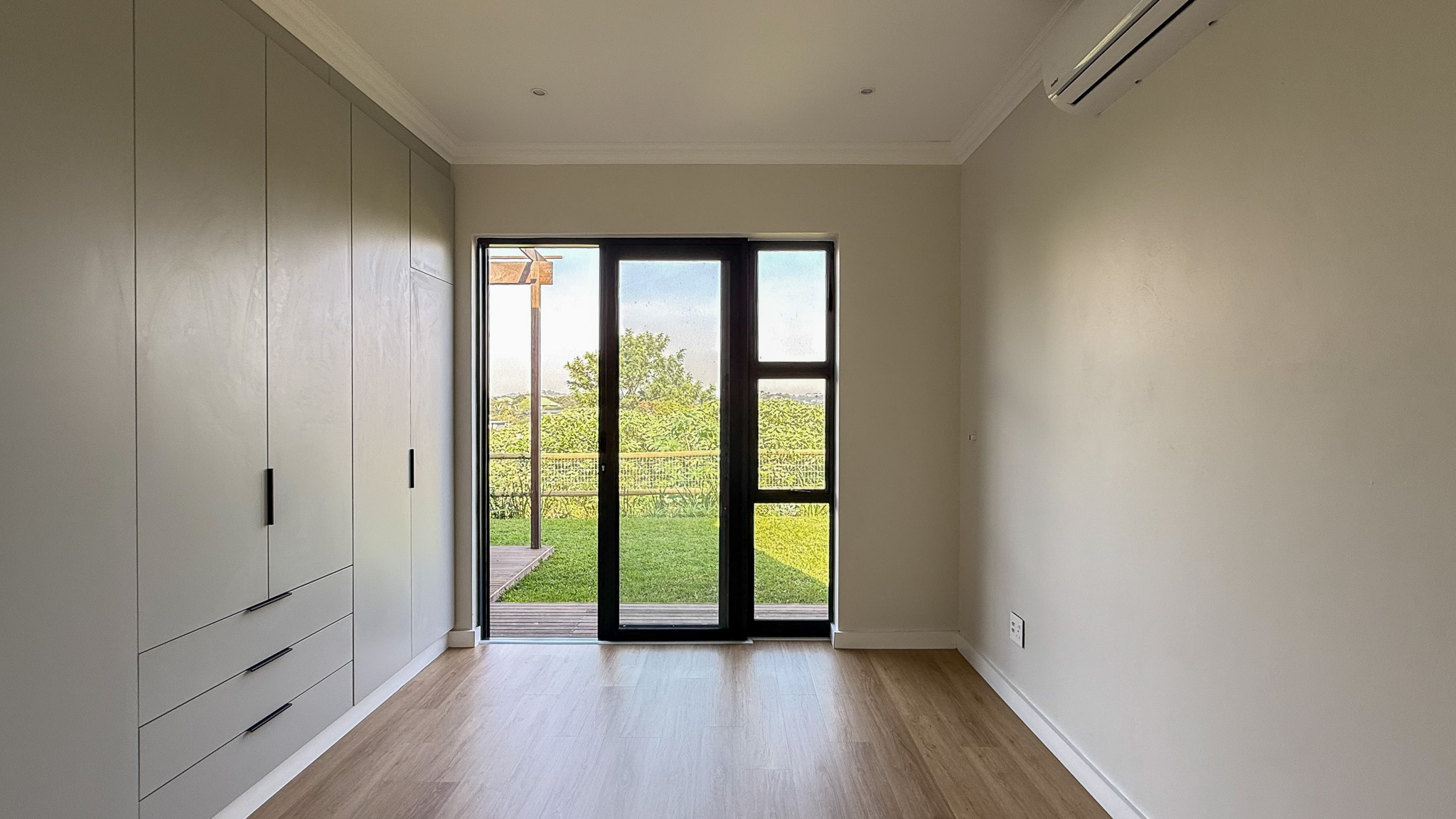Main bedroom opens to the garden via sliding door