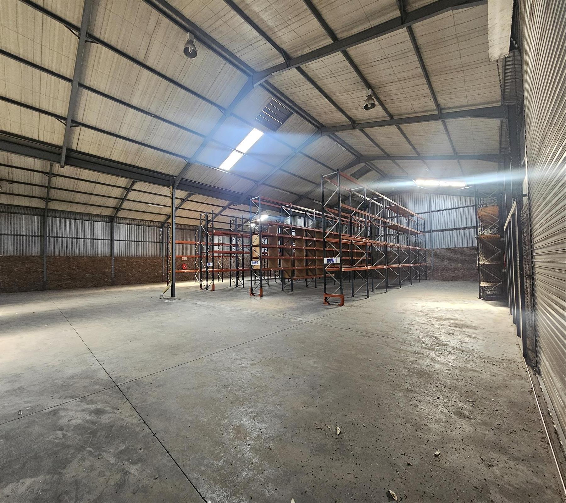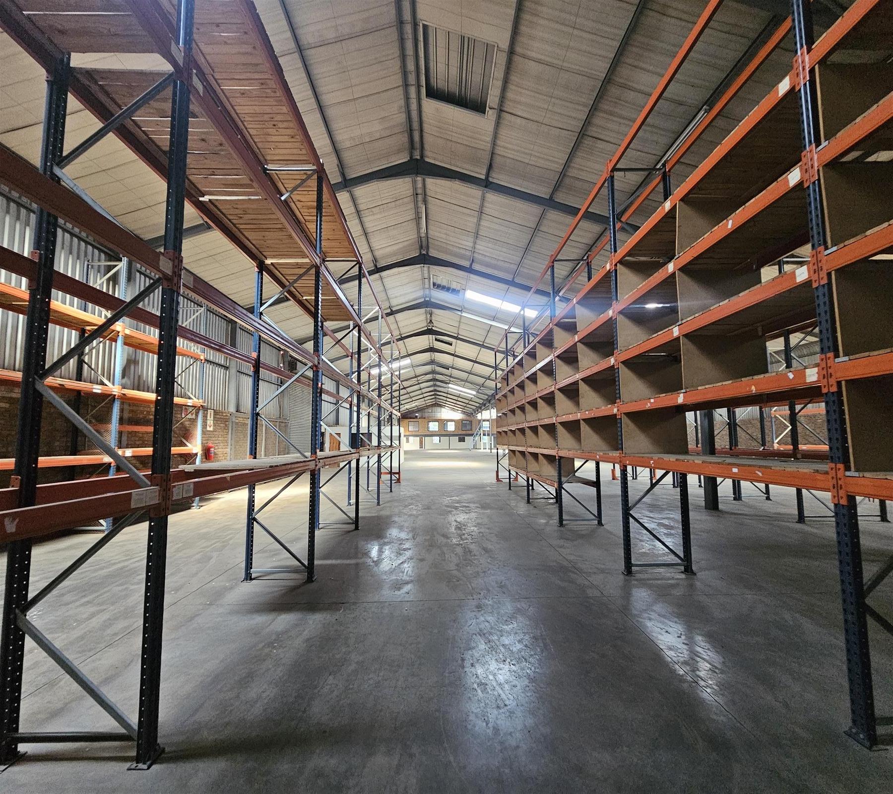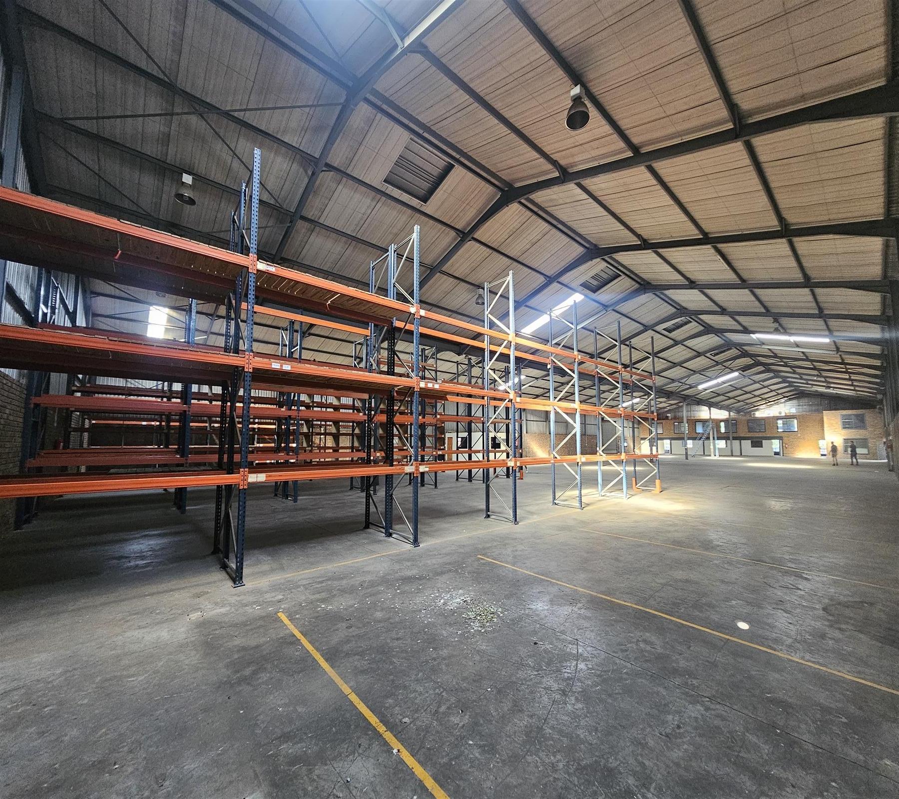 Warehouse to let featuring double storey office space, ample space for racking, 3-phase power, separate entrances for receiving and dispatch and a generator. Separate bathrooms for warehouse and office staff and roller shutter doors.