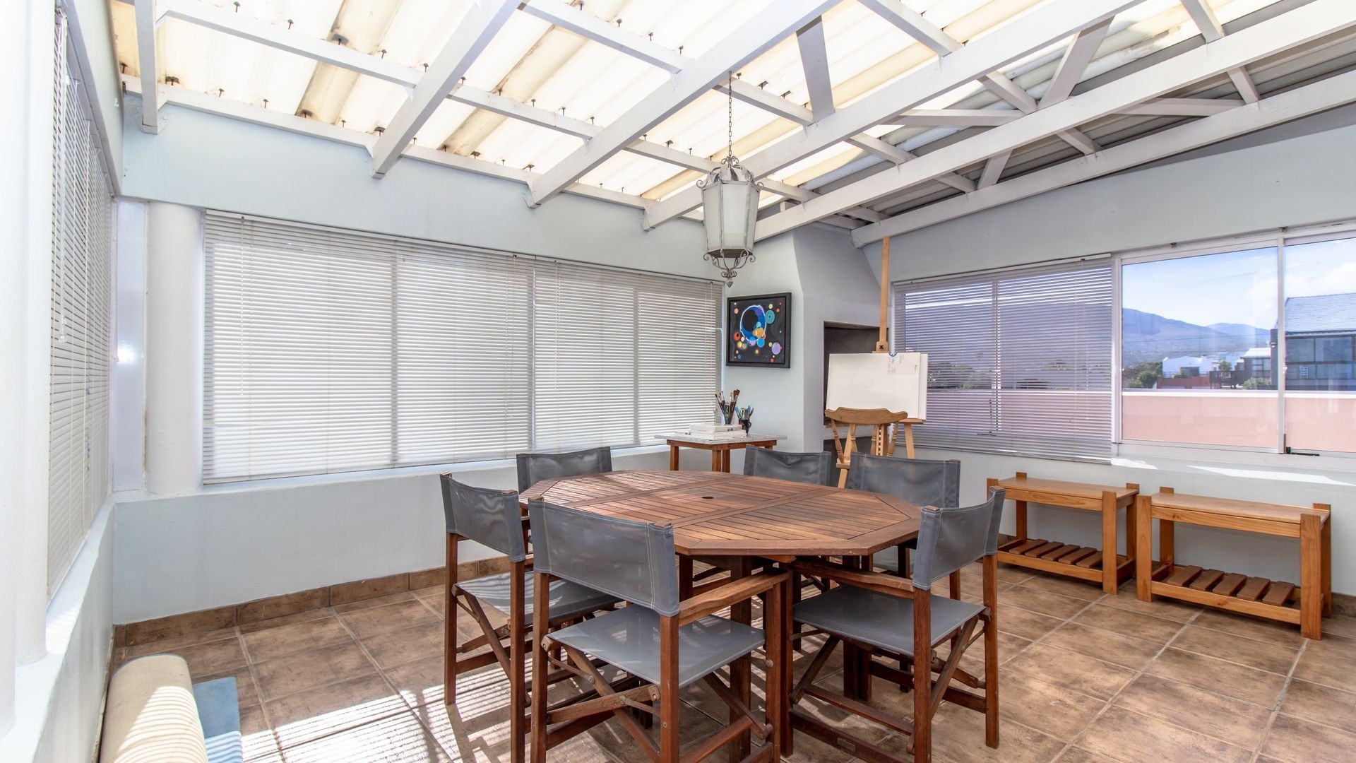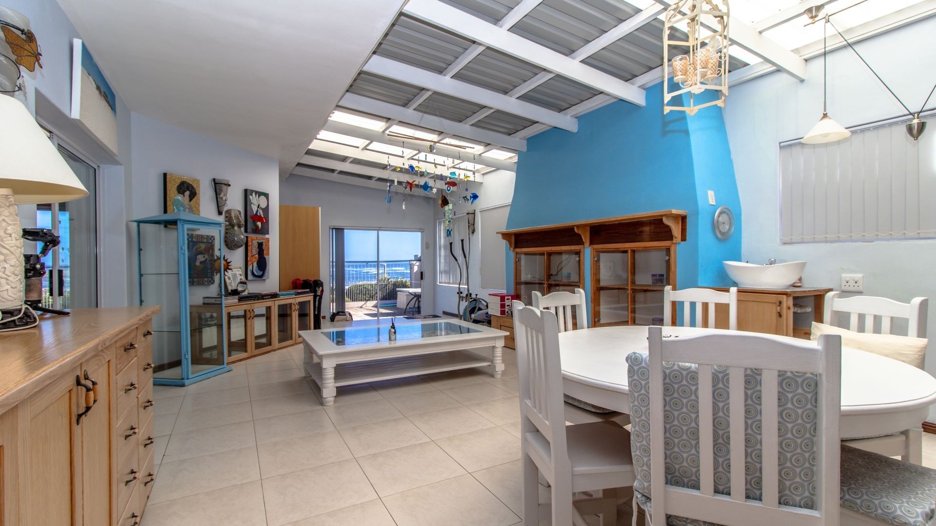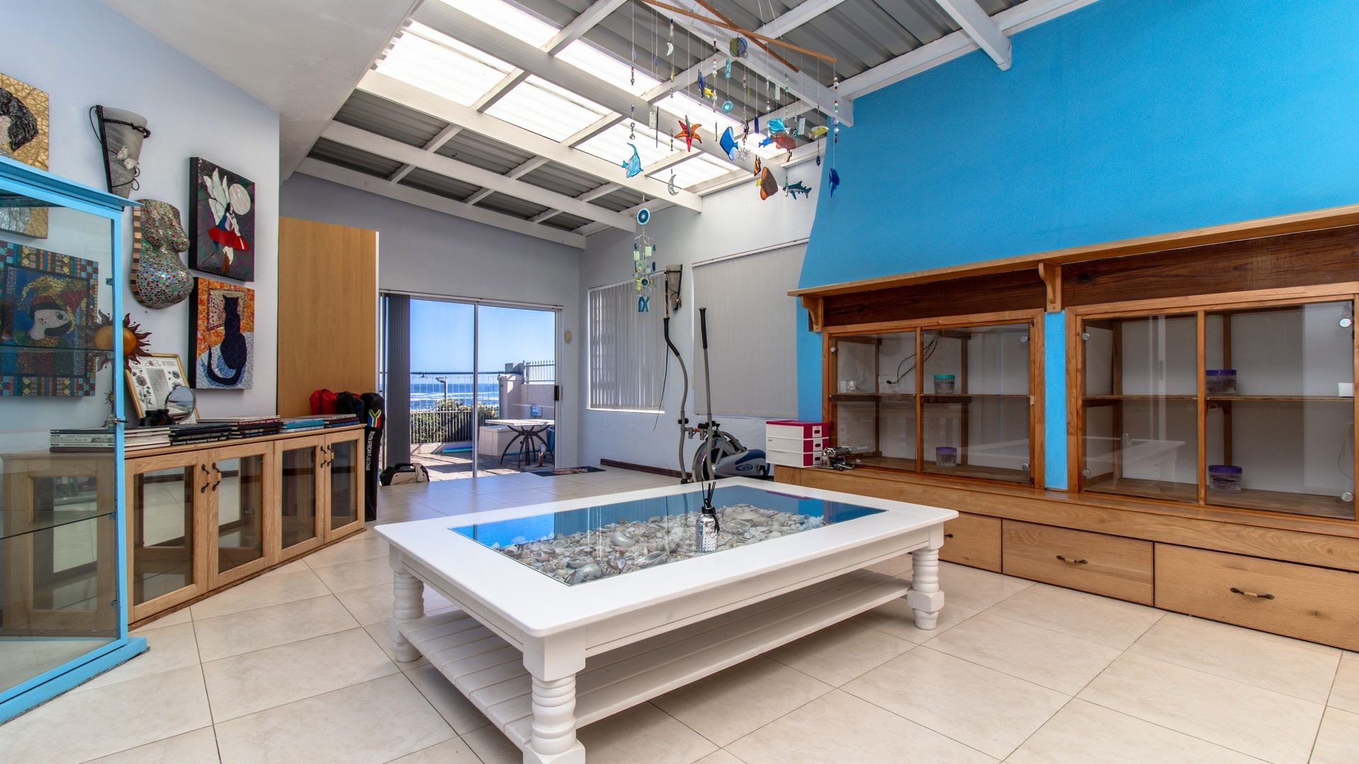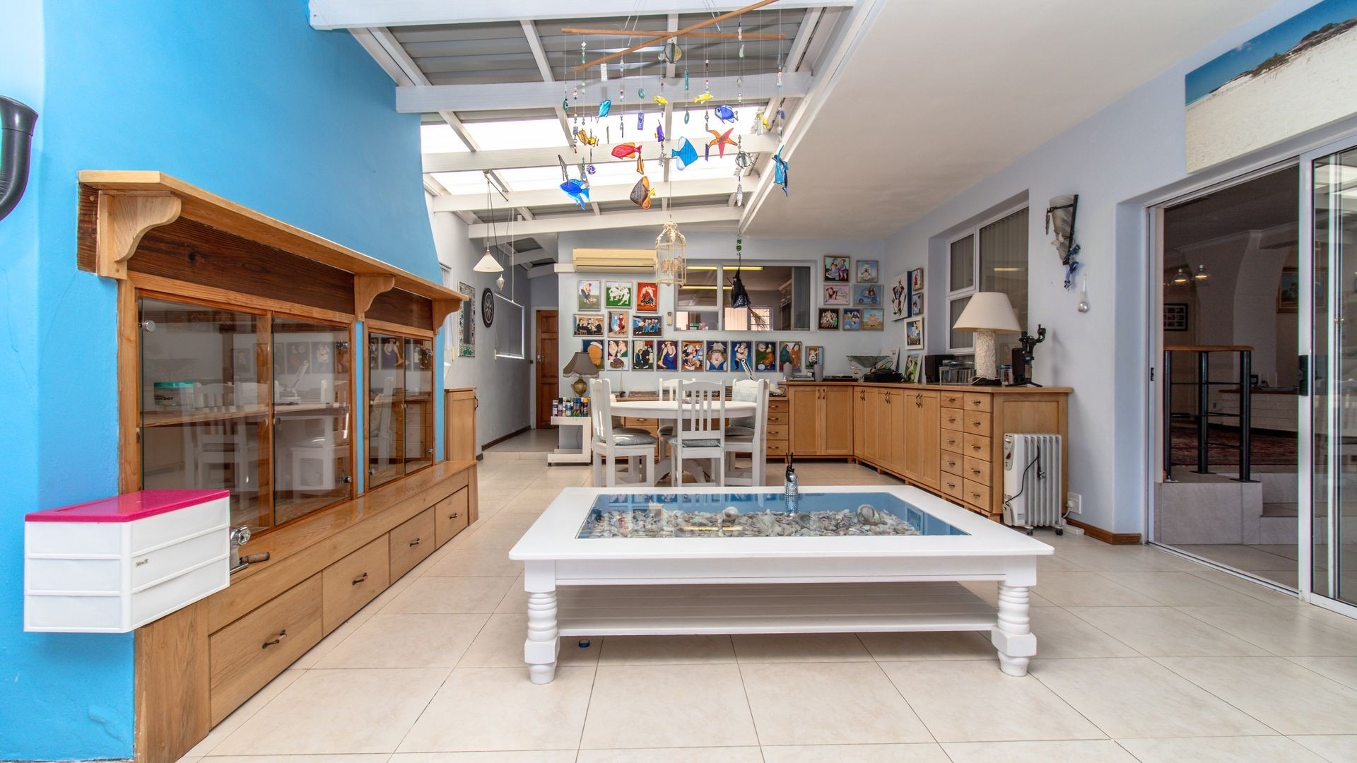 Upstairs, four en-suite bedrooms open onto a covered wrap-around veranda and a sunroom with a built-in braai—the perfect spot to soak in the coastal ambiance. Large sliding aluminum windows invite natural light and sea breezes, creating a relaxing, all-season sanctuary.