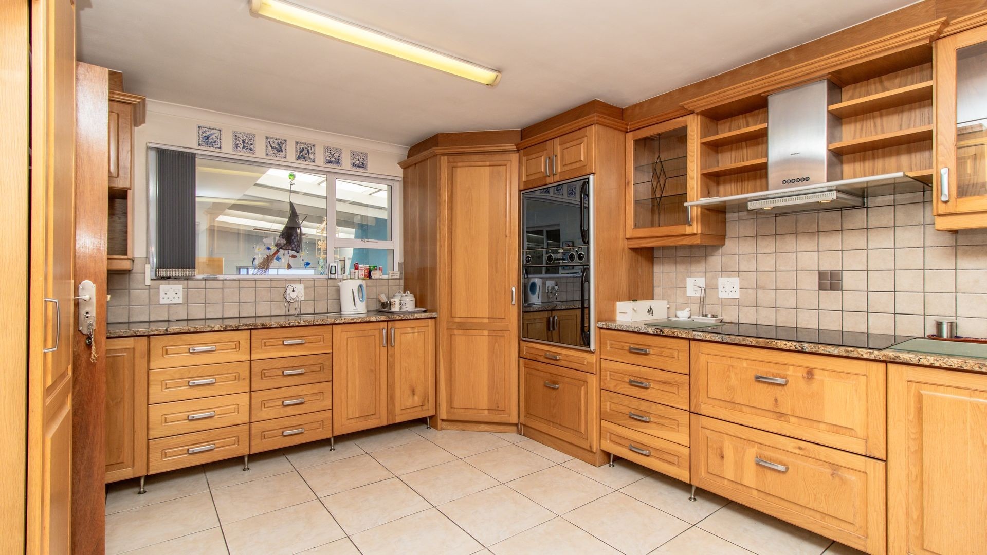 The ground floor boasts an inviting open-plan design with stunning sea views, a guest bedroom, two sitting areas (one with a cozy fireplace), a main dining room, a versatile study or art room, and a well-appointed kitchen with direct access to the pool and patio. A separate income-generating flat adds extra value.