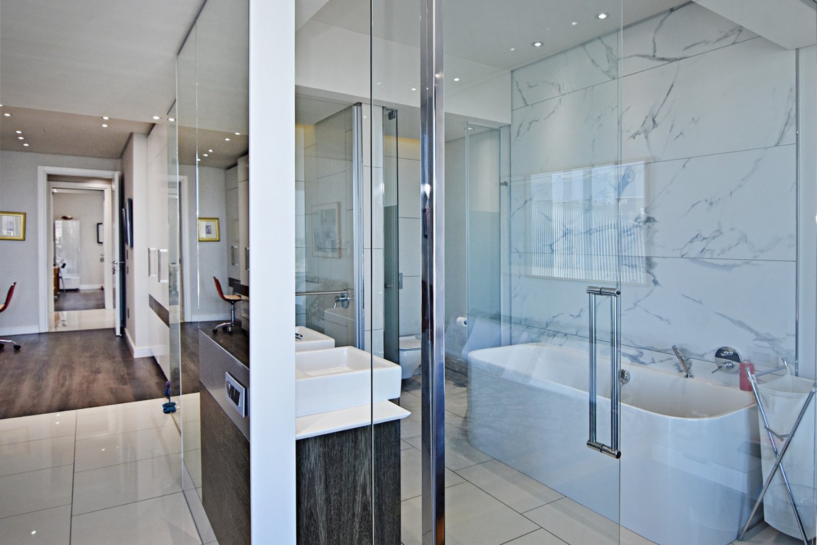 The modern apartment comes with 3 spacious bedrooms all en-suite, with the main bedroom with a double basin, toilet, shower, and bathtub. The second & third bedrooms are very spacious with a toilet, shower, and basin. The apartment comes with a guest toilet, and it is Wifi ready.
