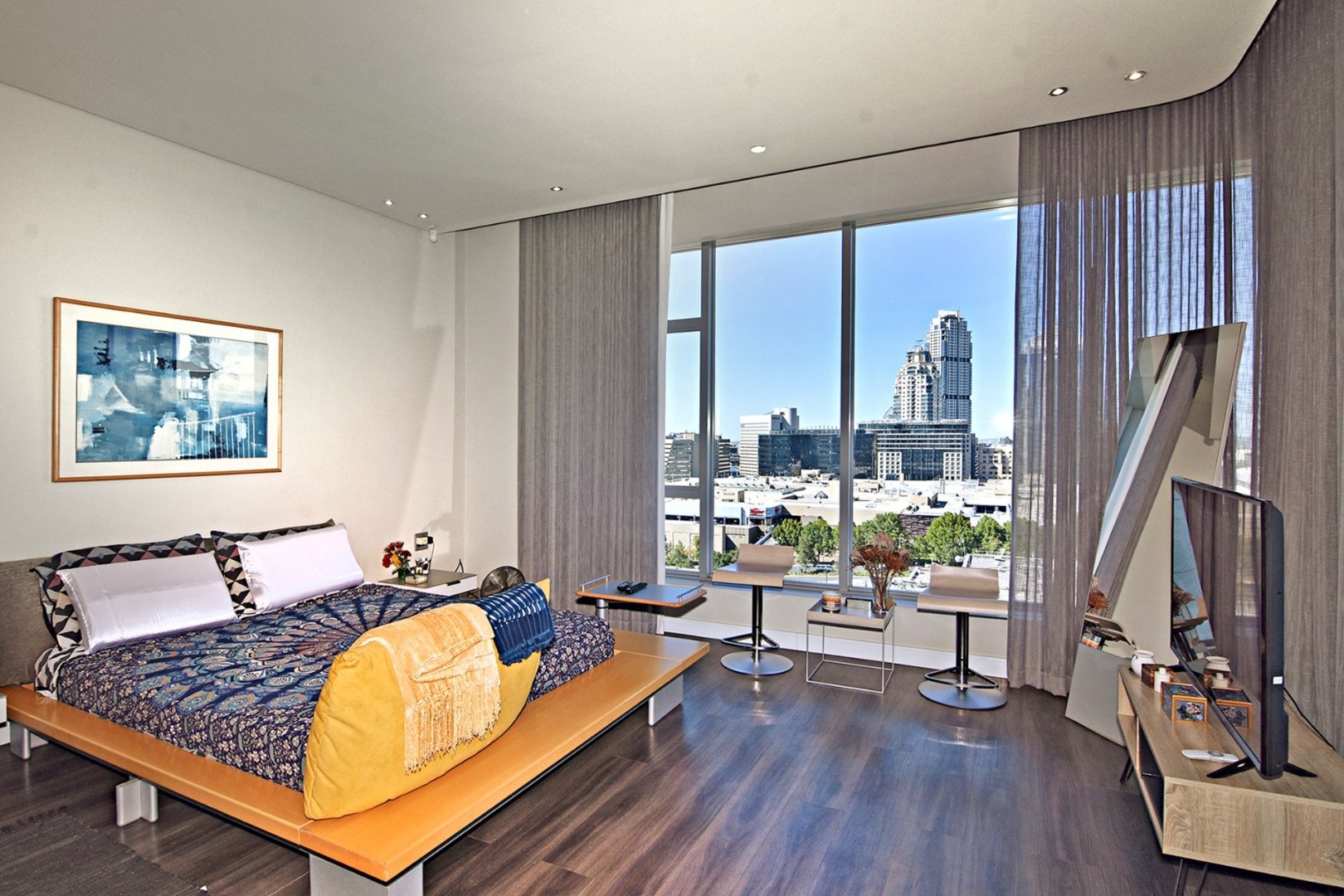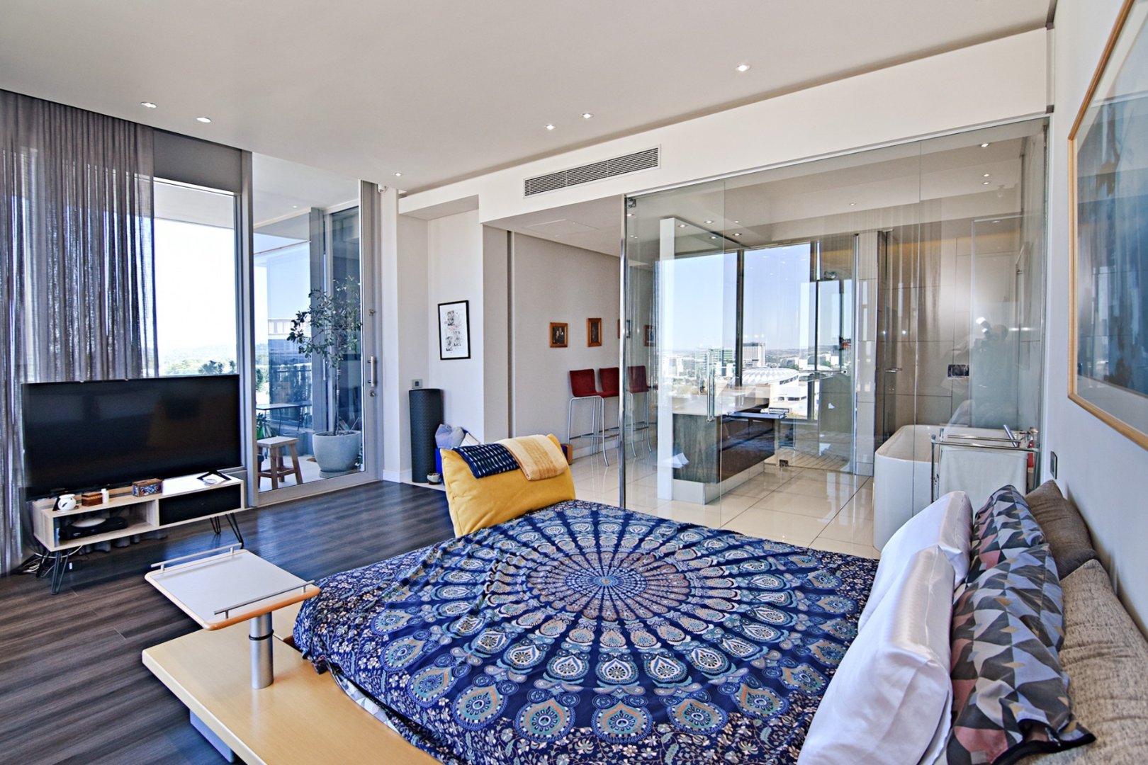 This 8th-floor penthouse apartment offers spectacular views of the Sandton skyline coupled with amazing sunsets!
