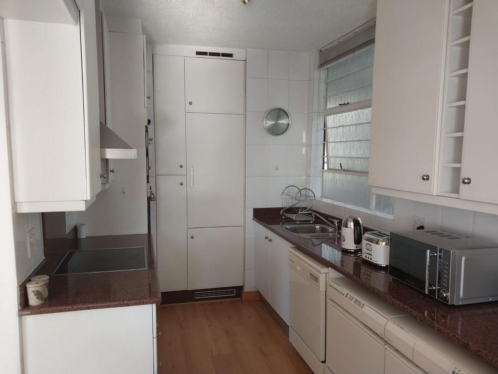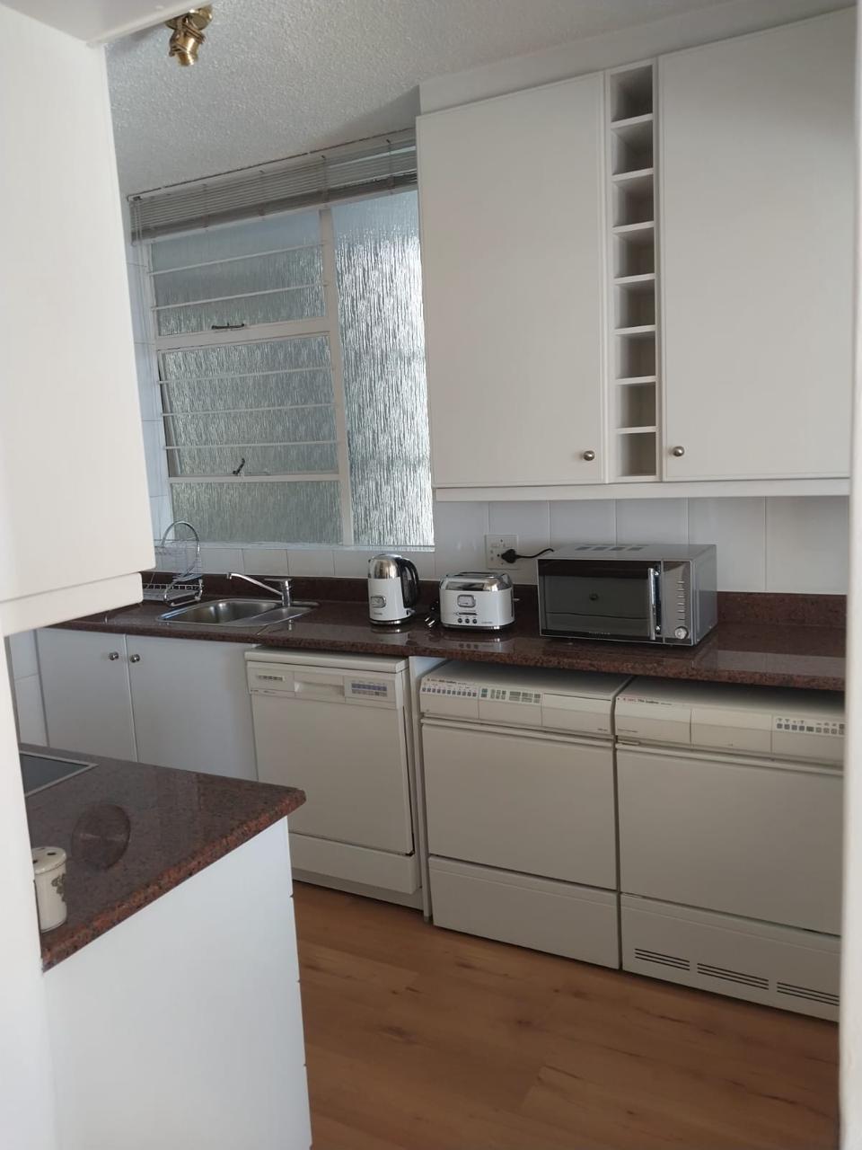 The modern kitchen is fully equipped and finished to a high standard, offering ample storage and quality appliances for effortless living. Both bedrooms are generously proportioned, elegantly furnished, and fitted with built-in cupboards. The main bedroom boasts a sleek en-suite bathroom, while the second bathroom is equally well-appointed, ensuring comfort and privacy for residents and guests alike.