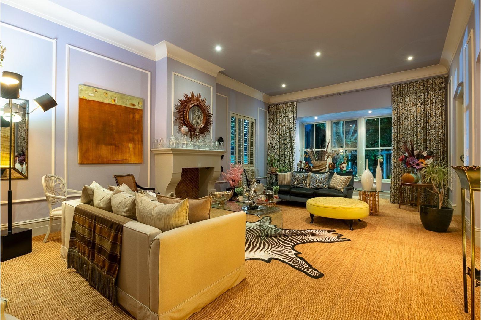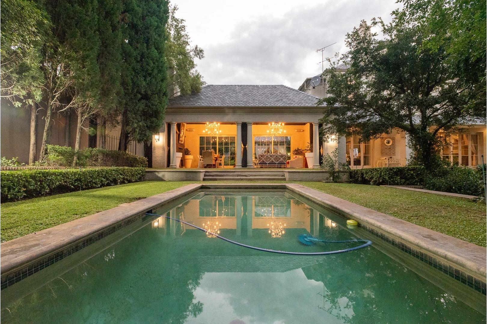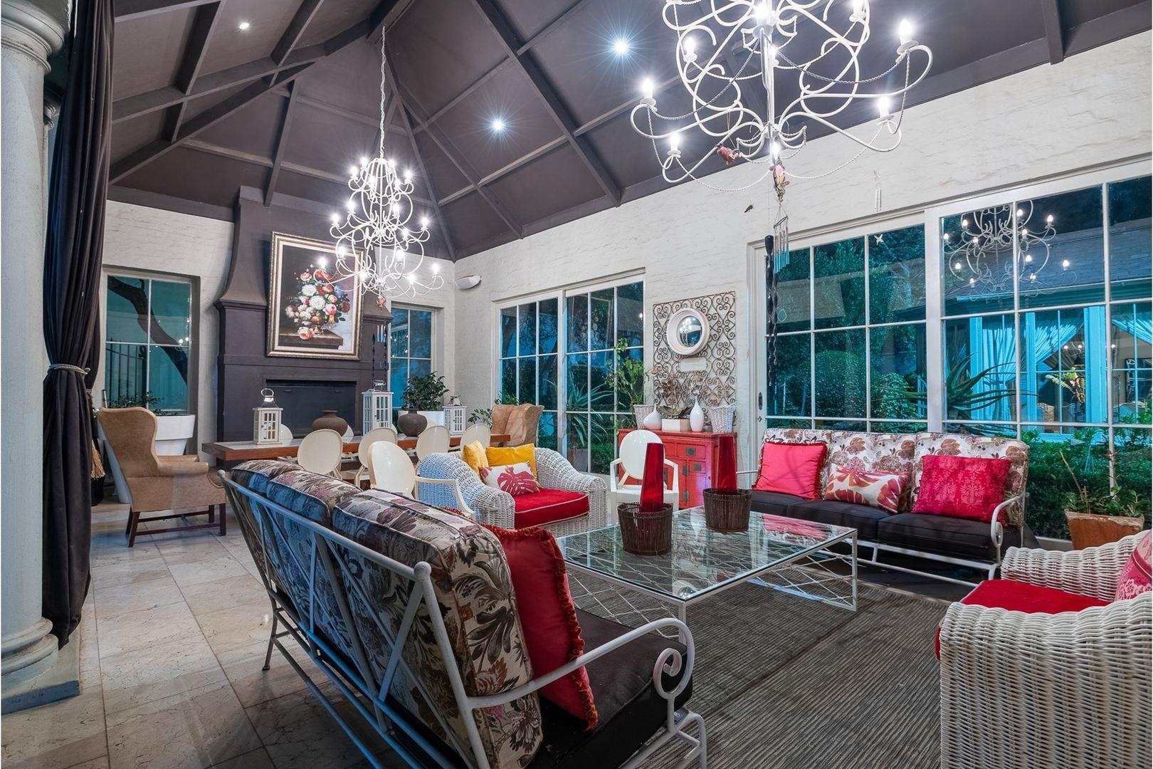 Four expansive receptions flow onto a covered patio with a built-in braai, overlooking the feature pool and landscaped gardens.