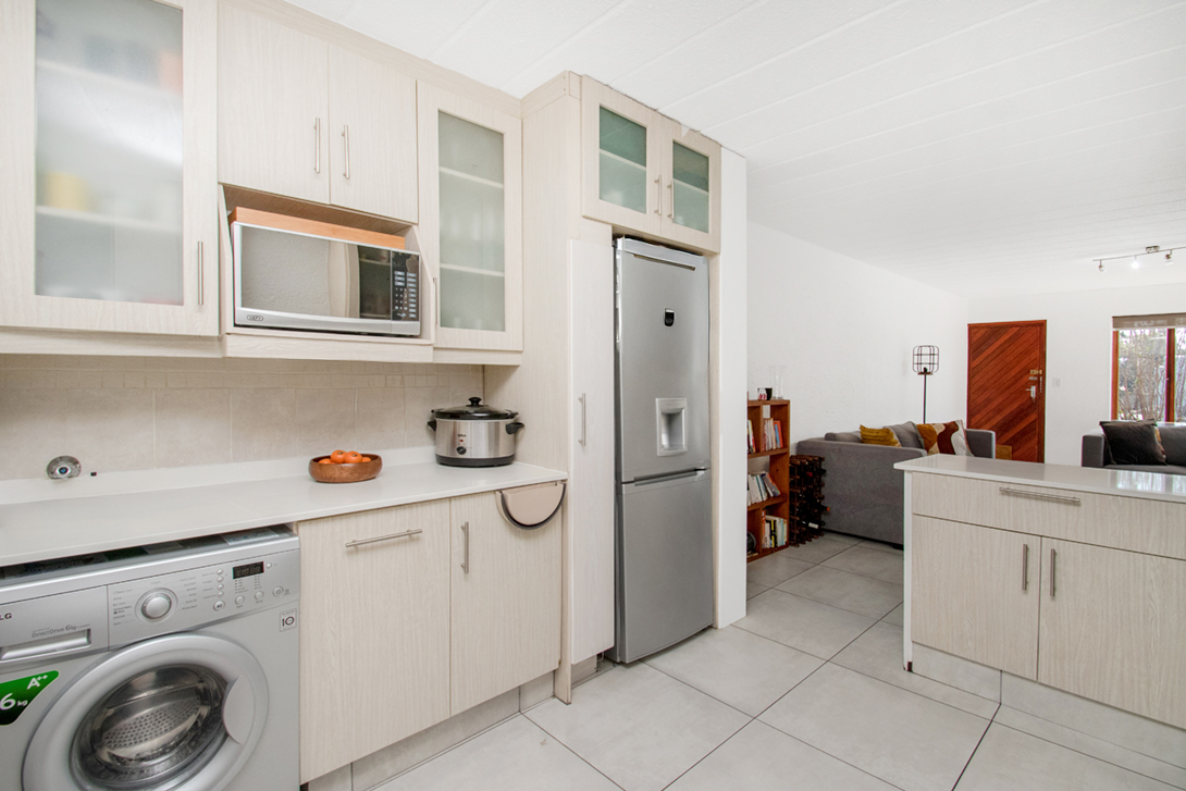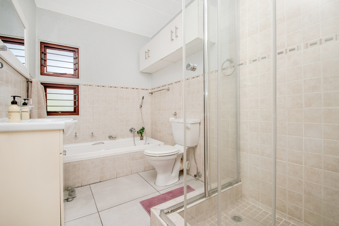 The 2 spacious bedrooms are fitted with built in cupboards, and have views of the leafy surrounds. The full bathroom is generously proportioned and boasts both a bath and shower.