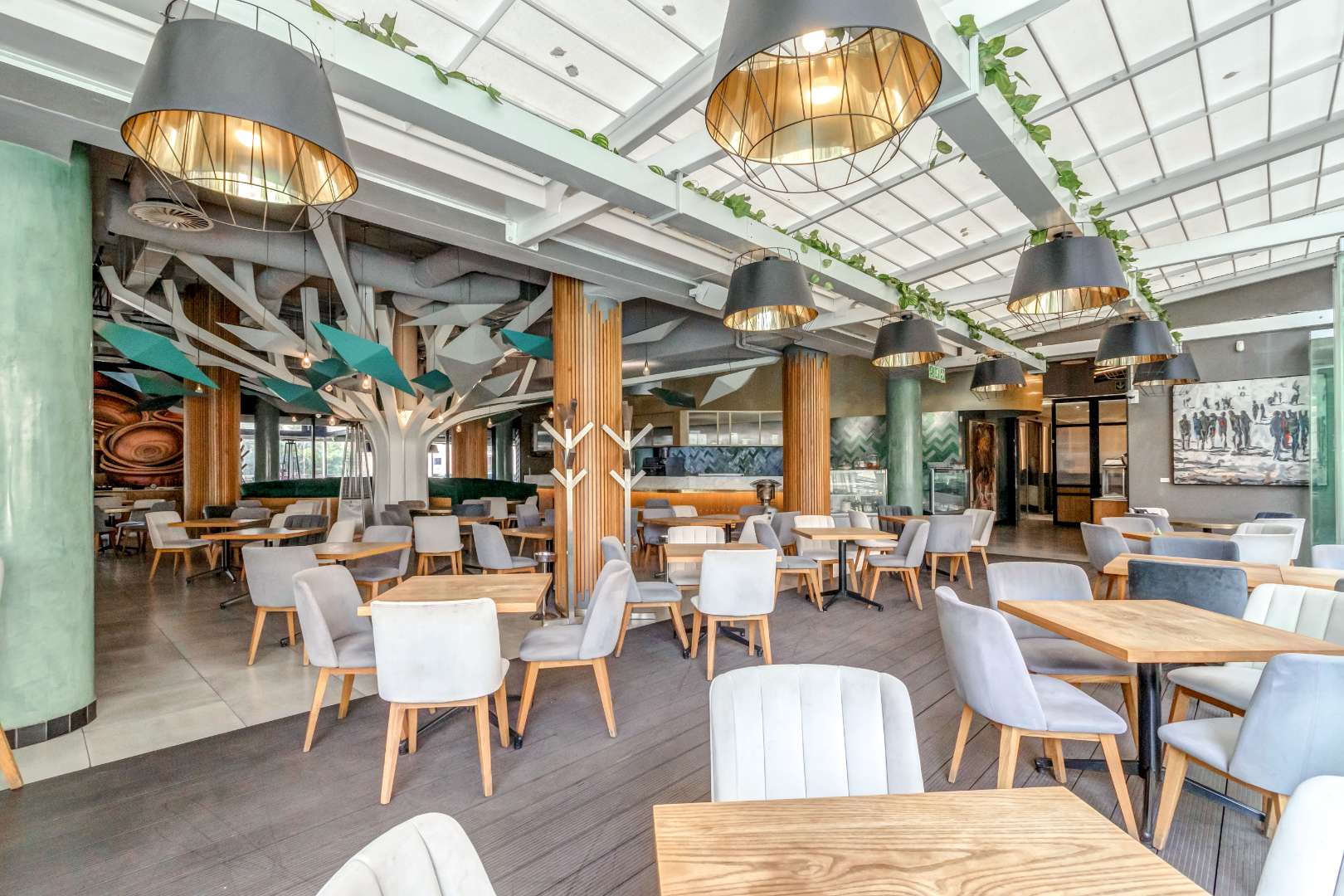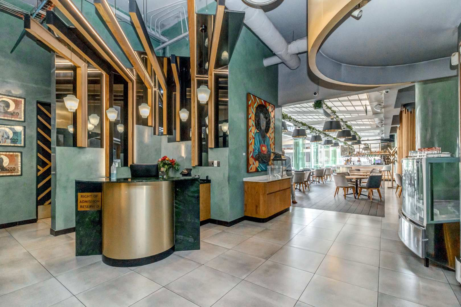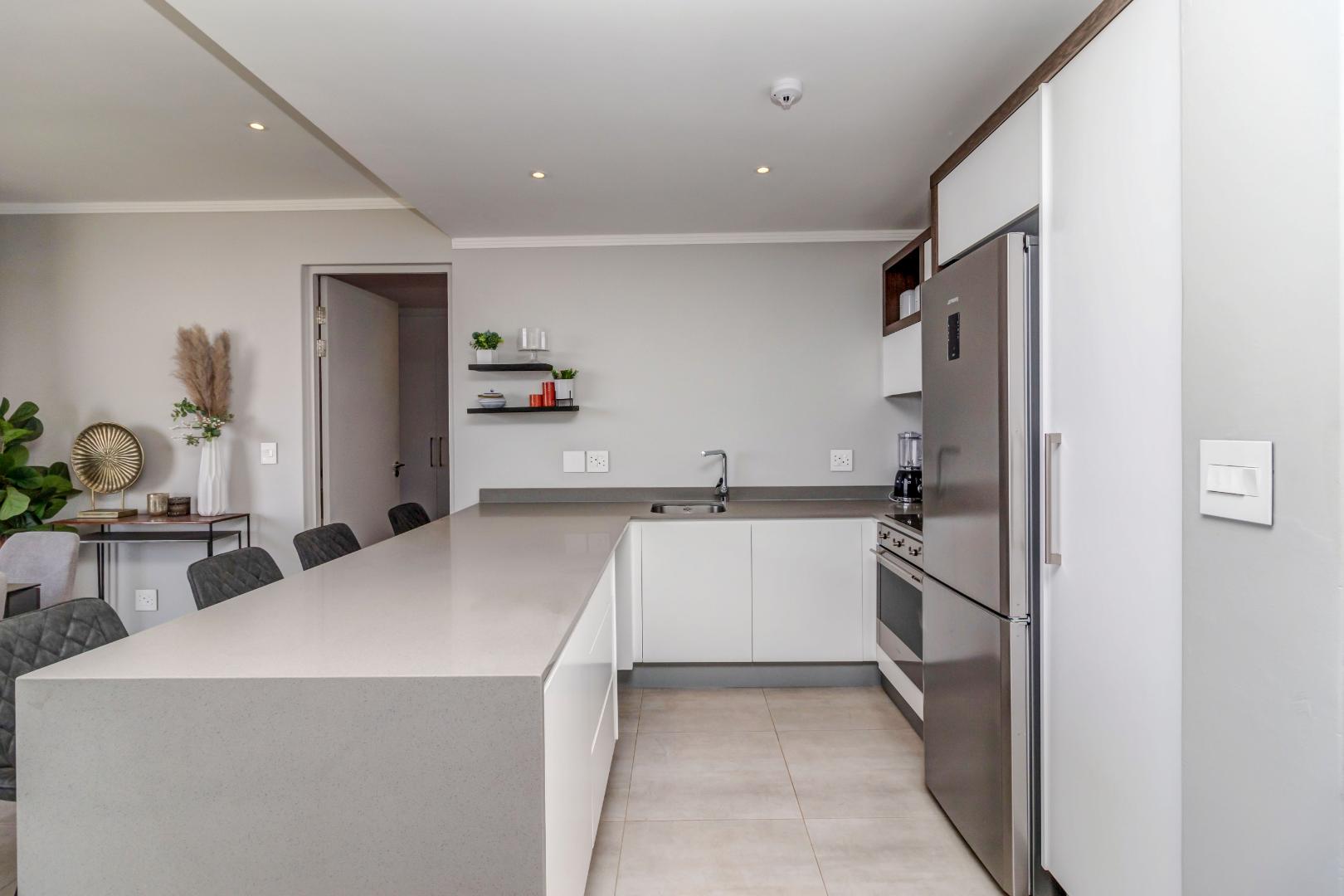 The open plan ultra modern kitchen, lounge and dining with a huge balcony boasting with the most amazing views of JHB