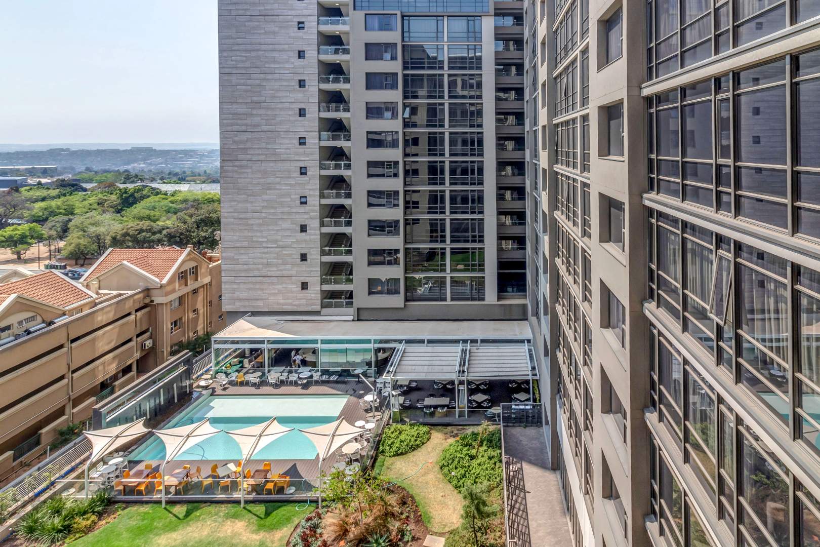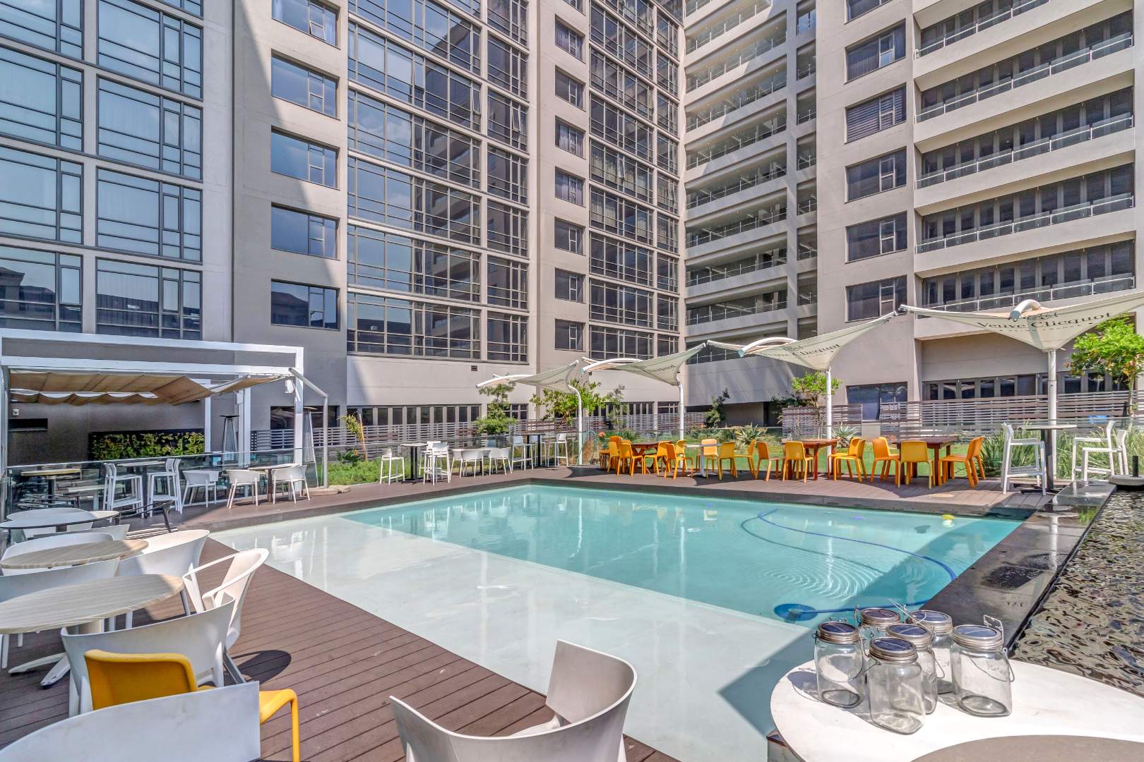 This luxurious fully furnished 2 beds , 2.5 Baths apartment the heart of Sandton, on the 7th floor of Masingita Towers. The building is home to The Bowld Restaurant on the first floor, a gym, and a pool within the building for your convenience.
