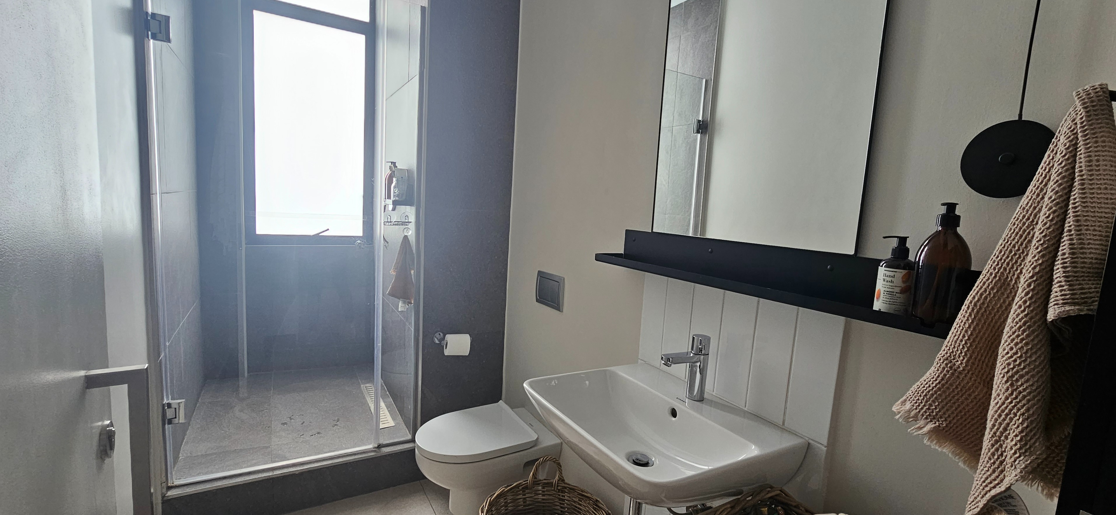 The well-sized bedroom provides a peaceful retreat, easily accommodating a queen-size bed, while the stylish bathroom boasts a spacious shower and contemporary finishes.