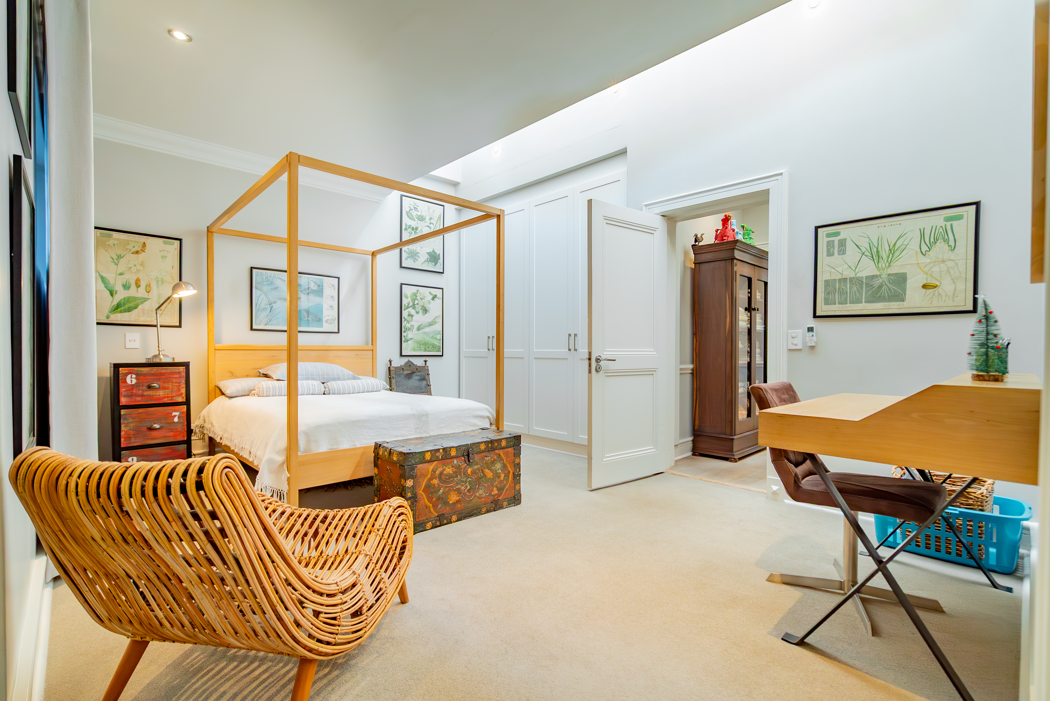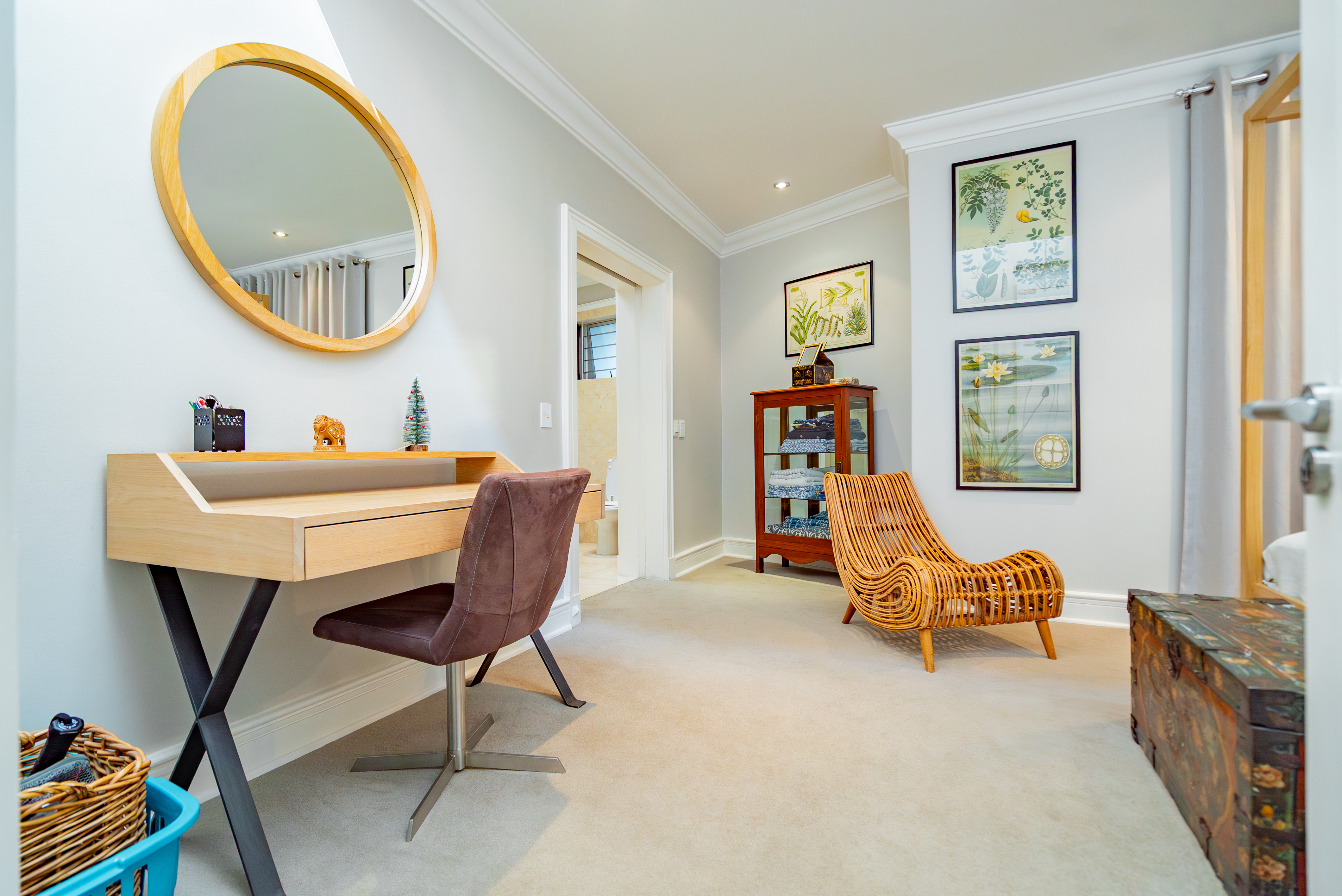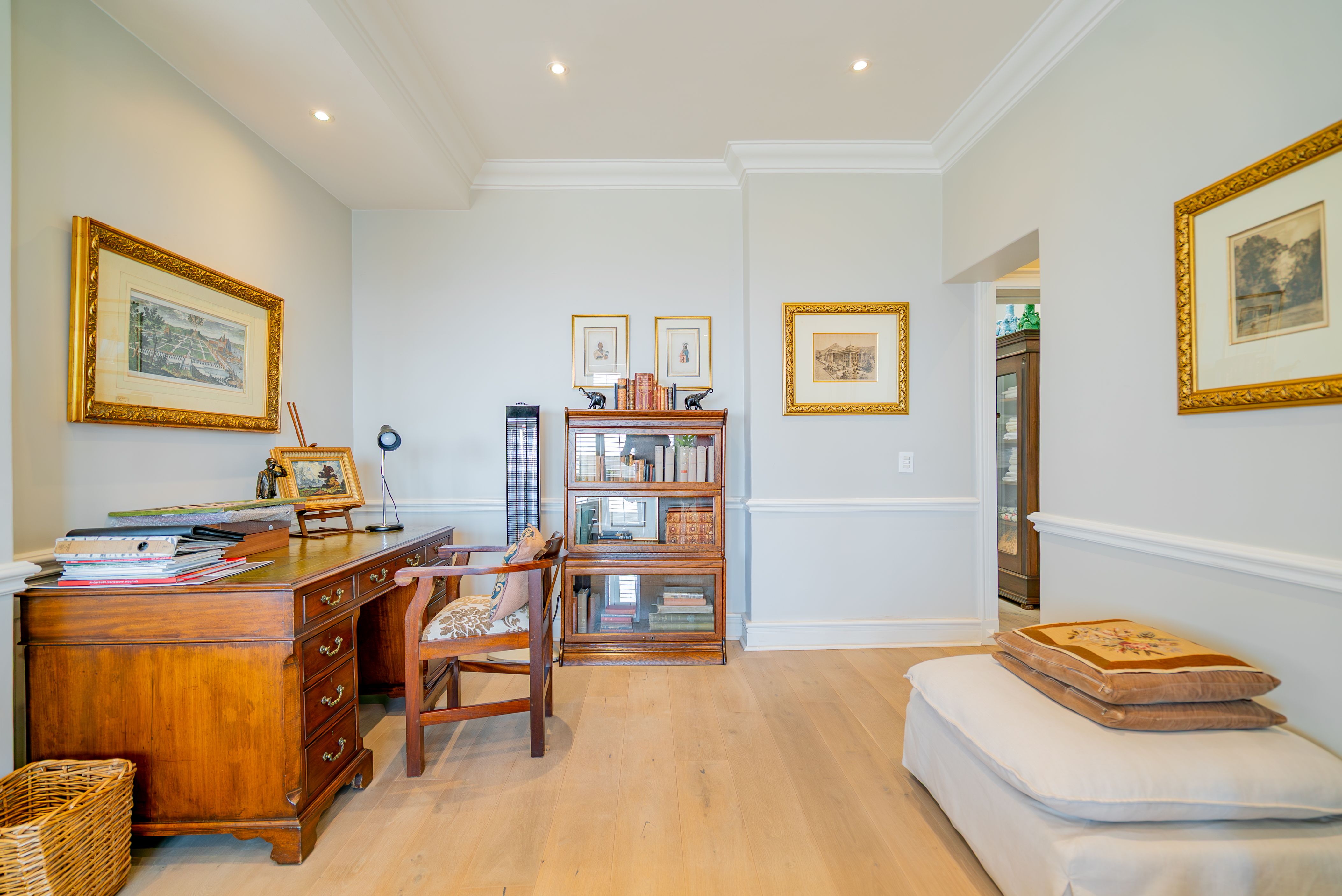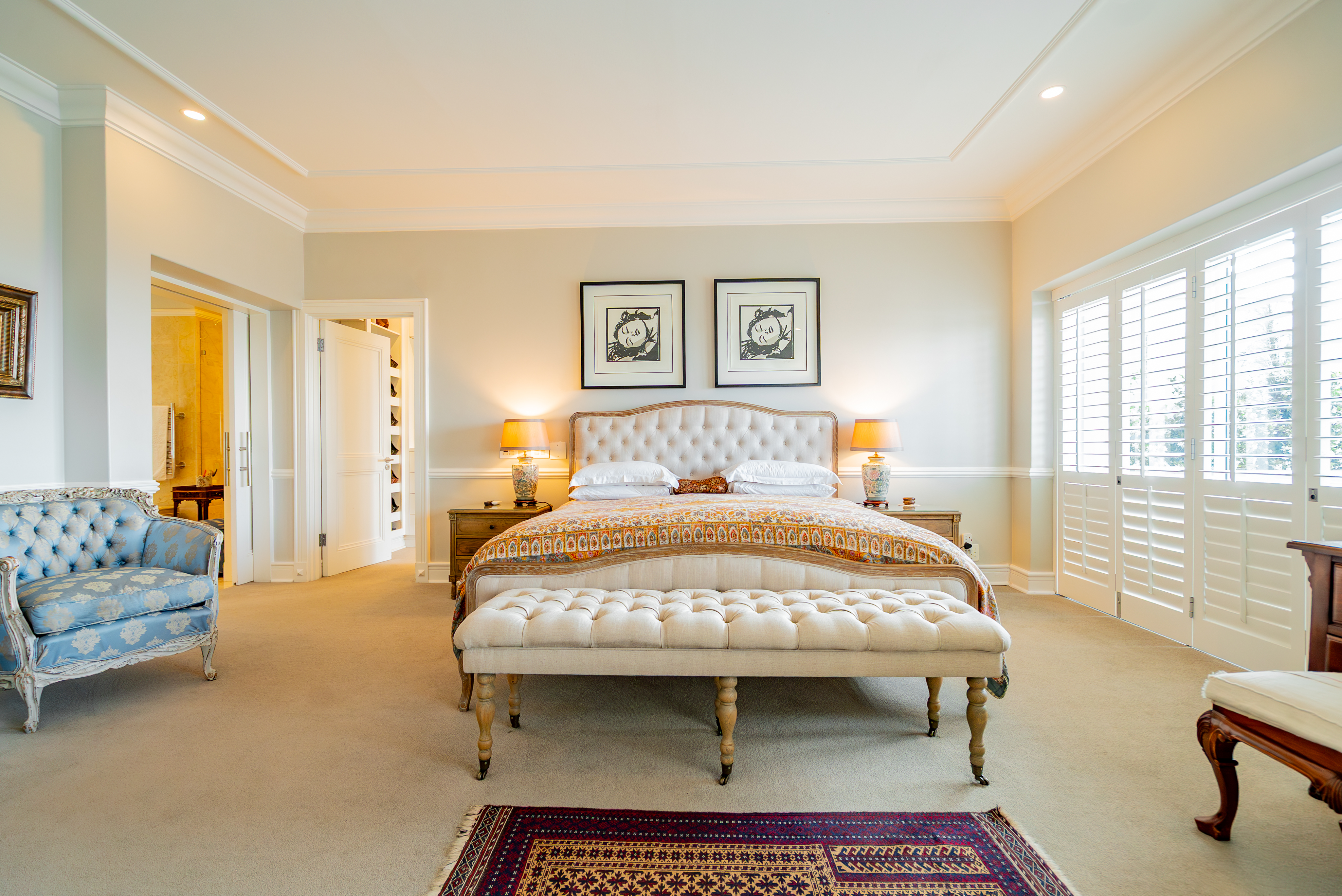 Lofty ceilings, deluxe wooden flooring, skylights, and panoramic 180° views frame an expansive layout that includes three luxurious entertainment rooms: a formal lounge with a towering gas fireplace, a TV room, and a 12-seater dining space. Floor-to-ceiling glass stacker doors fold open to reveal a full-length terrace, creating seamless indoor–outdoor flow. The chef’s kitchen is a state-of-the-art masterpiece, featuring custom cabinetry, Siemens integrated appliances (including gas hob, two ovens, and microwave), granite countertops, a walk-in cold room, wine cellar with double-volume cascading racks, and a generous scullery area. A tranquil study nook and private reading zone lead to one of the three en-suite bedrooms, each positioned in separate zones of the home to ensure absolute privacy and comfort.
